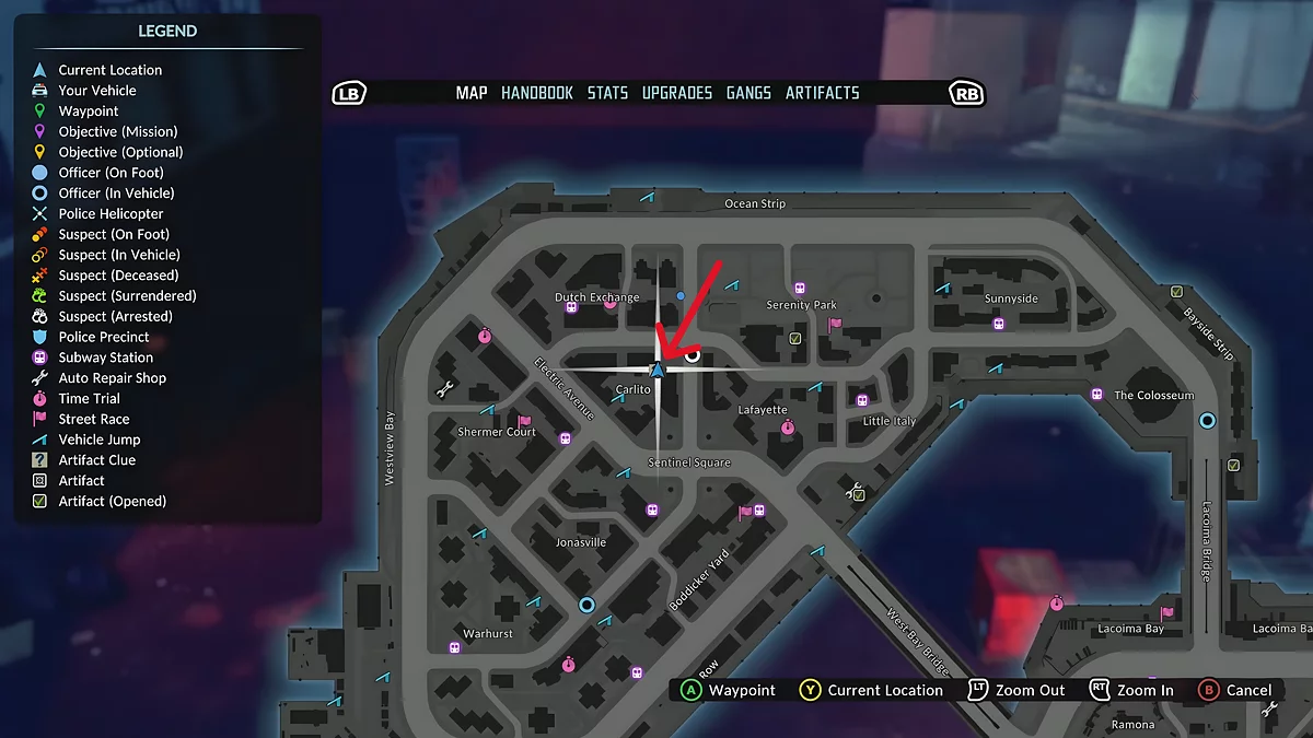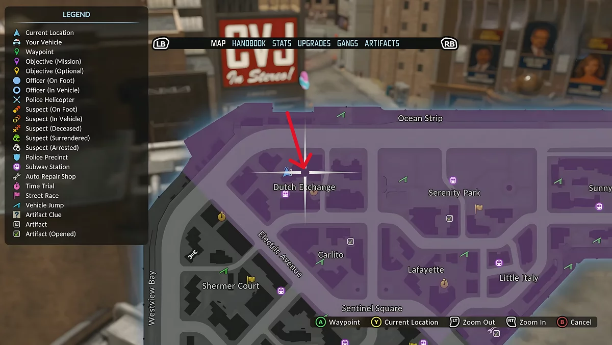 На первом острове двигайтесь на северо-восток, обойдите с правой стороны здание с магазином «Dutchies». Чтобы открыть сейф рядом с красным ящиком, нужно решить задачку: «Число парковочных мест у входа в полицейский отдел Аверно. Число лавок в камере полицейского отдела Аверно. Число портретов офицеров на стенах хранилища вещдоков» (The number of parking spaces outside the ACPD Precinct entrance. The number of benches in the holding cell of the ACPD Precinct. The number of police officer portraits on the evidence room walls.). Установите код: 5-4-3-2 и возьмите «Камень крови» (Sanguis Jewel).