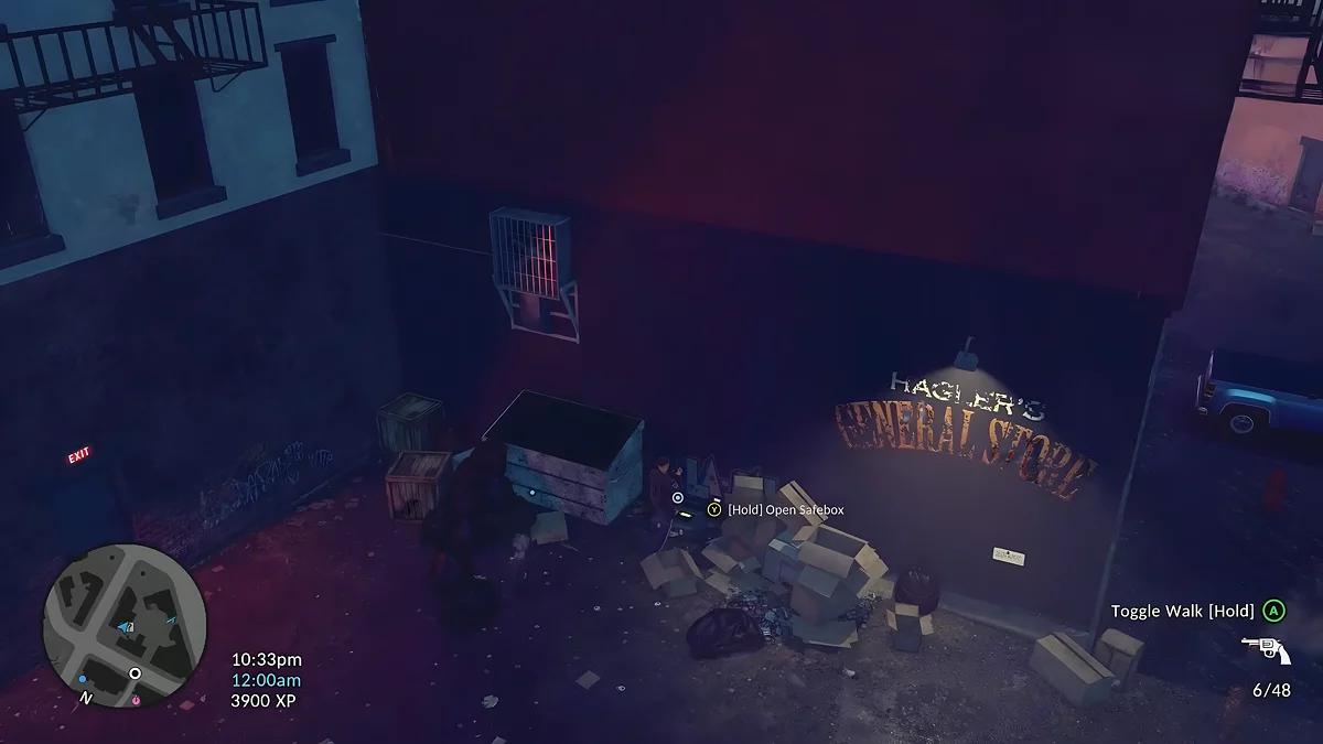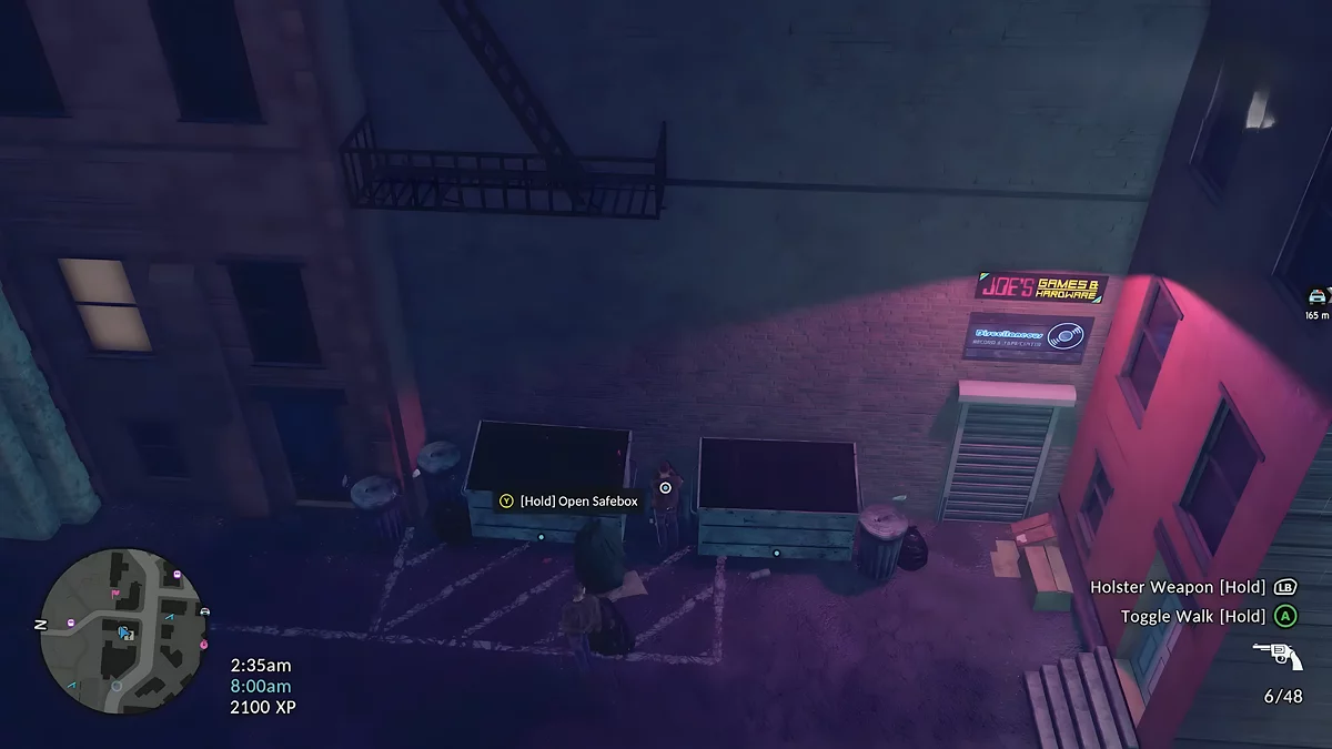 Первый сундук вы откроете в ходе сюжета. Отправляйтесь на парковку слева от банка. Отыщите кейс, стоящий между двух больших мусорных баков, затем введите код: 4-3-2-1, чтобы получить «Ключ от погреба Святого Гарри» (St. Harry's Cellar Key).