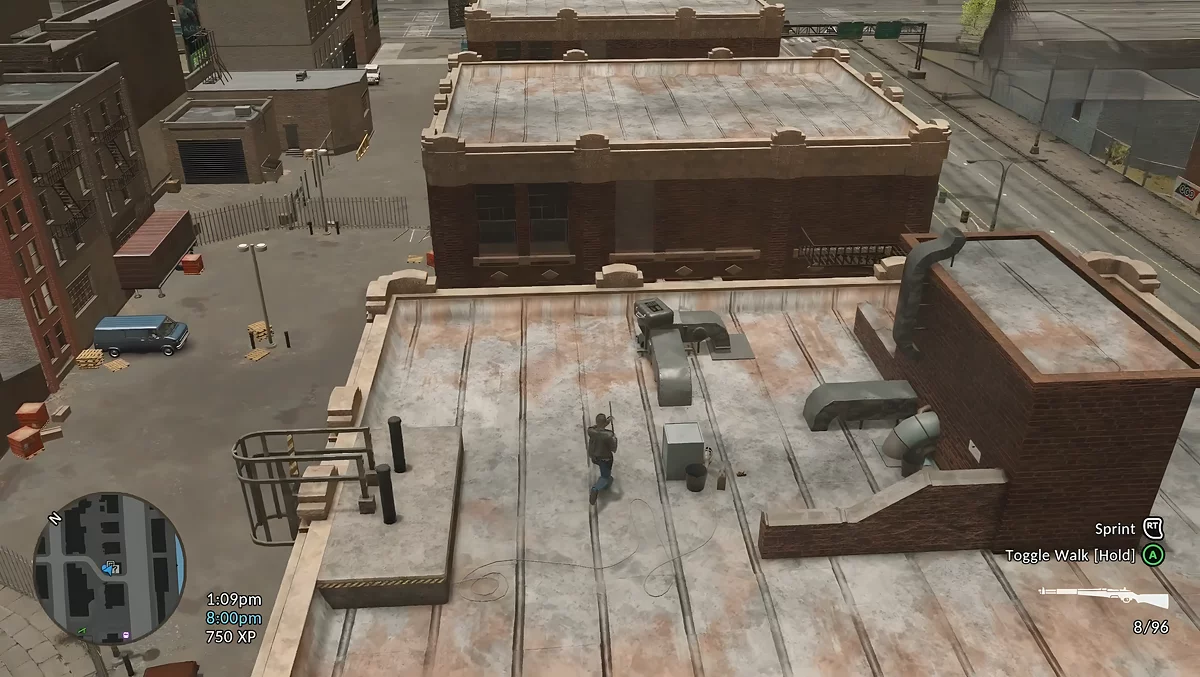 Подойдите к банку и с помощью лестницы у киоска заберитесь на крышу, затем увидете кейс на вентшахте. Решите ребус: «Я часы. Моя маленькая ручка указывает прямо вверх. Большая ручка — прямо вниз. Который час?» (I'm a clock. My little hand is pointing straight up. My big hand is pointing straight down. What time is it?), введите код: 1-2-3-0 и возьмите «Отпечаток пальца Генри Фишера» (Henry Fisher's Fingerprint).