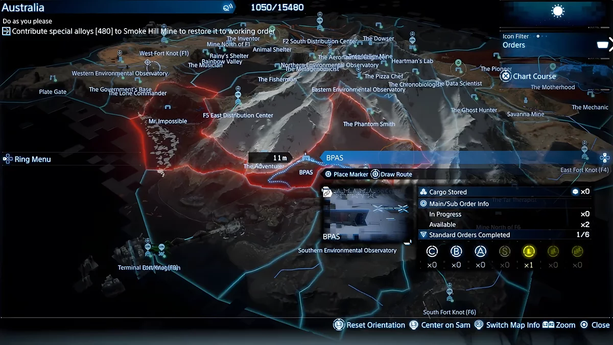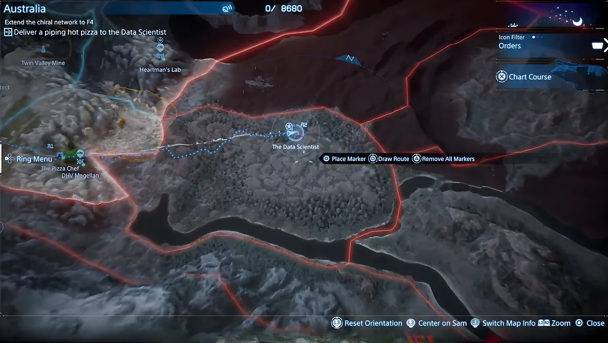 Разблокировать все объекты, за исключением тех, что открываются в ходе сюжетных заданий, получится после заказа № 17 «Выберитесь из Потустороннего мира» (Escape the Strange Realm). После чего можно постепенно расширять хиральную сеть, благодаря которой Сэм сможет быстрее перемещаться между пунктами доставки.