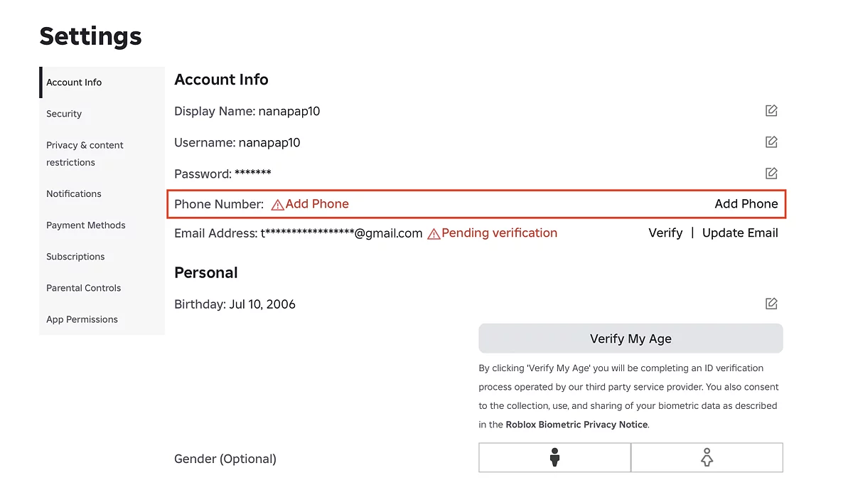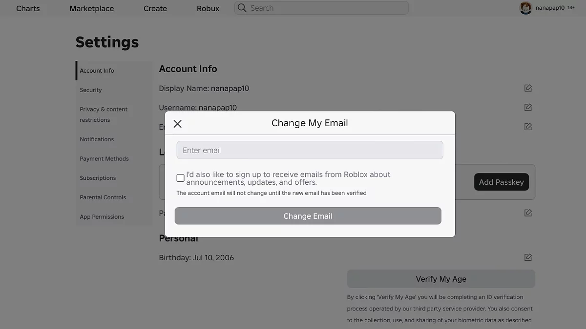Чтобы включить голосовой чат в Roblox, сначала вам необходимо подтвердить свой возраст. К сожалению, для лиц младше 13 лет эта функция отключена. Подтвердить личность можно двумя разными способами. Мы поочередно рассмотрим каждый из них, но перед активации каждого из них необходимо привязать ваш адрес электронной почты.