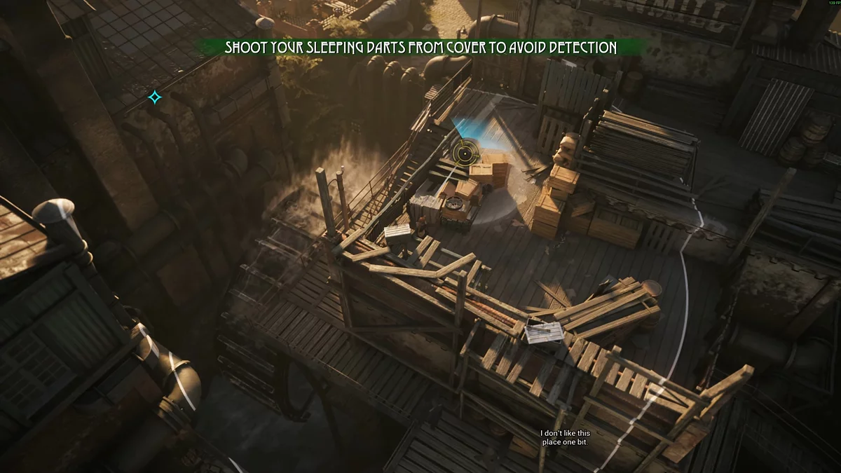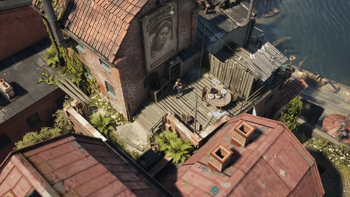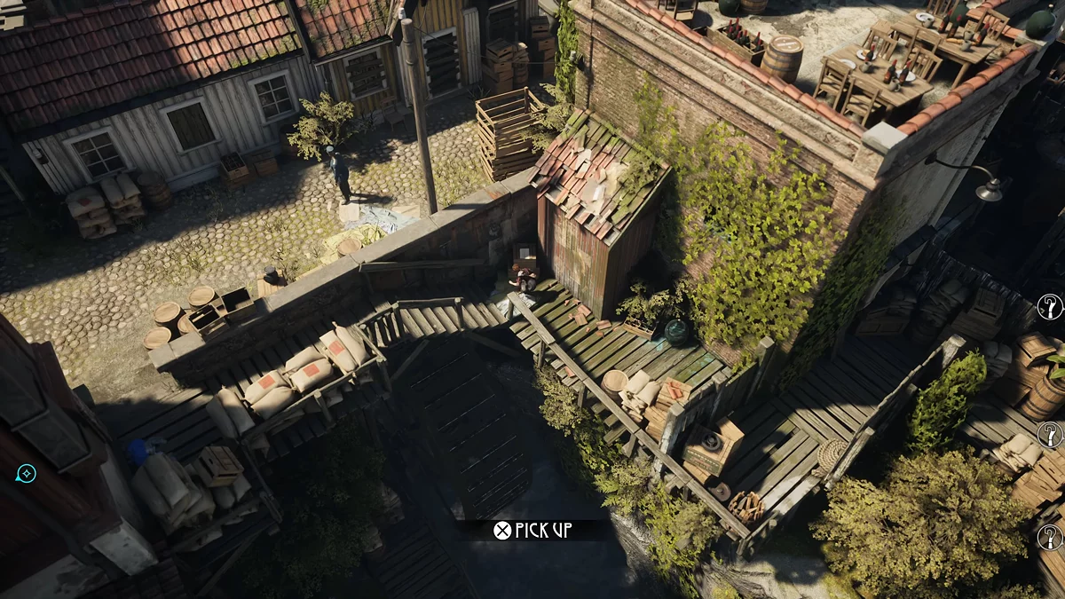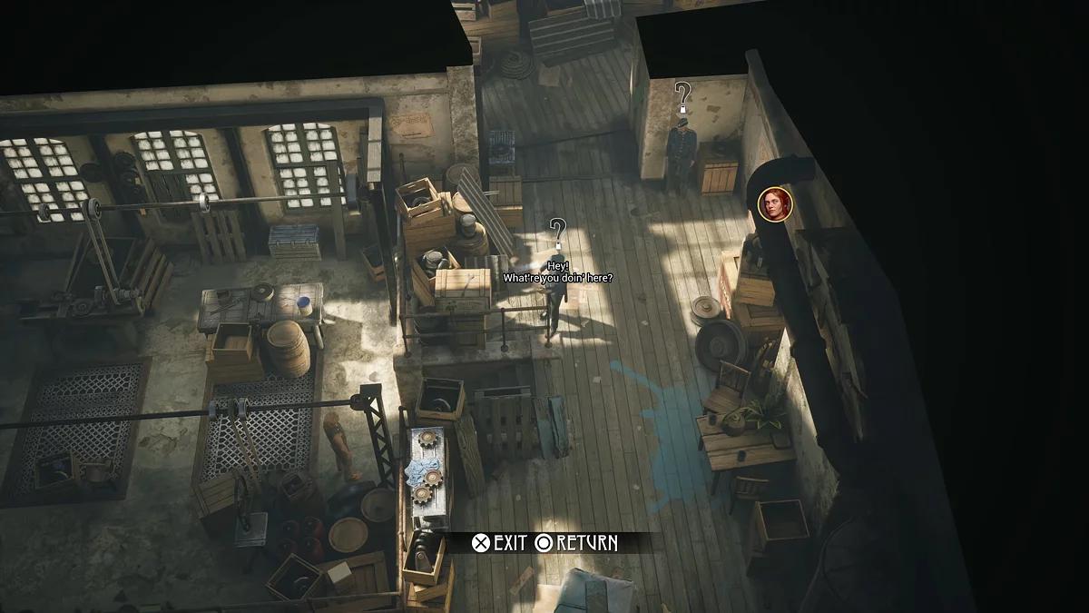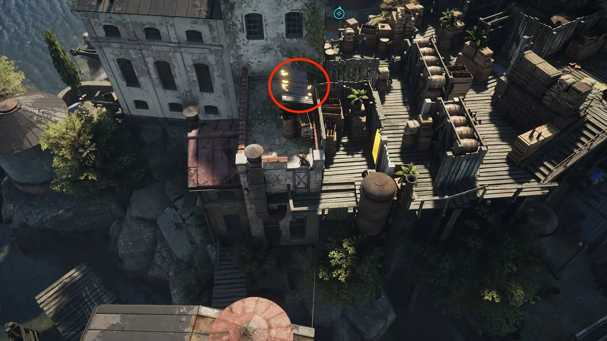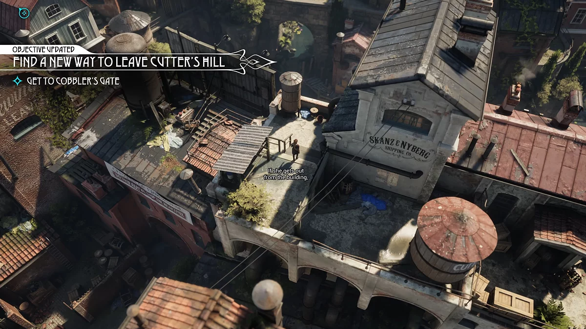 Перейдите на верх соседнего здания. Туда, как некстати, наведались местные рабочие и констебль. Когда первые отойдут, нам придется усыпить полицейского, чтобы незаметно пройти мимо.