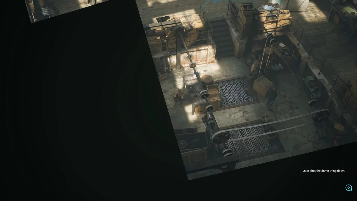 Воспользуйтесь возникшей паузой, чтобы заново запустить все машины. На звук сбегутся удивленные работники, а вы аккуратно проследуйте к лестнице в левом углу и наконец выберитесь наружу.