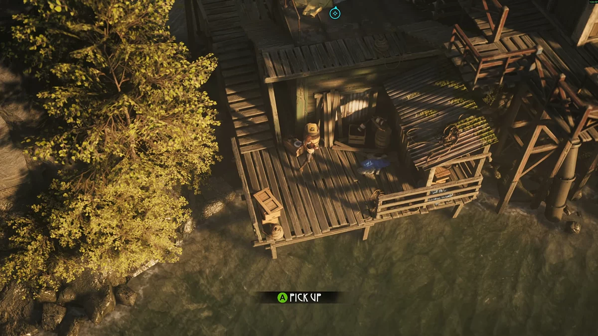 По рабочим постройкам можно обойти местный порт. На квадратной платформе прямо перед вами лежит восьмая записка. Пятая коллекционная открытка будет лежать на второй отдаленной платформе.