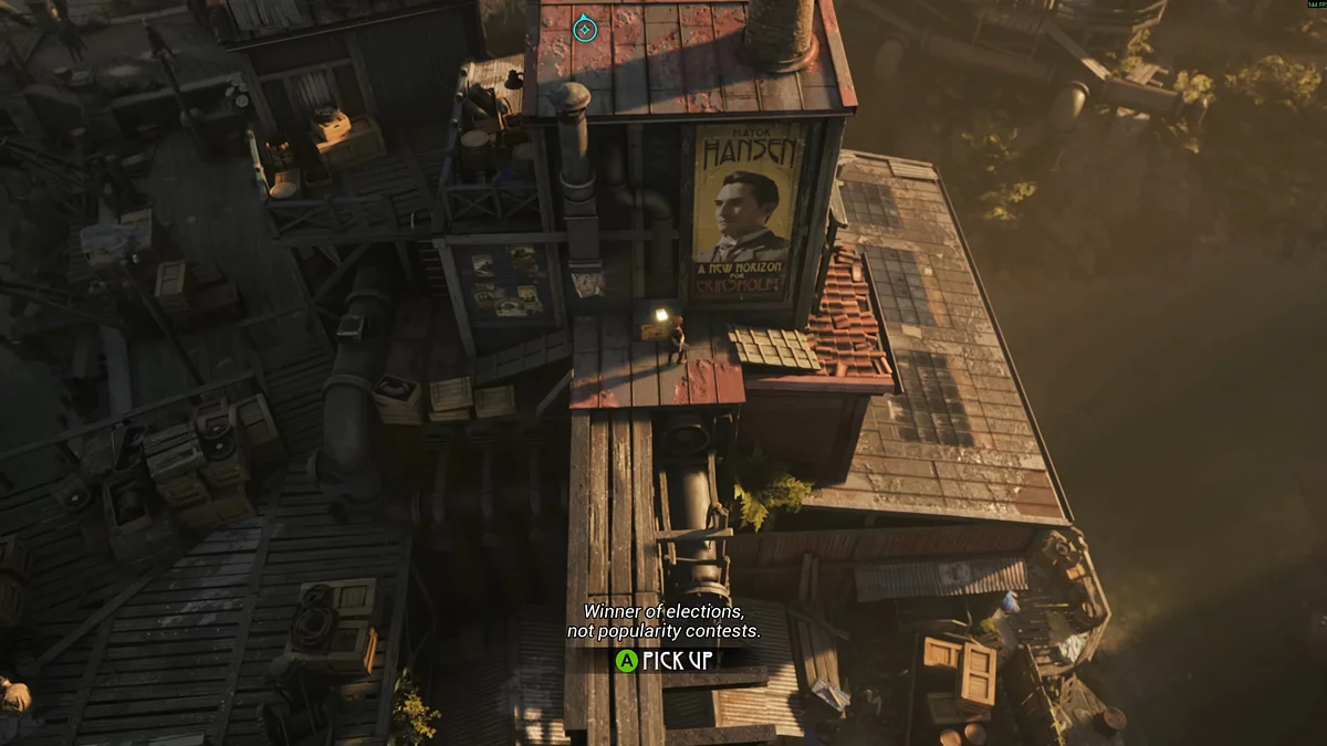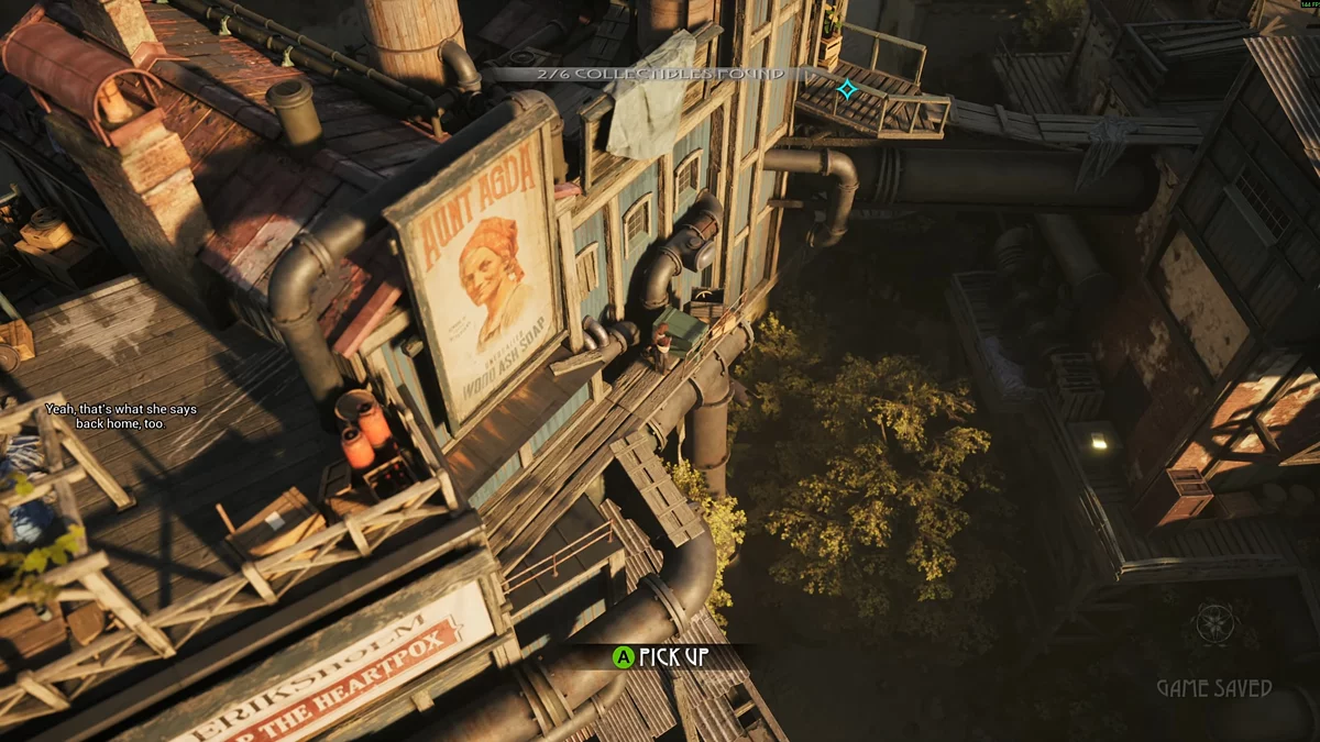 После небольшого диалога с нашими друзьями аккуратно спуститесь по крышам. По пути не забудьте забрать записку, лежащую на столе в углу.