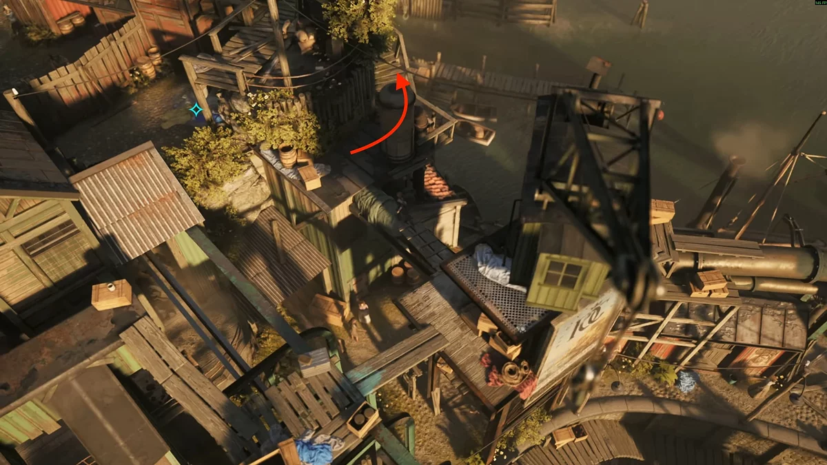 Но перед тем, как пойти дальше, воспользуйтесь паузой и пробегите за угол. Там, на деревянном помосте, вас будет ждать еще один коллекционный предмет.