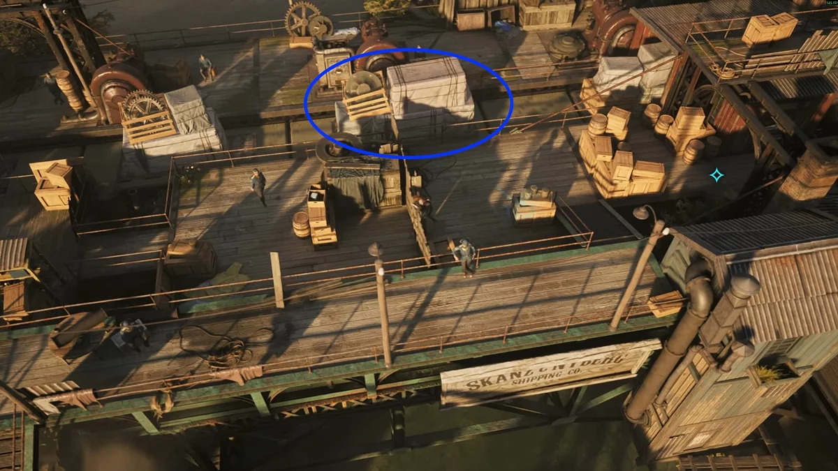 Прежде чем добраться до вентиля, спрячьтесь в безопасном месте и метко усыпите противника. После чего, как обычно, спрячьте тело у крана на конце выступа.
