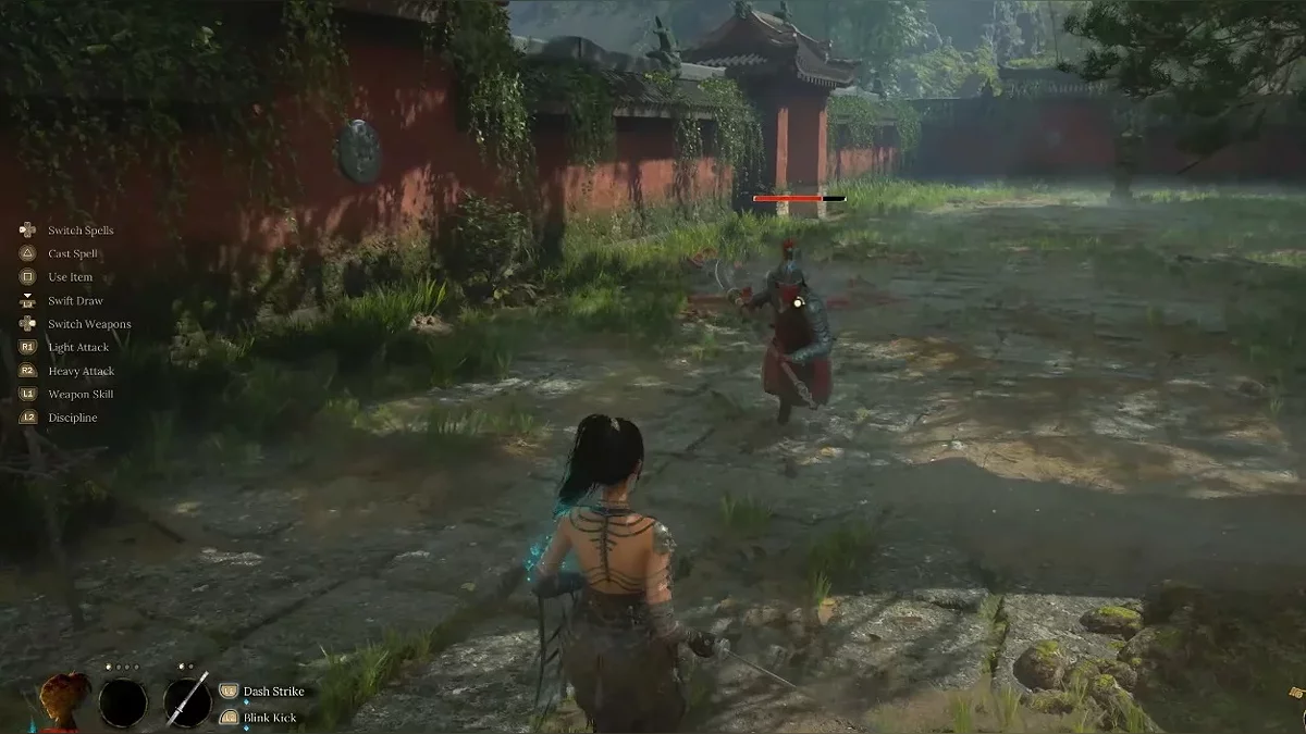 Священный храм — стартовая локация игры и ваш небольшой островок безопасности в мрачном мире Wuchang. Когда вы выйдите на свежий воздух и спуститесь вниз по ступеньками, то заметите агрессивно настроенных солдат. В левой стороне двора находится особенно сильный воин, который представляет опасность, особенно пока вы не прокачаете базовые навыки. Этот боец охраняет дверь. На раннем этапе прохождения открыть её не получится, ведь вам потребуется особый ключ. Может возникнуть обманчивое ощущение, что он где-то рядом, просто вы его не нашли. Однако это не так.