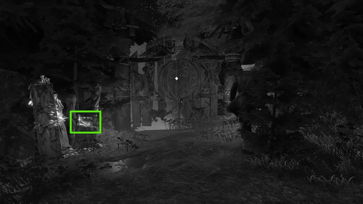 Следуйте в любую сторону, пока не появится гигантская голова Портного. Через некоторое время вы окажетесь в новой локации. Прочтите заметку «Поглощение» и сожгите доступные предметы. Деревянные идолы также можно сжигать.