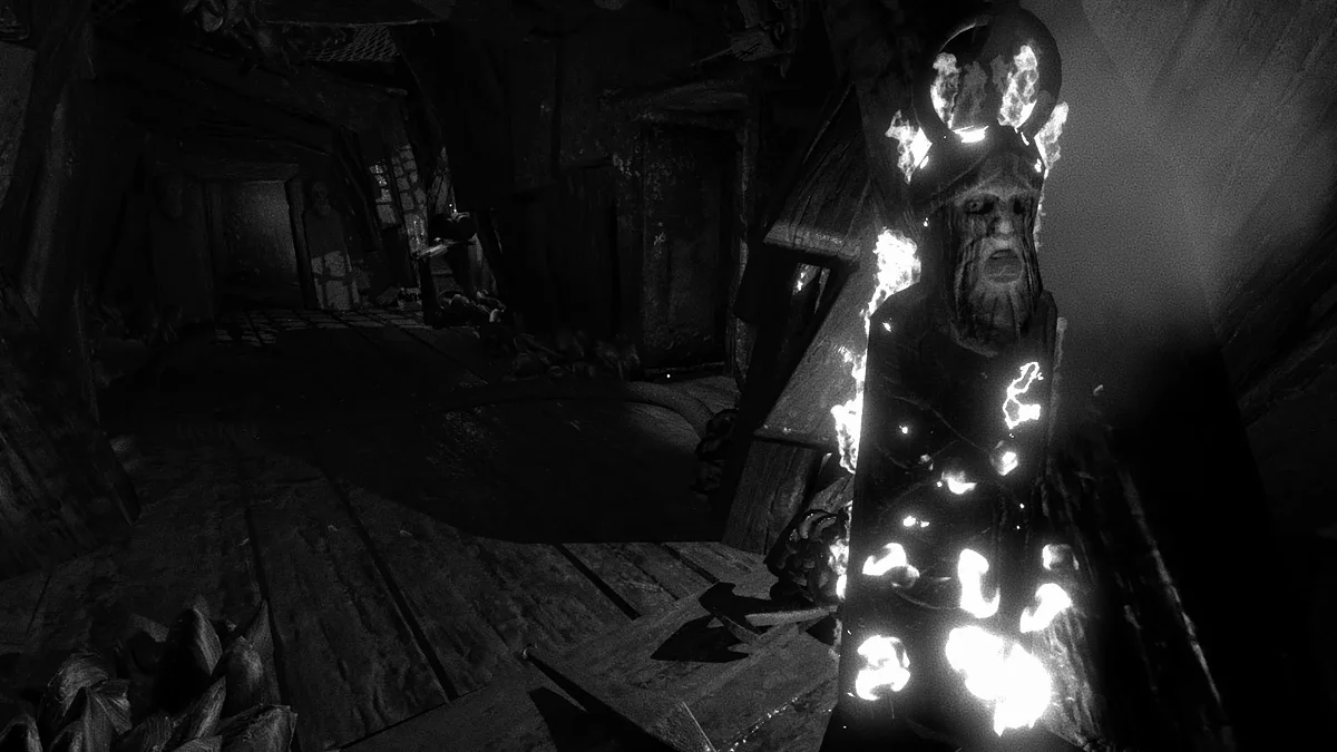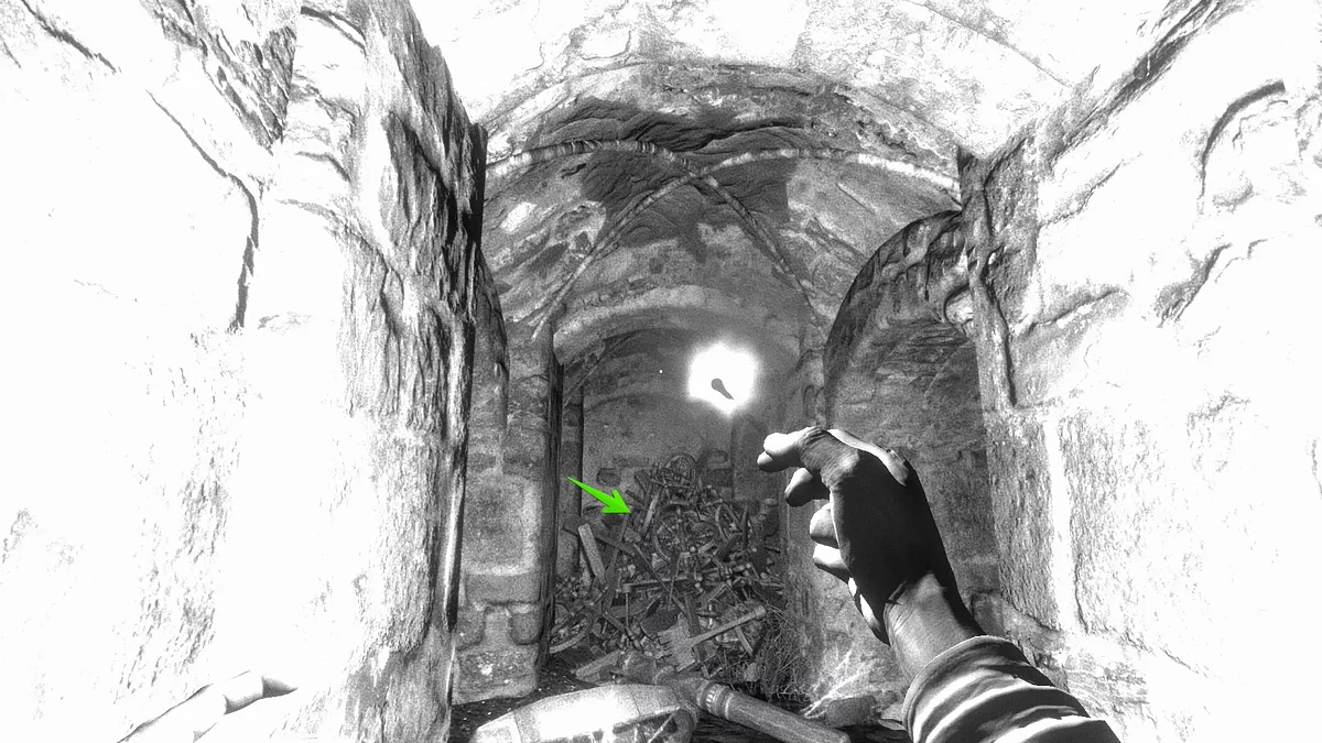 Отыщите лаз, после которого сверните налево и прочтите заметку «Знаки смерти». Сожгите кучу мусора перед мостом и спуститесь по лестнице. Чтобы открыть запертую решетку слева, нужно сжечь деревяшки перед аркой ниже. Можете попробовать использовать код — 1213 (количество глаз у существа на фреске в такой же последовательности).