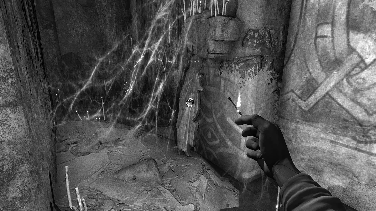 Так начнётся вторая сюжетная глава, а вы разблокируете одноименное достижение. Подберите коробок спичек и сожгите им преграду позади алтаря. Теперь с помощью этого инструмента вы можете поджигать различные объекты, открывая проходы или находя предметы для головоломок. Помимо этого, в игре предусмотрена ачивка за сожжение 616 предметов, в их список входит и паутина.