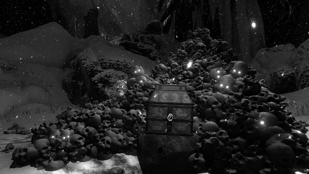 Добравшись до острова, пройдите вперёд и сразу же сверните налево. Здесь заметка «Остров мёртвых». Прямо перед вами запертая дверь. Чтобы открыть её, придётся отыскать четыре идола. Помимо этого, здесь же вы можете отыскать два запертых сундука со страницами для Книги. Можете начать исследование локации с любой стороны.