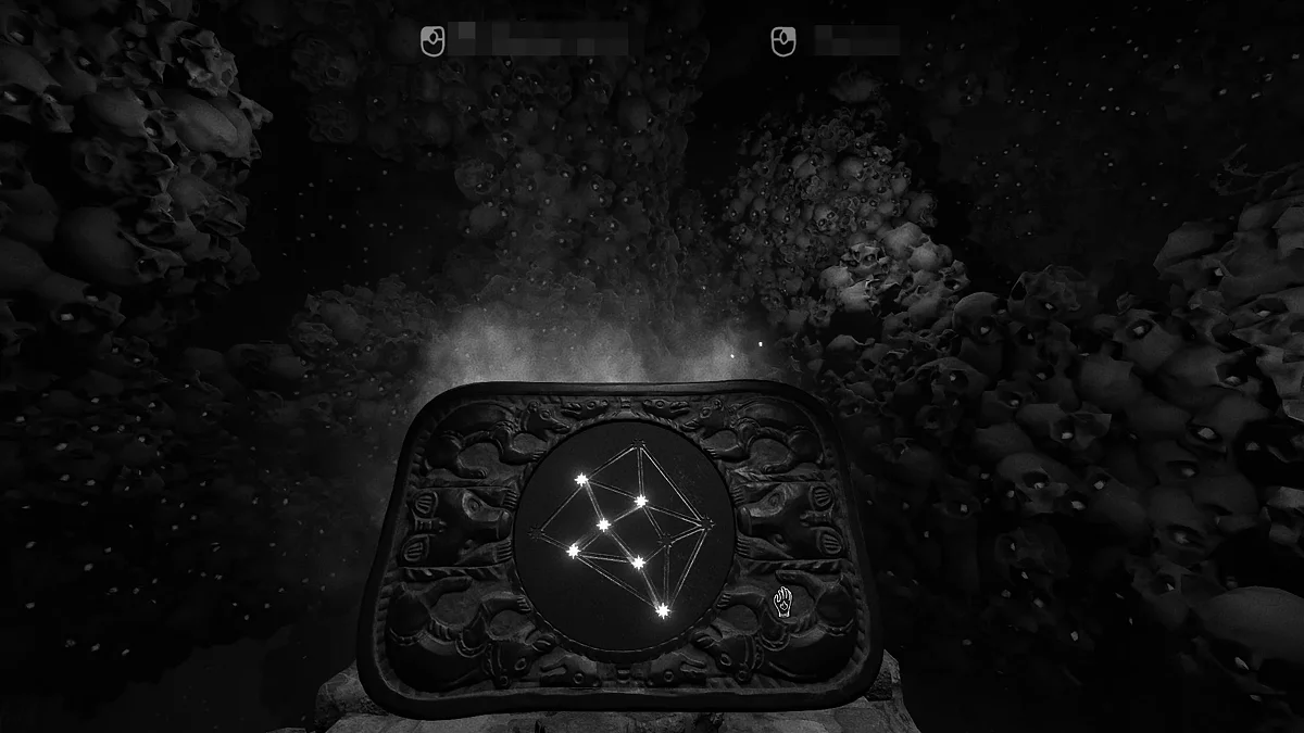 Если согласились сыграть, следуйте за головой и сыграйте в простую игру: за три броска нужно сбить семь предметов, расставленных на колоннах. Однако делать это нужно только для получения достижения Dibs, ведь мы в любом случае укажем правильный код — 9362. Его можно подобрать самостоятельно, если изучить фреску позади сундука.
