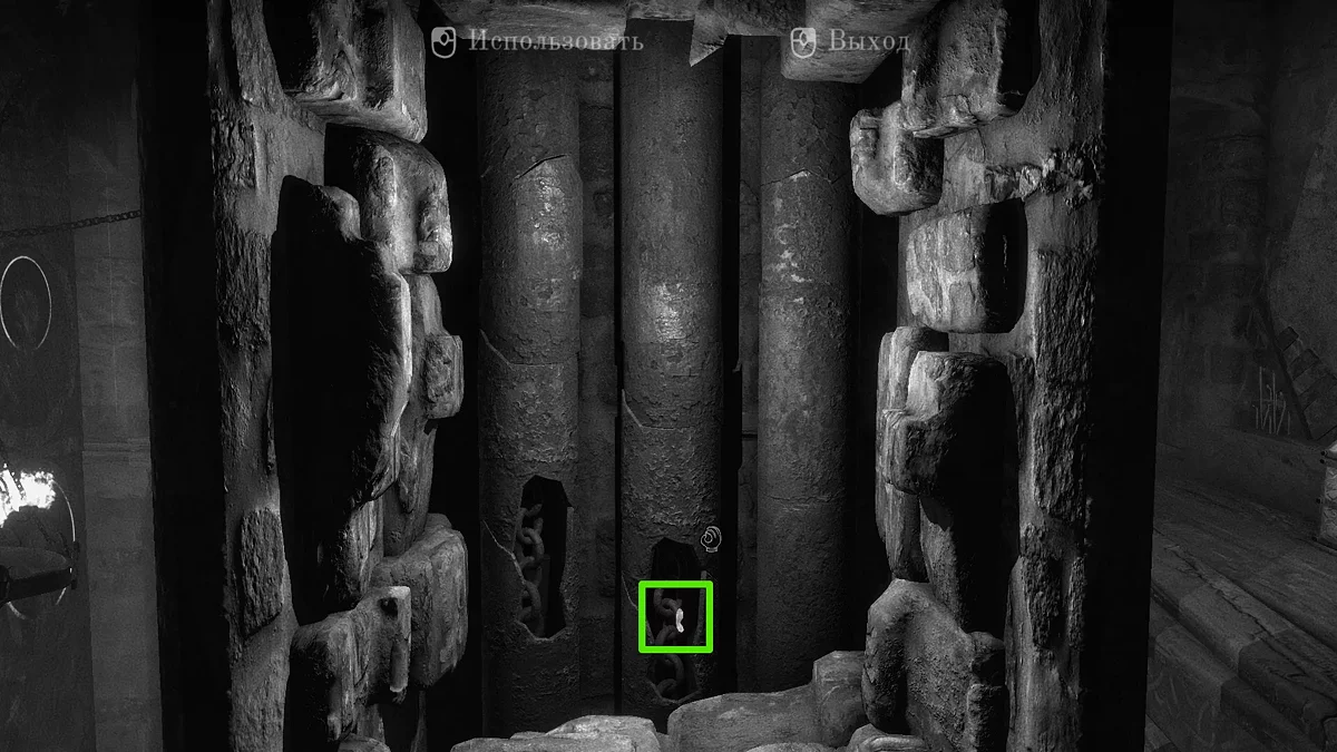 Итак, чтобы получить ключ, в колоннах найдите трубы, в которых спрятаны цепи. Ваша задача — отыскать слабые звенья и разрушить цепи. Повторите действие со всеми цепями, чтобы ключ упал вместе с паникадилом в основной зал.