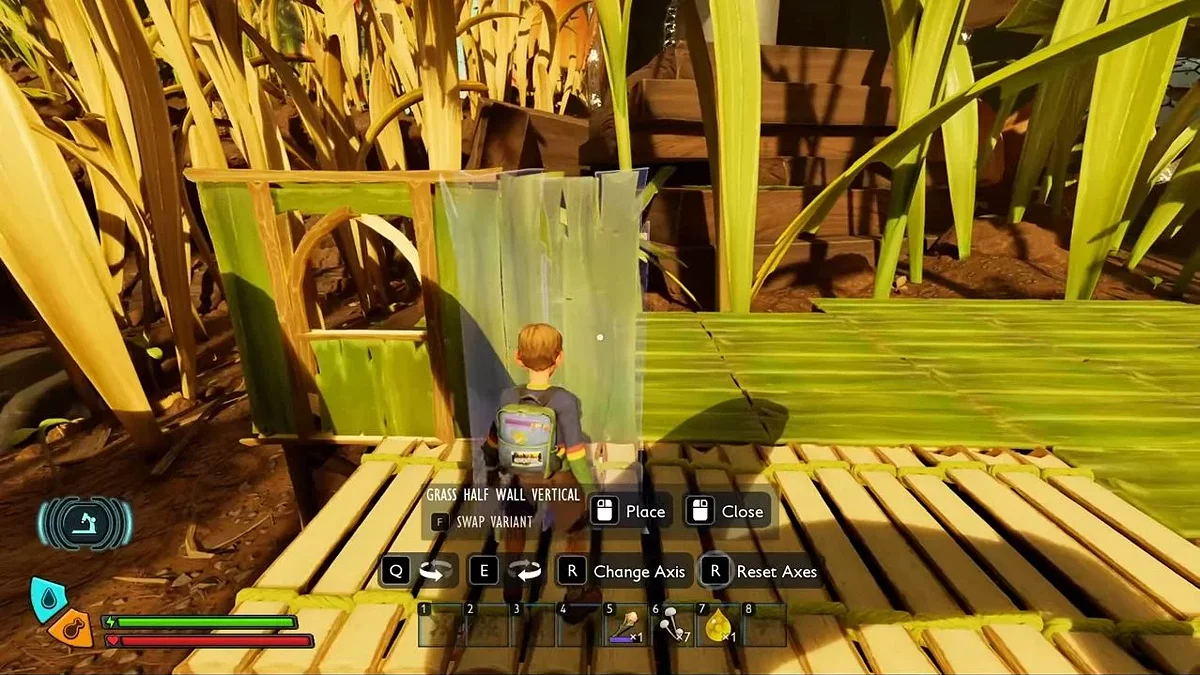 Затем используйте для крыши плитки как для пола. Их количество для простой конструкции будет таким же. После того как вы завершите планирование базы, соберите траву неподалеку, чтобы посадить растения. Ваш персонаж может нести максимум пять досок, а для перевозки большего количества используйте муравья (Ant Buggy). Собрав достаточное количество материалов, разместите их на заранее выложенных плитках, чтобы начать строительство полов и стен.