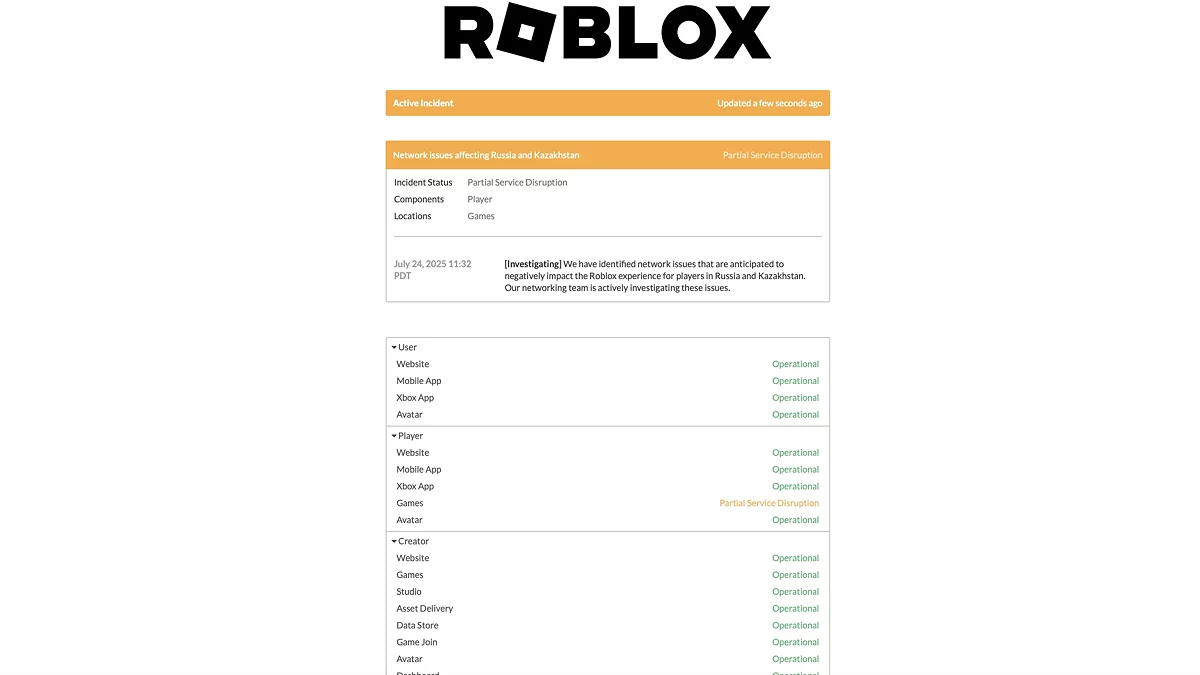 Вполне возможно, что в работе Roblox произошел небольшой технический сбой, поэтому подключиться к сессиям других пользователей сейчас просто невозможно. Для удобства игроков разработчики создали специальный сайт, где отображаются любые существующие неполадки. Посмотреть статус серверов вы можете по ссылке.