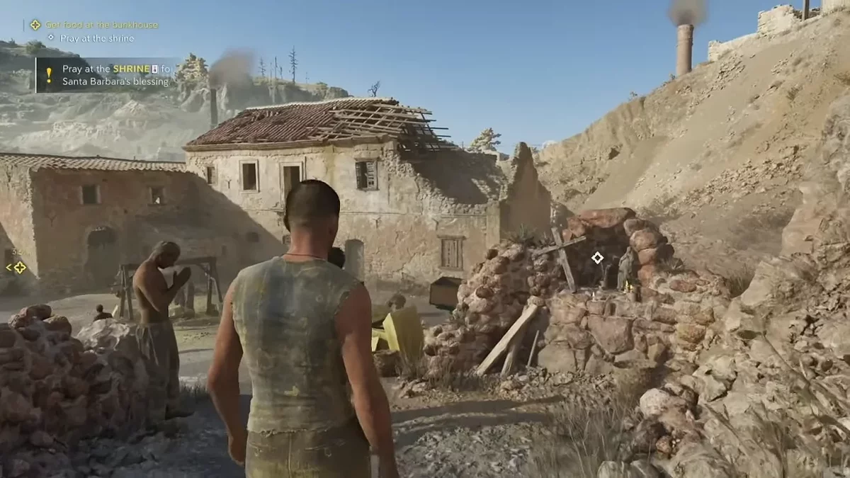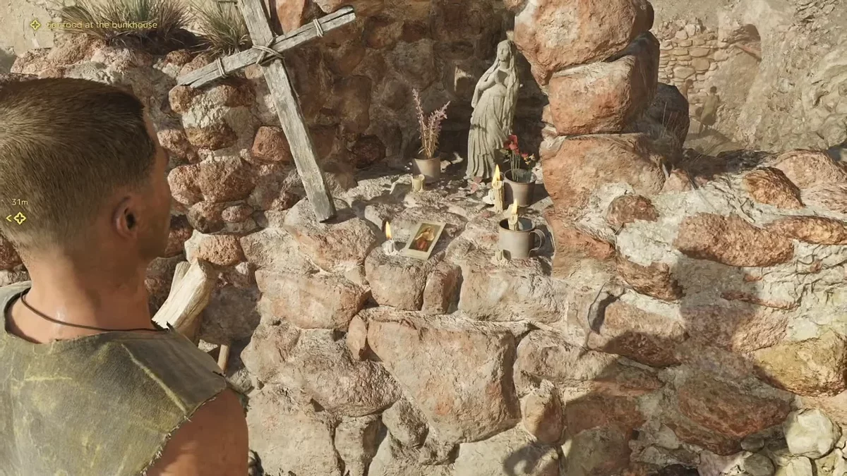 Пролог: Тремори (Tremori). Нужно добыть еду в бараке. После выхода из шахты вместе с Гаэтано (Gaetano) на главной тропе справа будет святилище с деревянным крестом.
