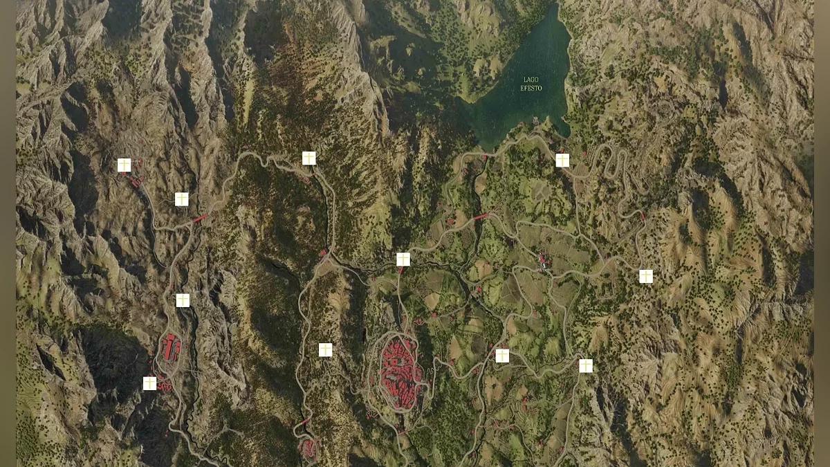 Карта находится на небольшом холме вдоль дороги на самом севере карты, к югу от большого озера Эфесто (Lago Efesto).
