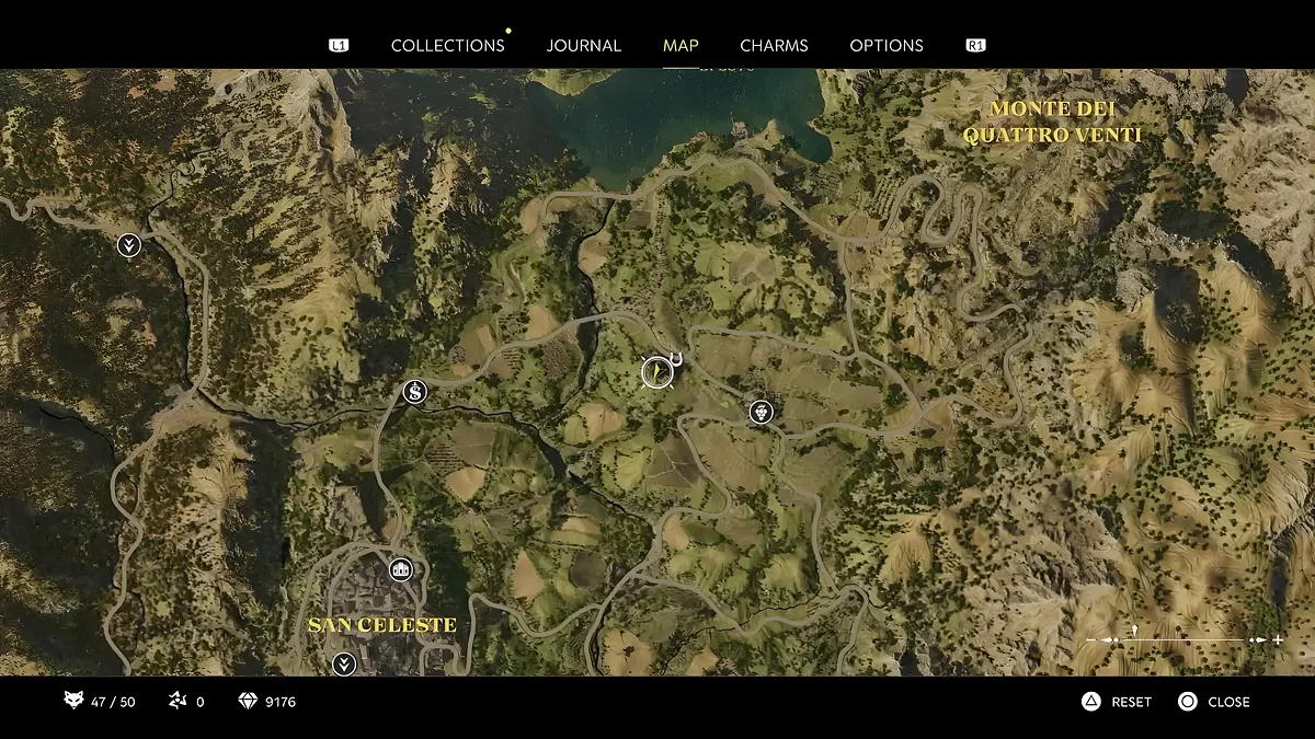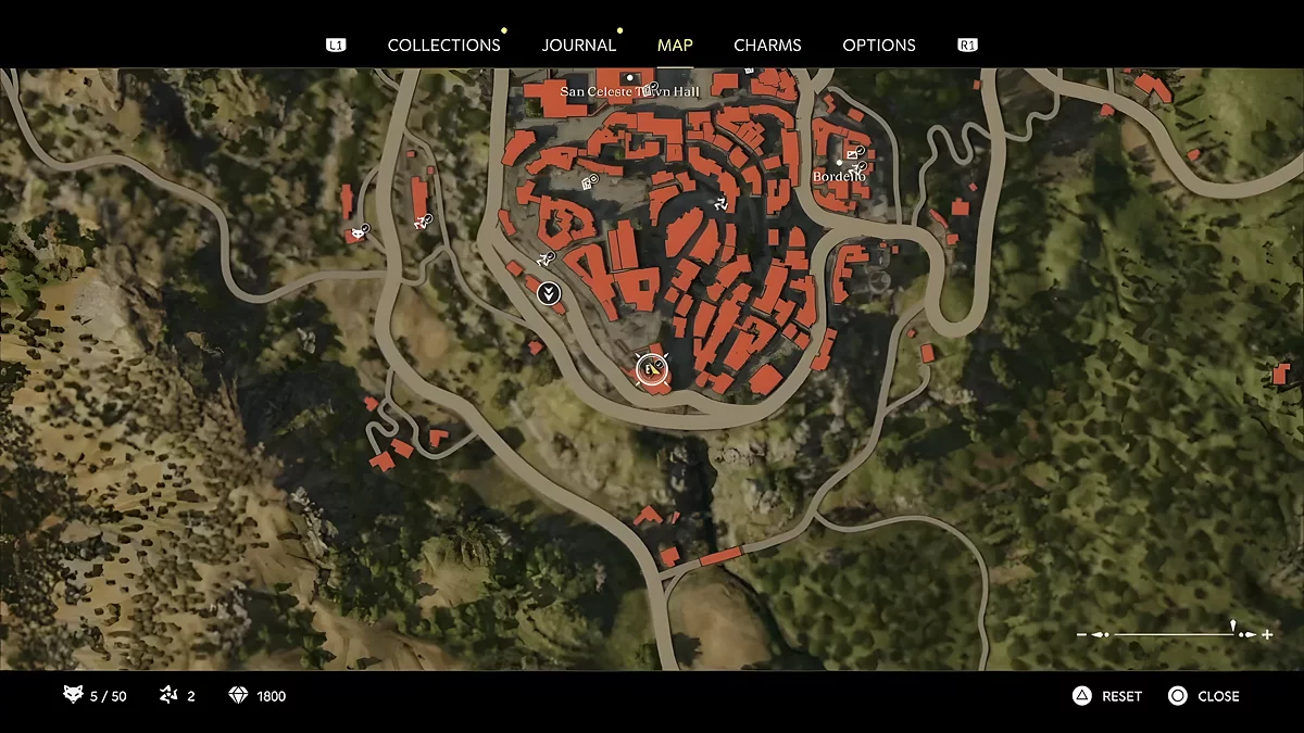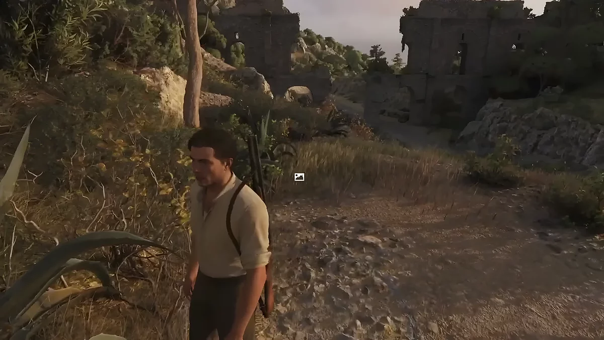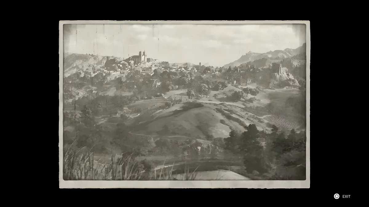 Все остальные фотографии можно сделать во время исследования открытого мира. Оказавшись в Сан-Челесте, пройдите на юго-запад: там расположена площадь с фонтаном. Повернитесь спиной к домам: вы увидите старые руины. Пробегитесь до самого левого окна. Справа от него будет скрыт подъем по лестнице. На самом верху отмечена специальная точка с пейзажным видом.