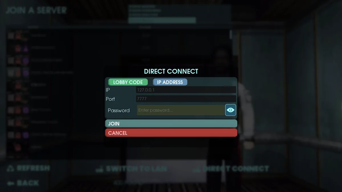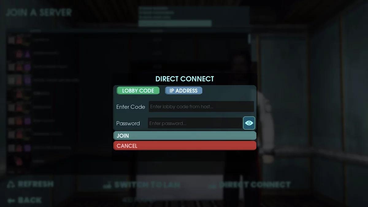 Однако удобнее не долго искать нужный вам вариант, а воспользоваться функцией прямого подключения. Узнайте код лобби и пароль, чтобы присоединиться к сессии.