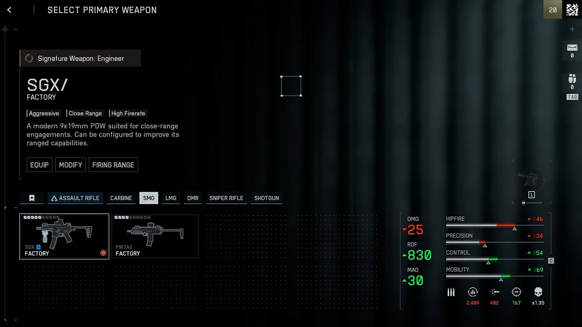 Среди пистолетов-пулеметов на этом этапе в игре всего два типа пушек, и мы с уверенностью можем выделить SGX. Оружие доступно с самого старта, что делает его удобным для новых игроков. При прокачке до 20 уровня вы откроете дополнительные модификации, которые фактически могут превратить пушку в несколько разных вариантов под разные стили игры.