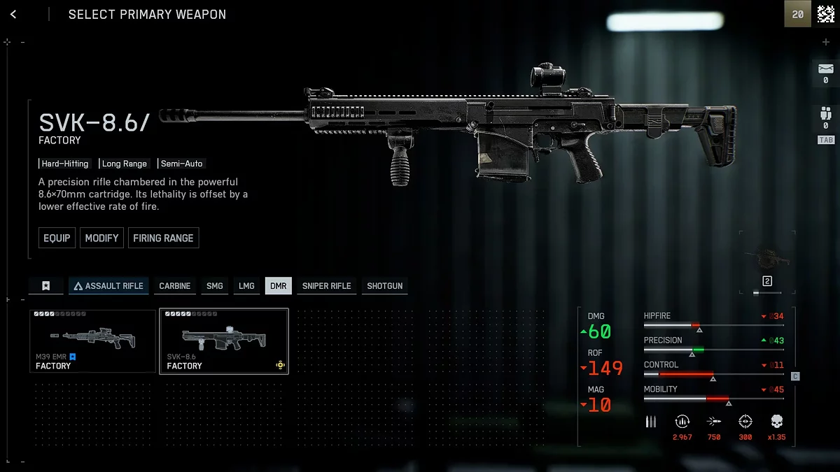 Во время бета-тестирования мы также предпочитали играть с DMR, однако выбор данного оружия довольно небольшой. Опробовав M39 и SVK мы с уверенностью отдаём предпочтение второму варианту. Прежде всего, SVK обладает высоким уроном — 60 единиц за выстрел, что заметно выше, чем у M39 (42 единицы).