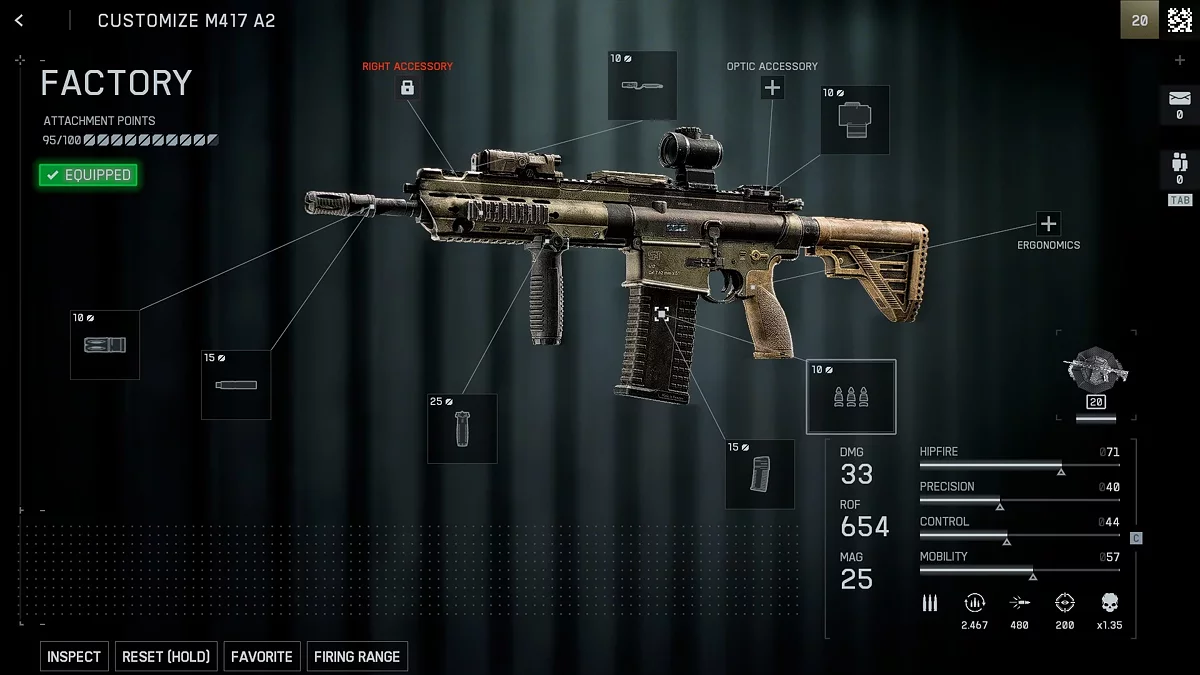 - Магазина на 20 патронов в большинстве случаев будет достаточно, хотя в последующем вам станут доступны и увеличенные варианты. Этот магазин сокращает скорость входа в режим прицеливания, увеличивает мобильность и скорость замены магазина.
