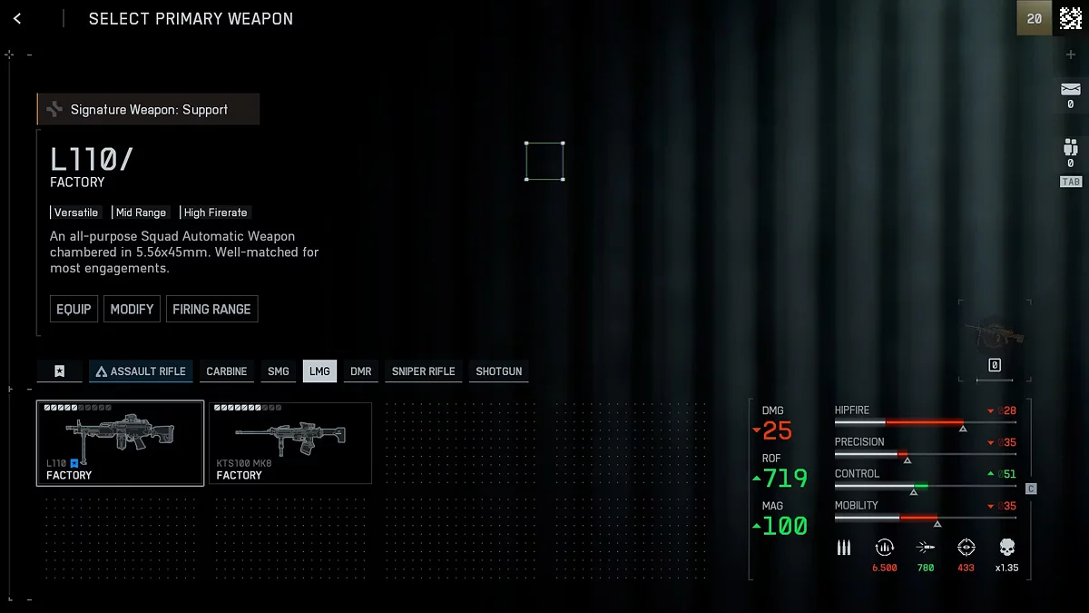 В категории лёгких пулемётов наиболее надёжным выбором становится L110 — базовое оружие класса поддержки. У него стабильная отдача и хороший показатель «time to kill», что делает его универсальным вариантом.