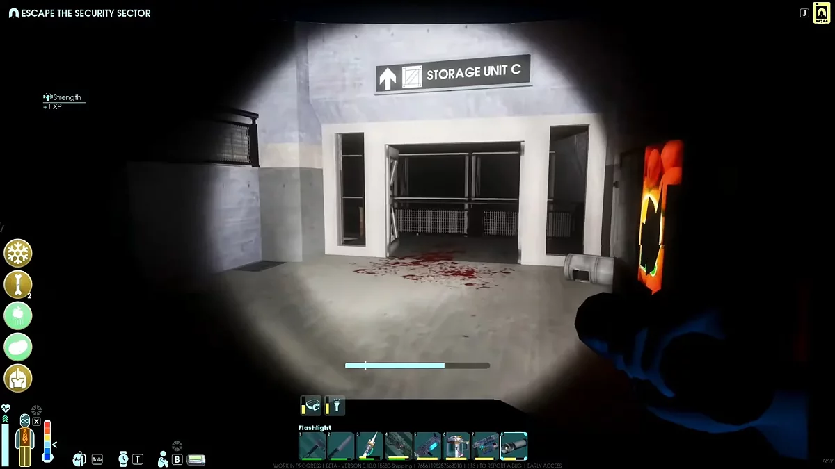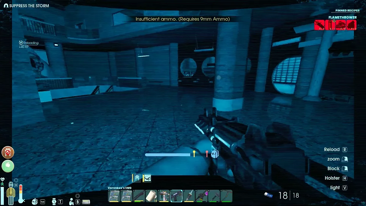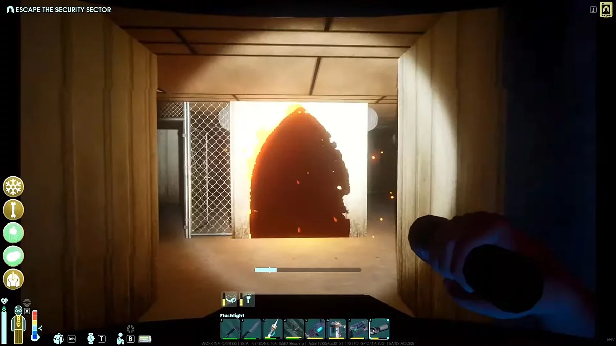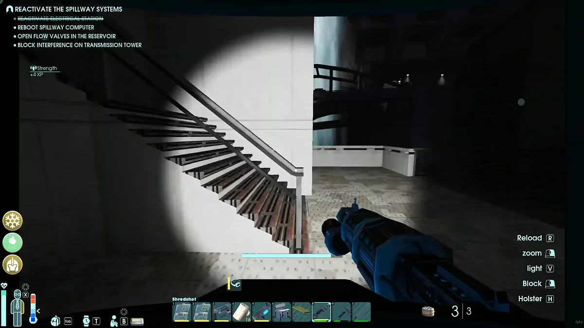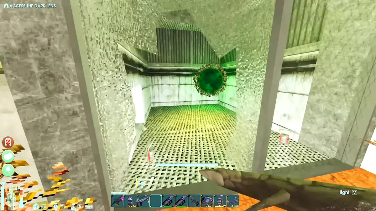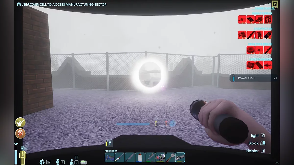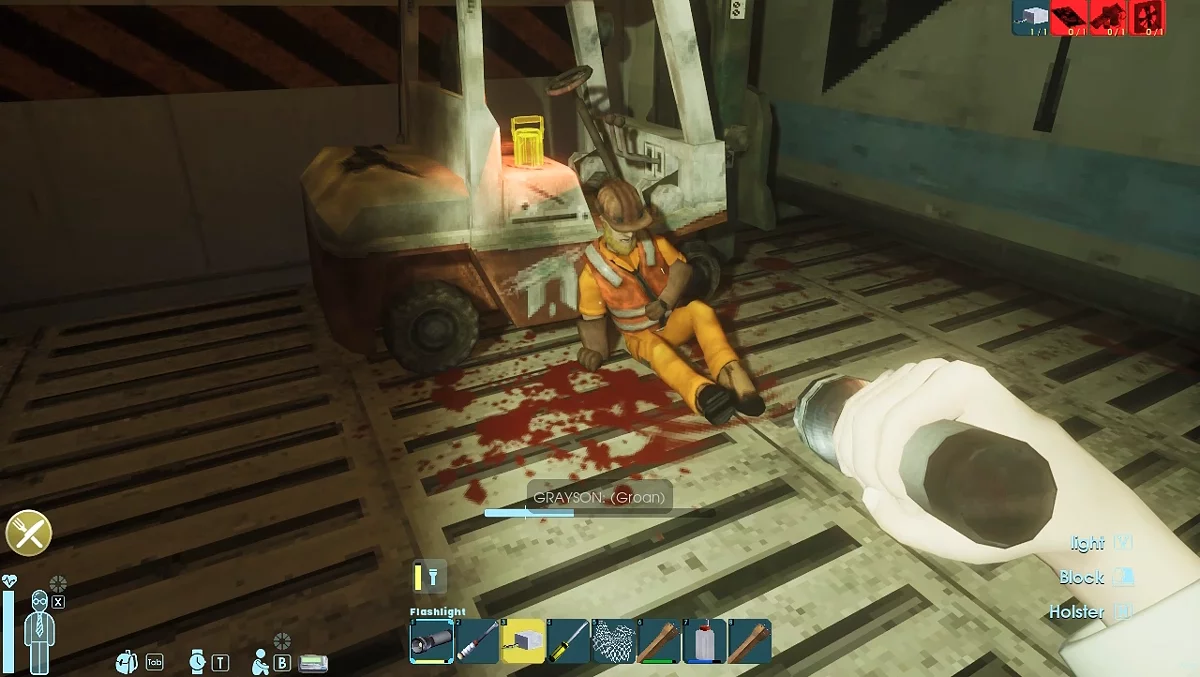 Пройдите через дверь справа от лифта. Спустившись, через лестницу попадите в закрытый отсек и заберите слева фонарик. Кроме того, тут вы узнаете об интересной механике переработки и разрушения объектов.