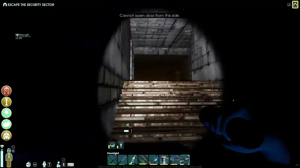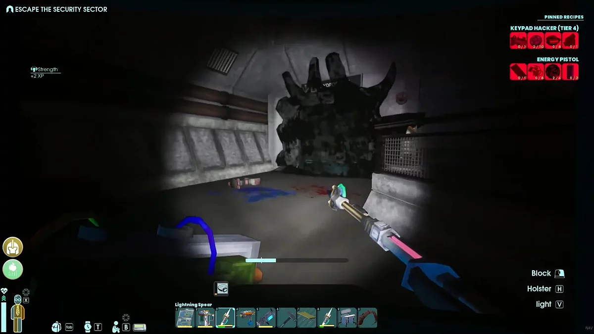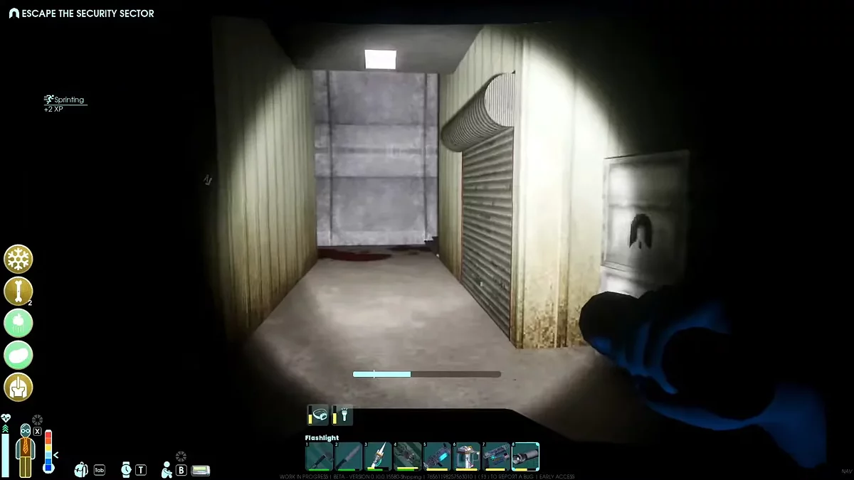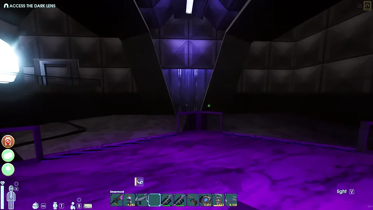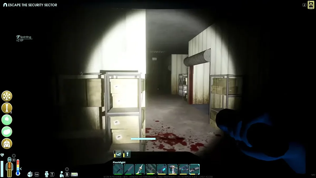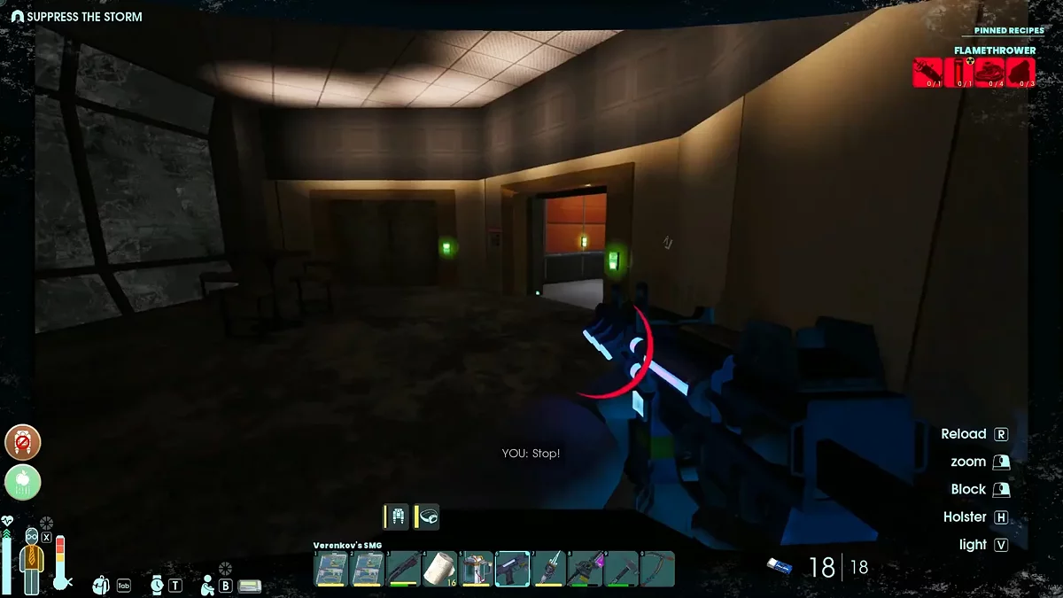 Пройдите через дверь справа от лифта. Спустившись, через лестницу попадите в закрытый отсек и заберите слева фонарик. Кроме того, тут вы узнаете об интересной механике переработки и разрушения объектов.