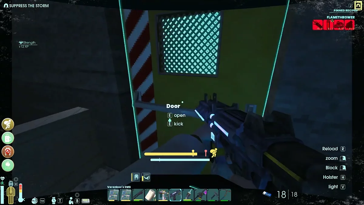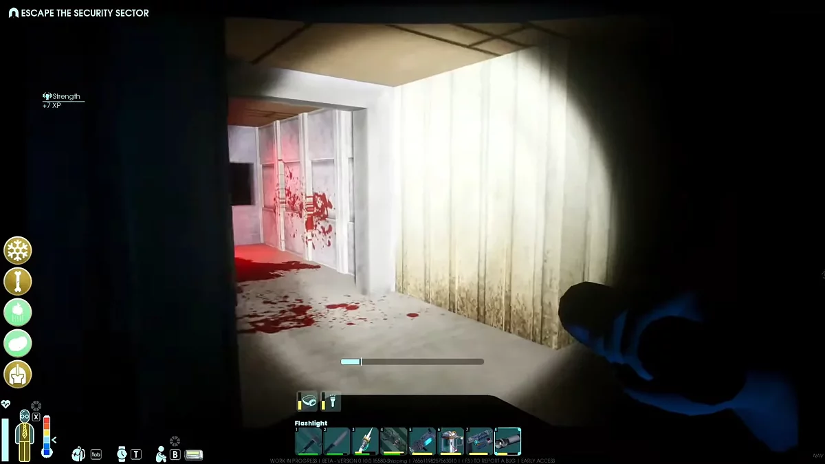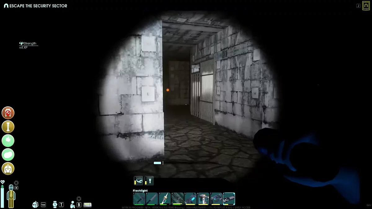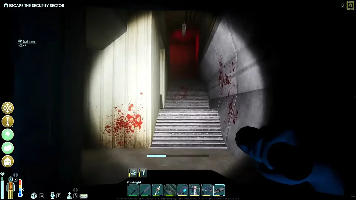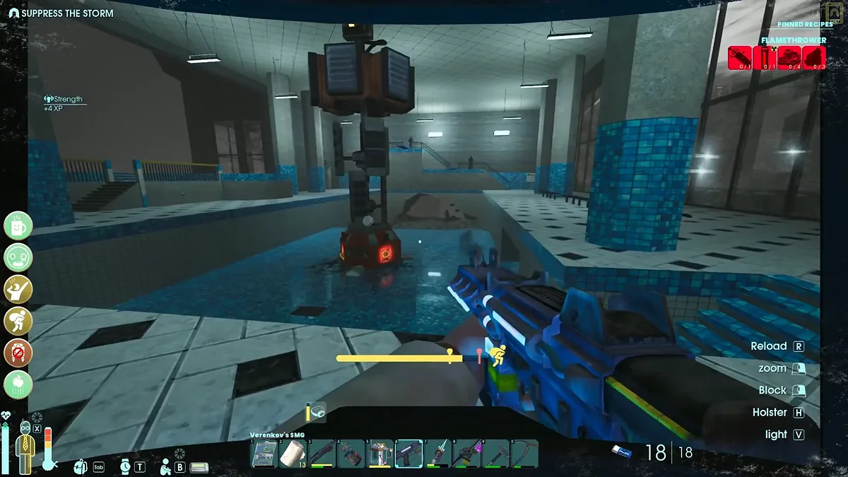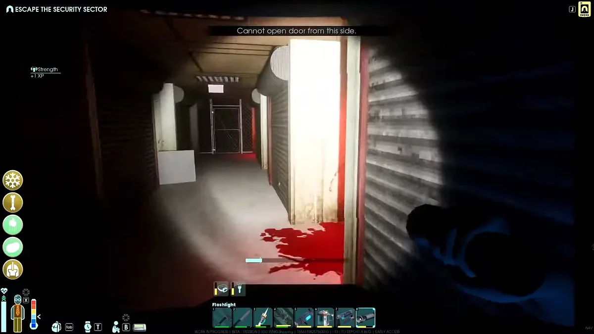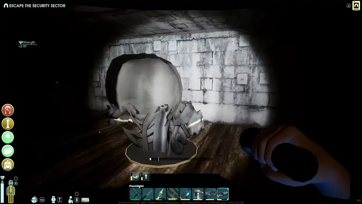 Пройдите через дверь справа от лифта. Спустившись, через лестницу попадите в закрытый отсек и заберите слева фонарик. Кроме того, тут вы узнаете об интересной механике переработки и разрушения объектов.