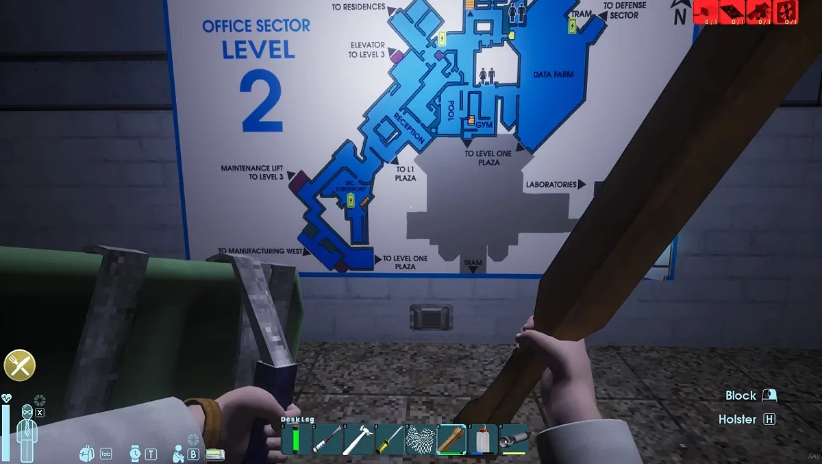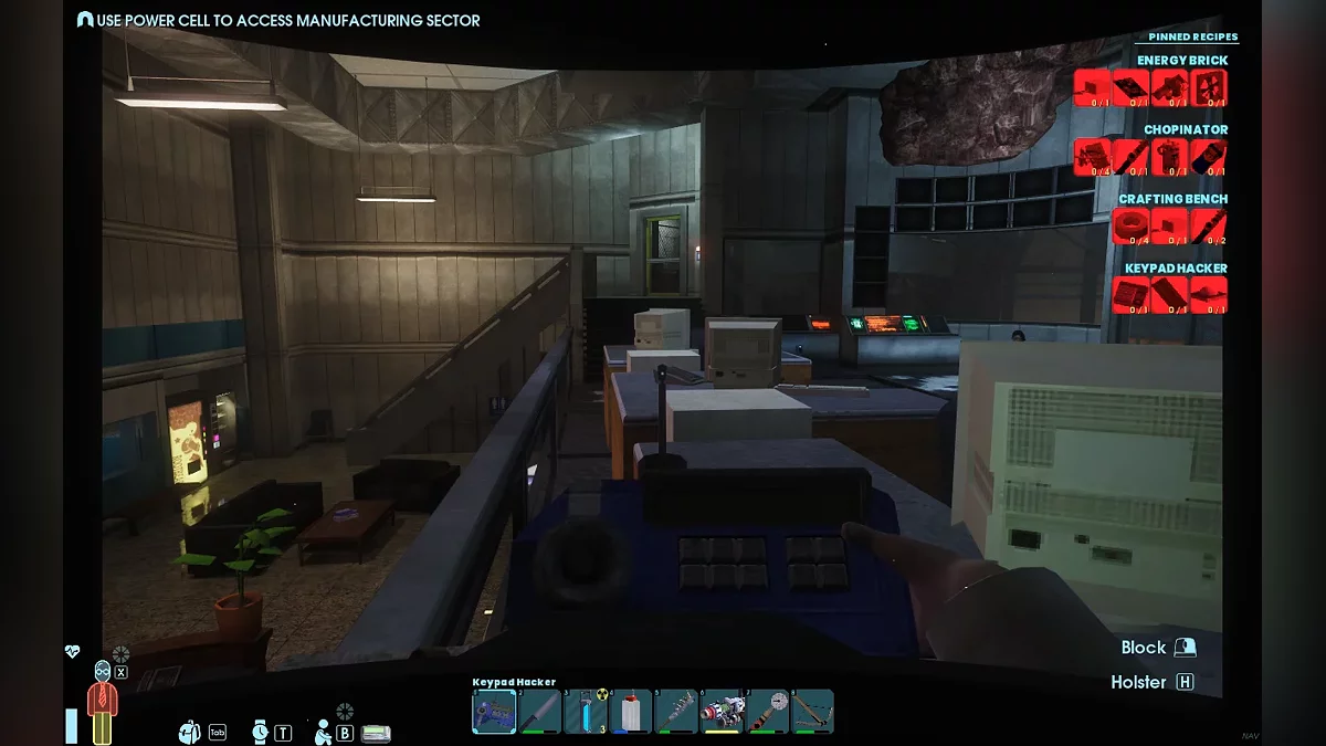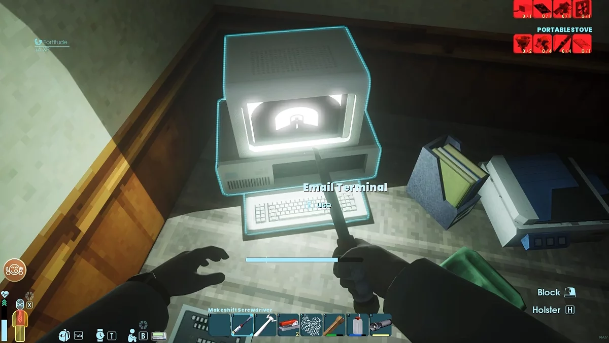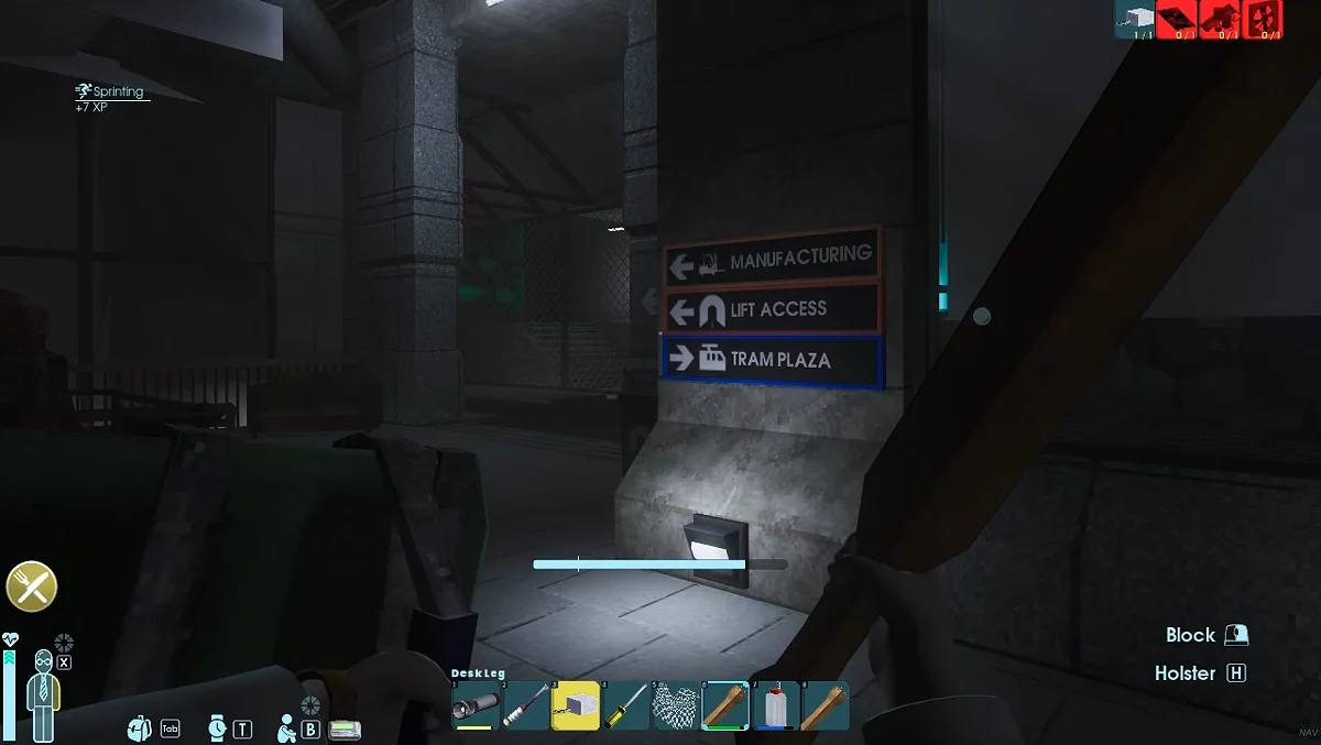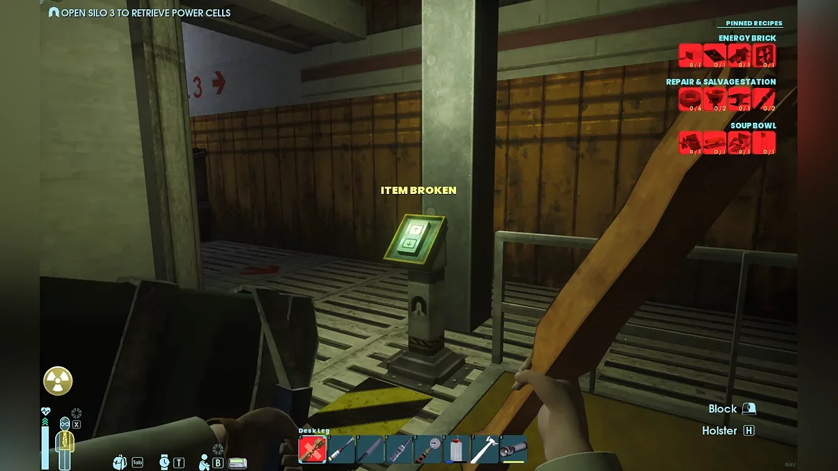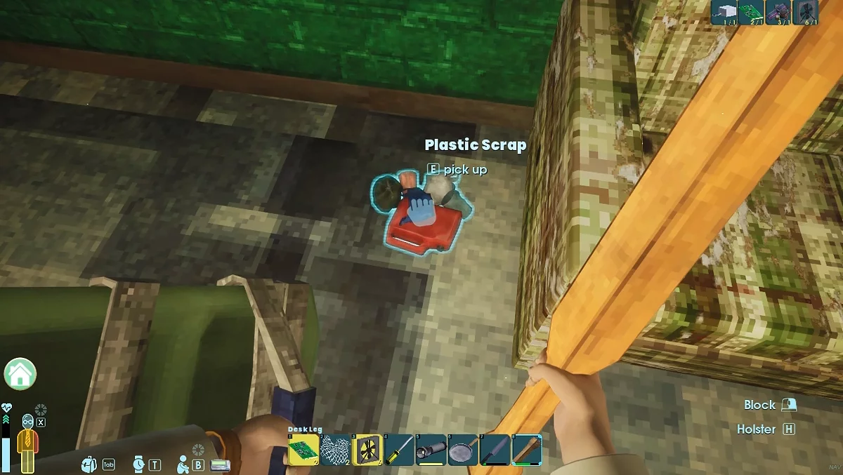 Тут игра напомнит о механике разрушаемости. Если вы в будущем увидите блоки ПК, то всегда разбирайте их для получения полезных предметов. Это же касается и мониторов. Также ломайте любые деревянные поверхности для получения досок.