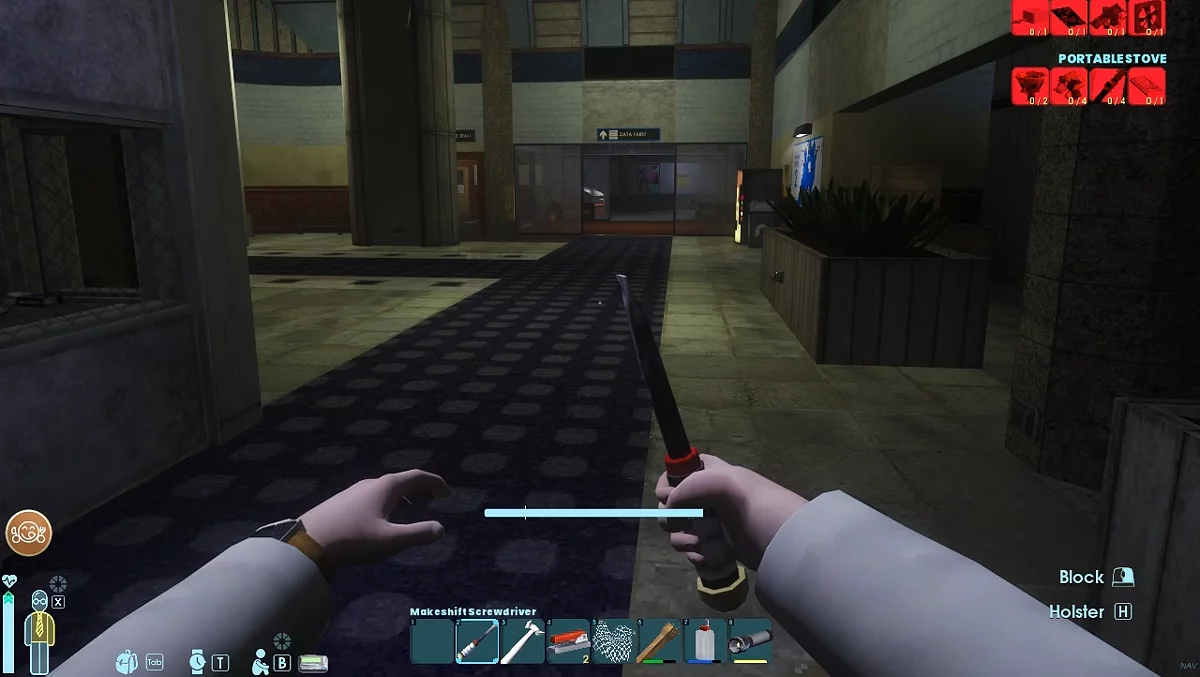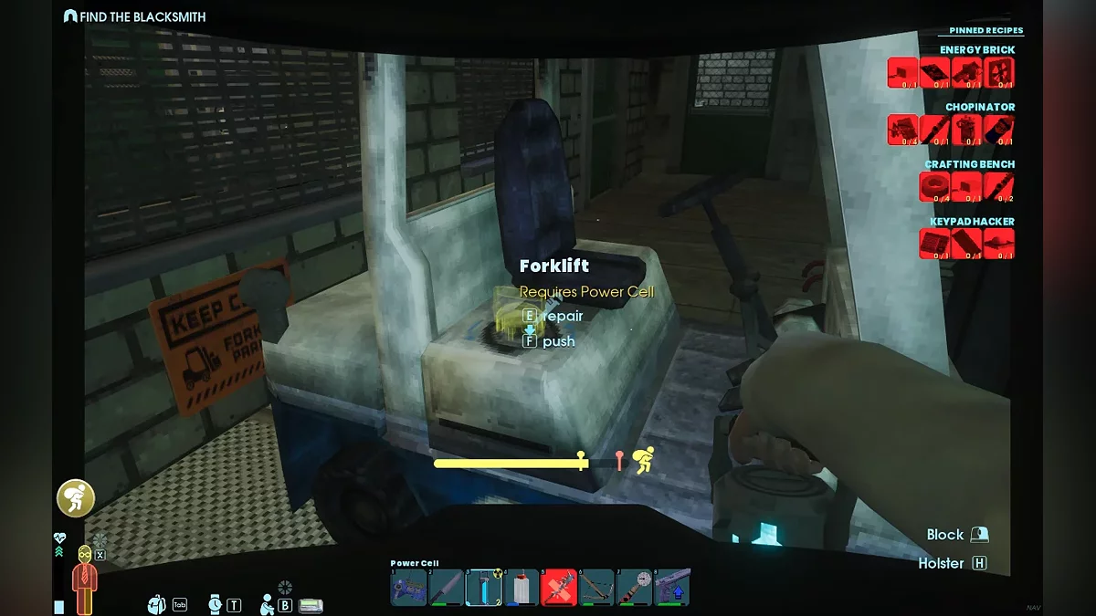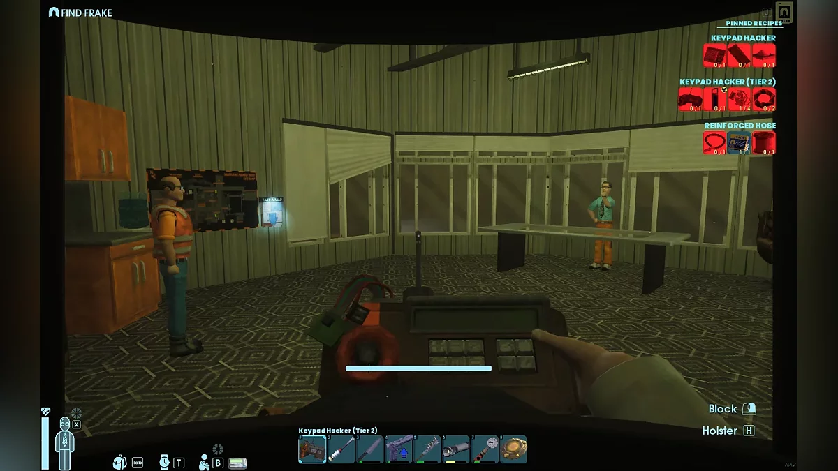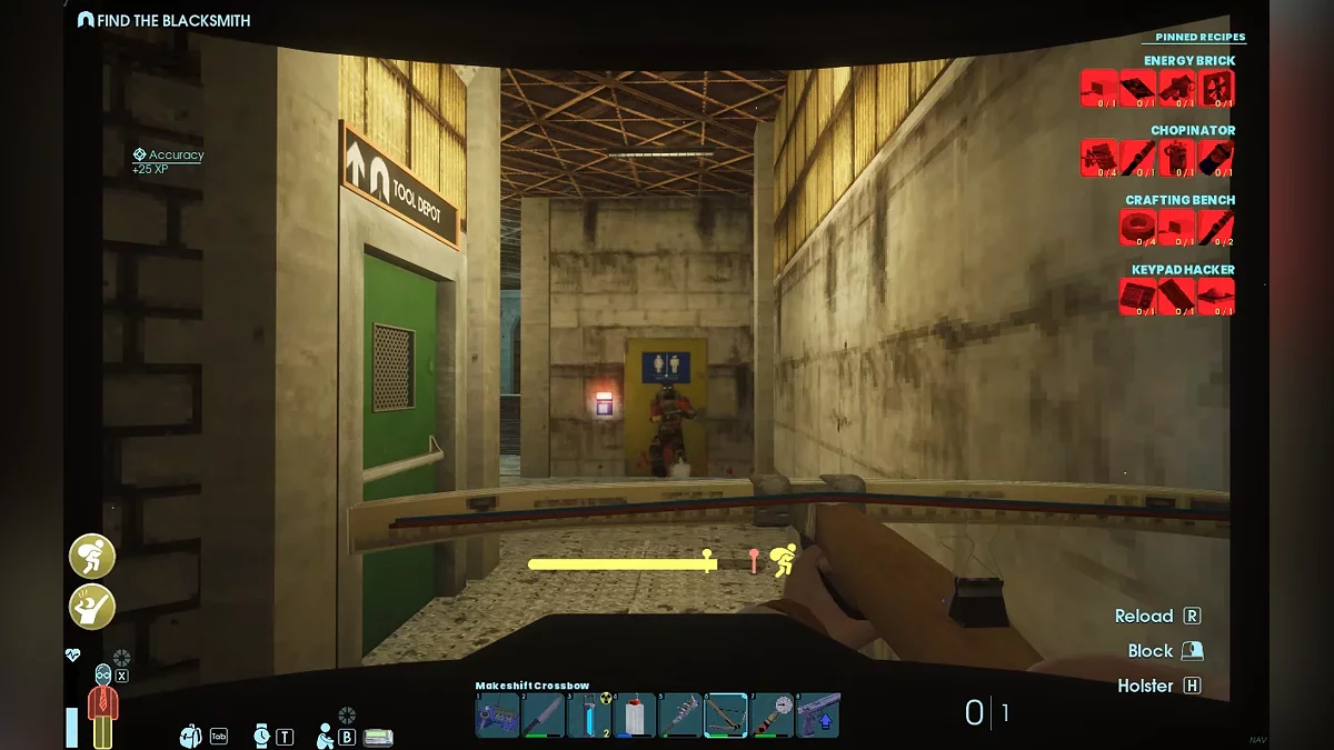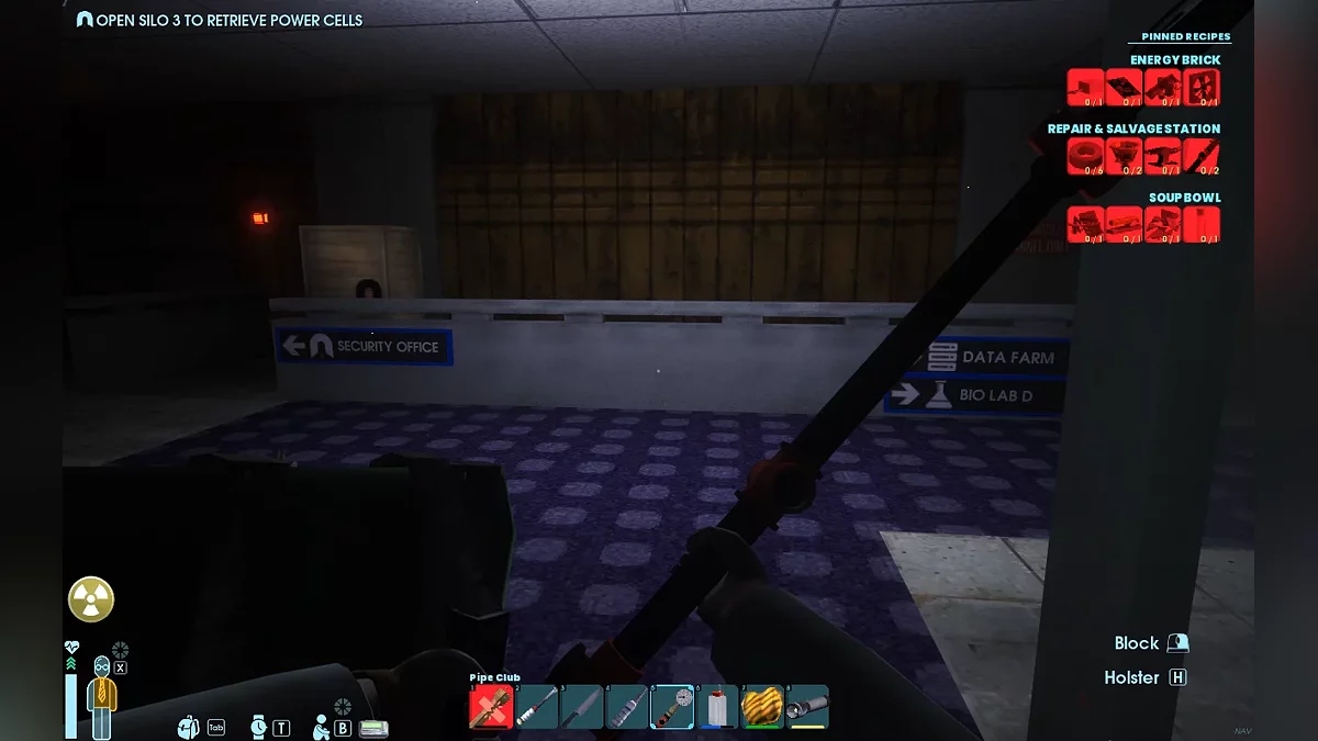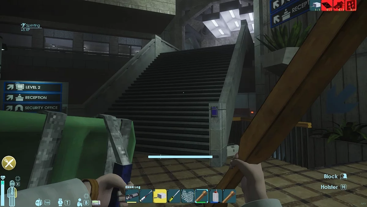 Тут игра напомнит о механике разрушаемости. Если вы в будущем увидите блоки ПК, то всегда разбирайте их для получения полезных предметов. Это же касается и мониторов. Также ломайте любые деревянные поверхности для получения досок.