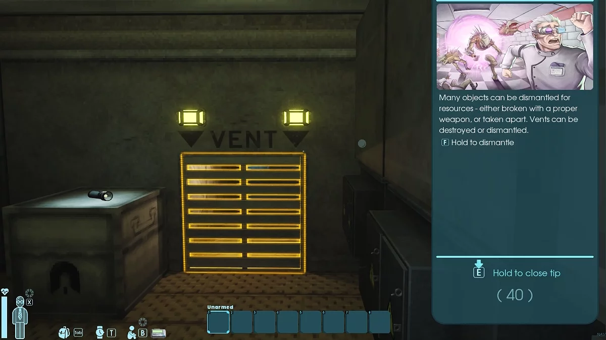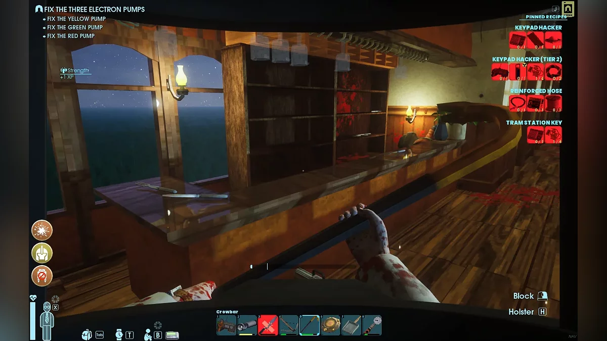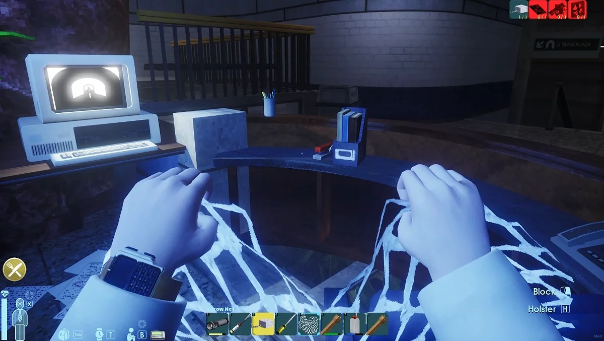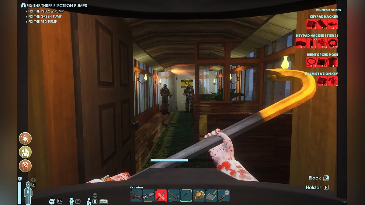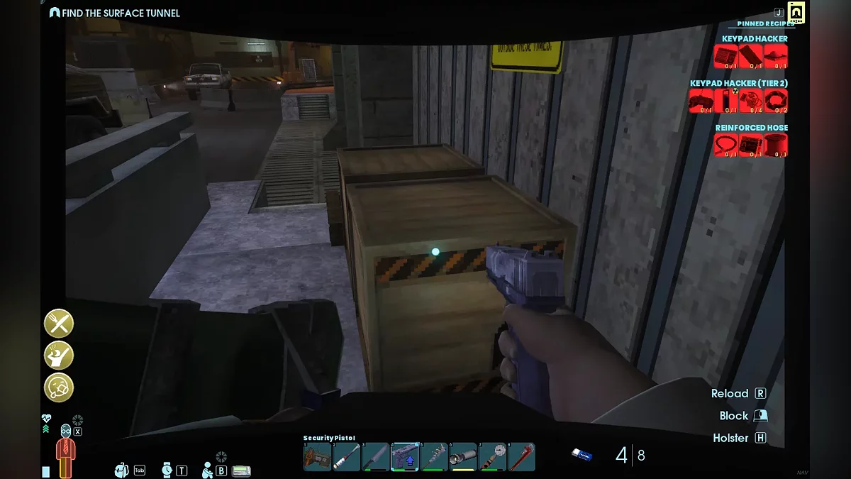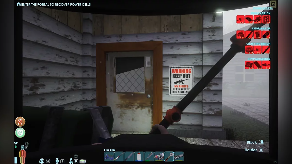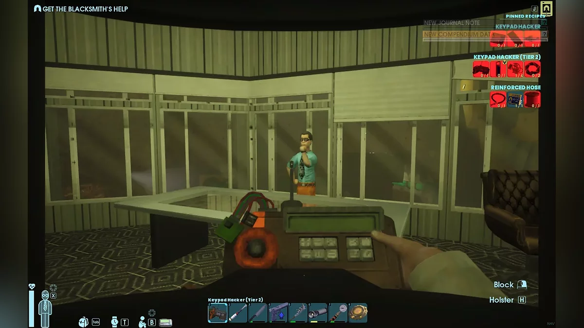 Тут игра напомнит о механике разрушаемости. Если вы в будущем увидите блоки ПК, то всегда разбирайте их для получения полезных предметов. Это же касается и мониторов. Также ломайте любые деревянные поверхности для получения досок.