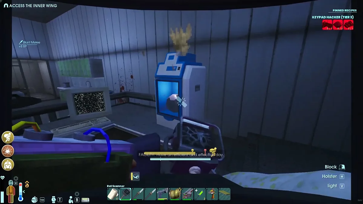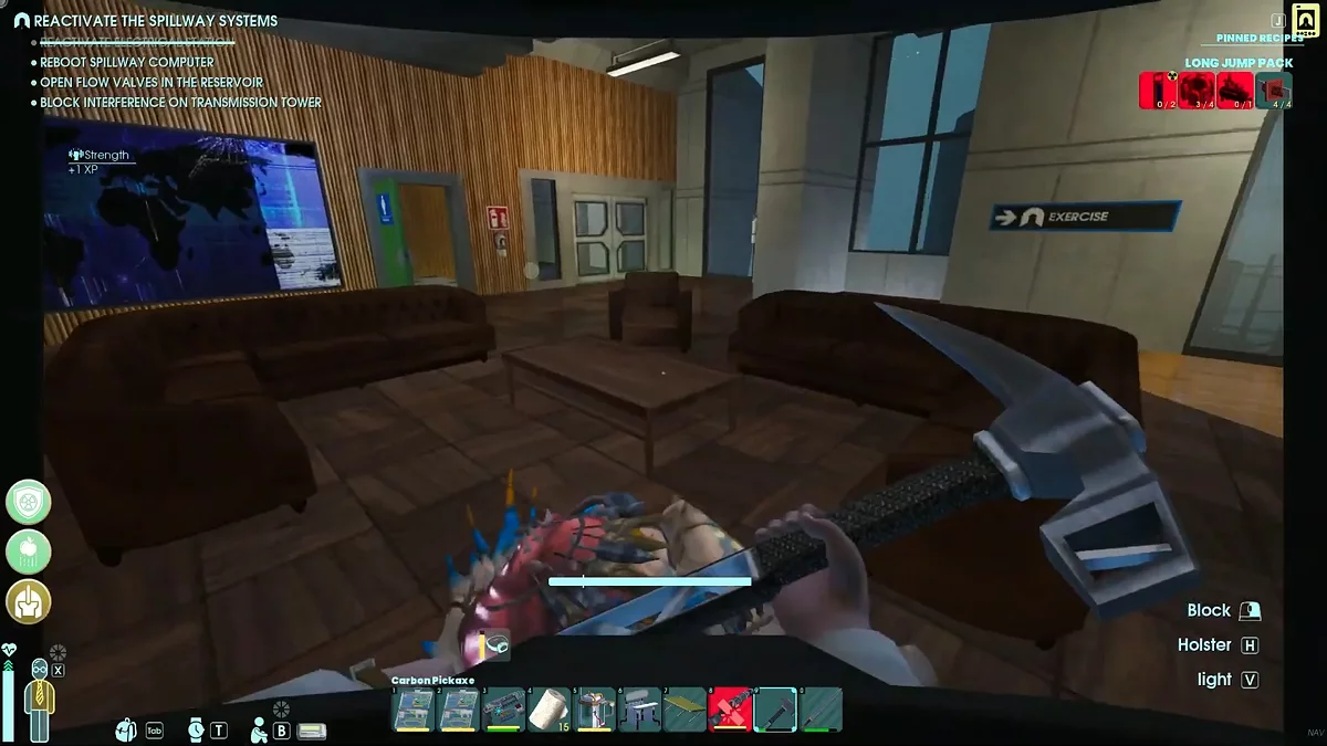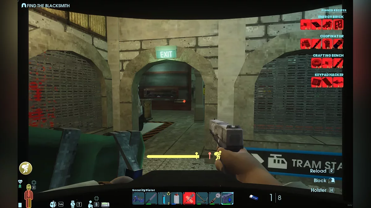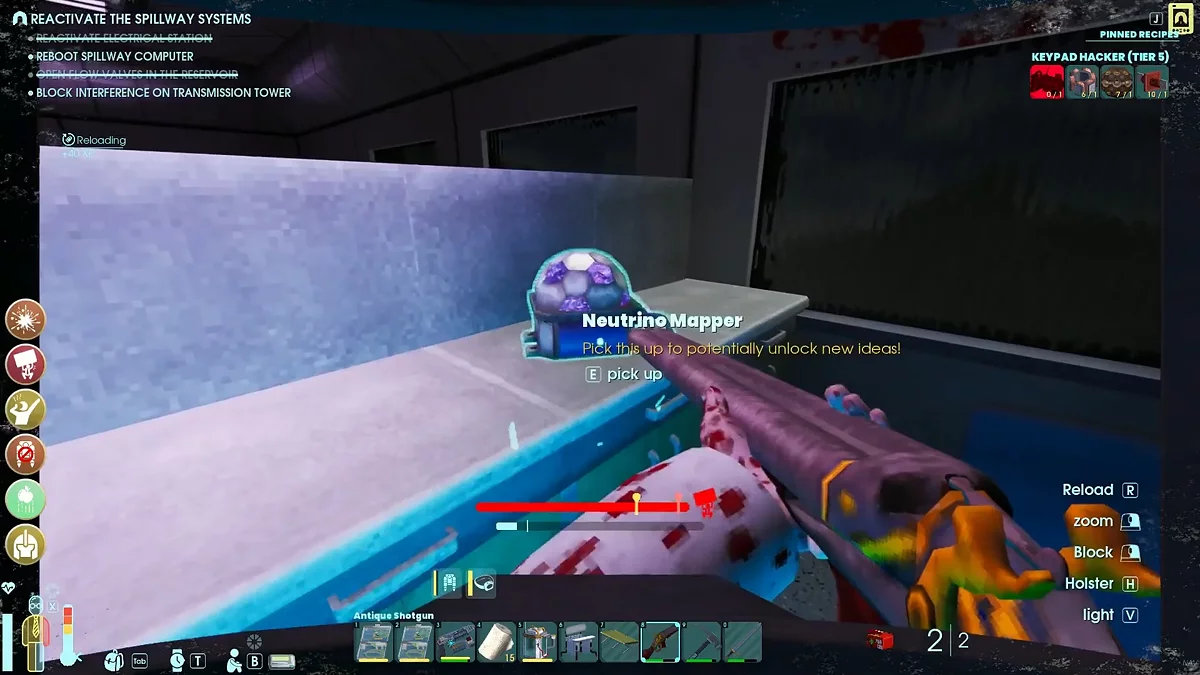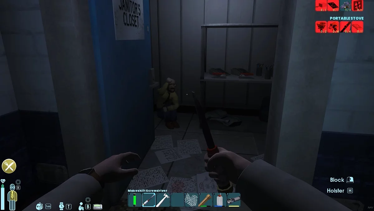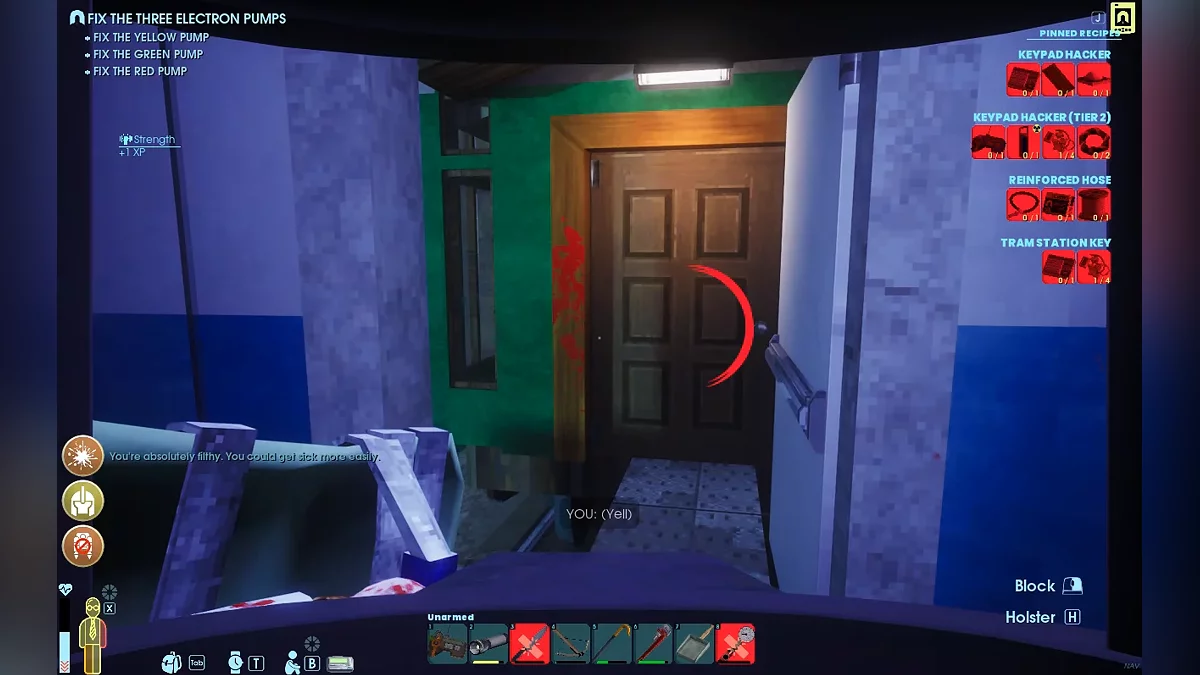 Тут игра напомнит о механике разрушаемости. Если вы в будущем увидите блоки ПК, то всегда разбирайте их для получения полезных предметов. Это же касается и мониторов. Также ломайте любые деревянные поверхности для получения досок.