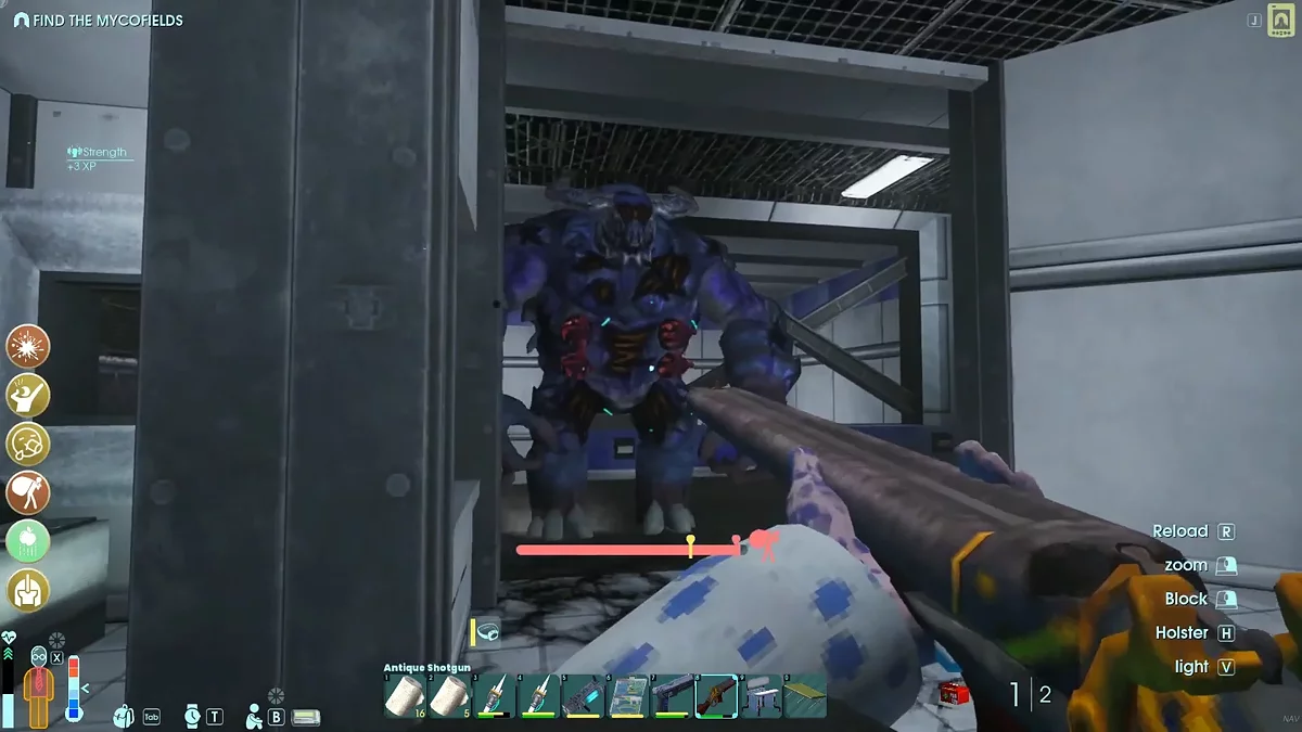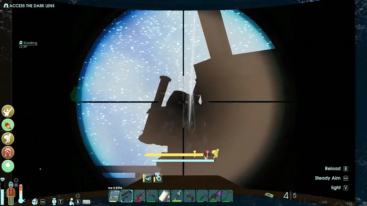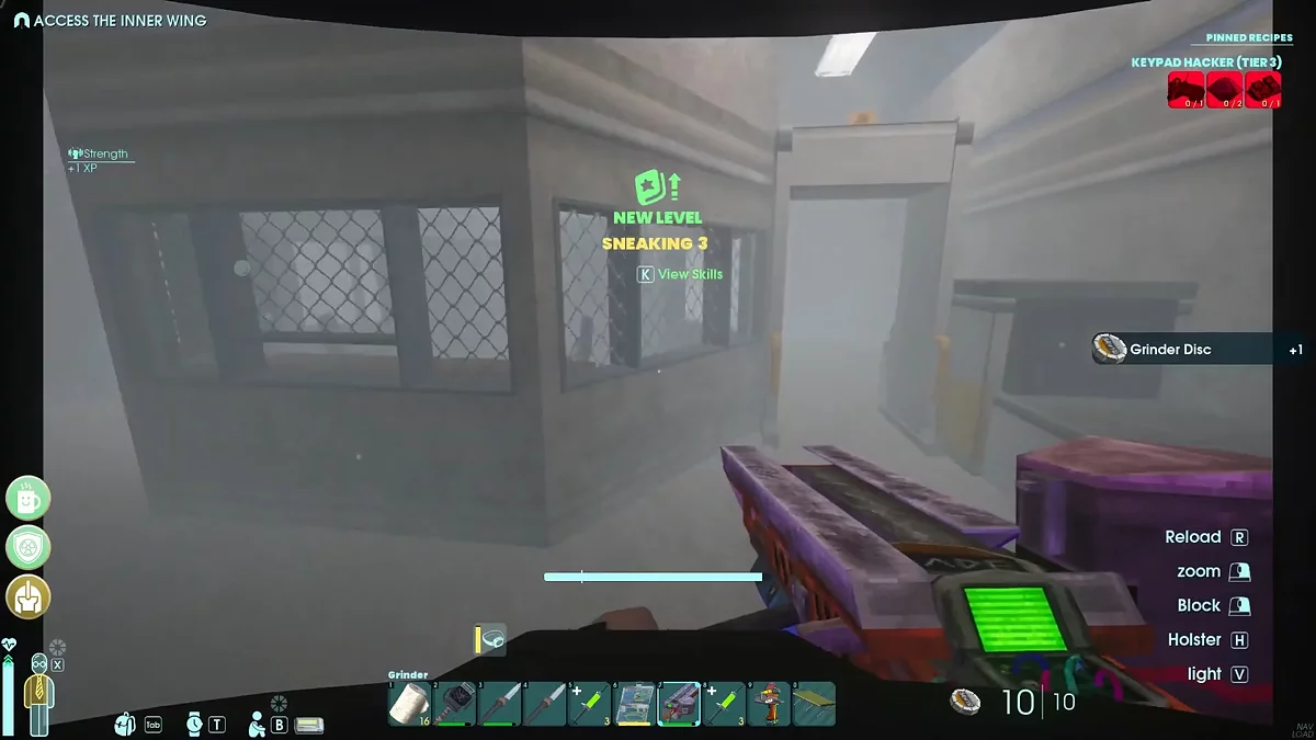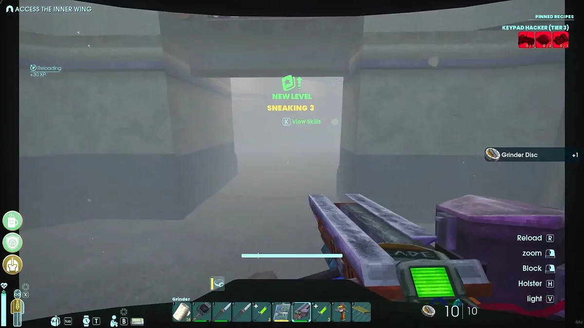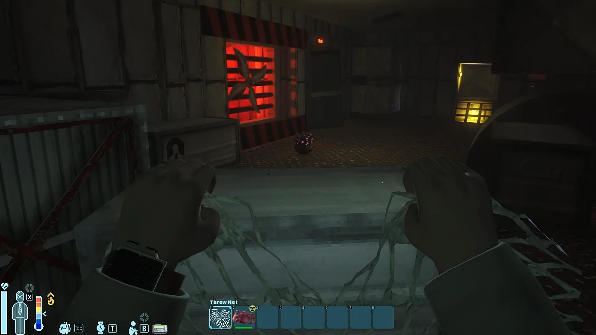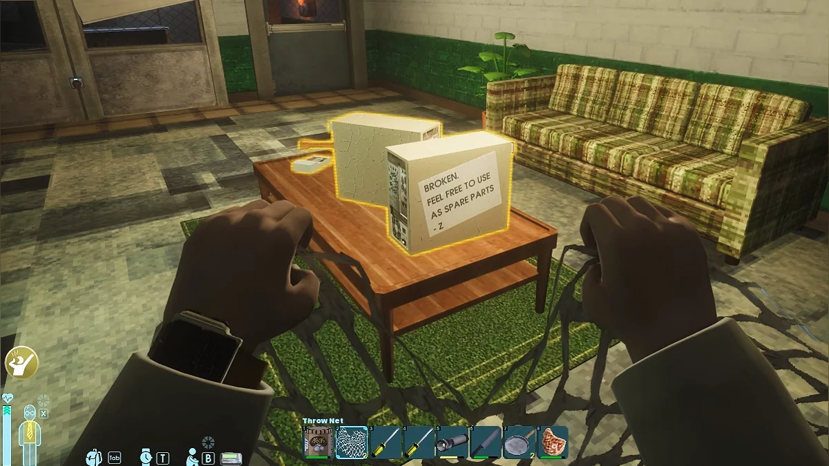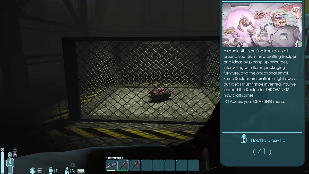 Идите дальше. В следующий раз тихонько подкрадитесь к врагу и обездвижьте его с помощью сетки. Этот жук — атакуя, прыгает на вас, так что будьте аккуратны, если он заметит героя. Уничтожив противника, соберите ресурсы в правой половине помещения и направляйтесь дальше, по пути забрав отвертку из ящика с инструментами.
