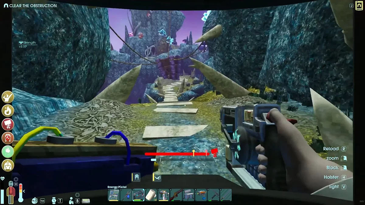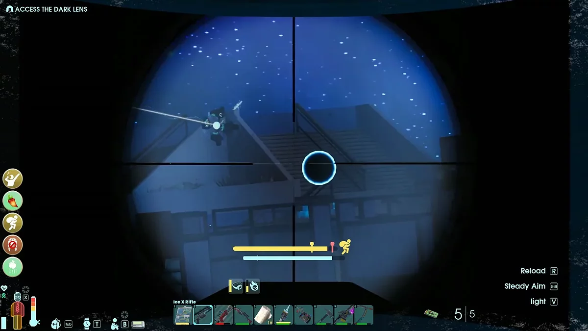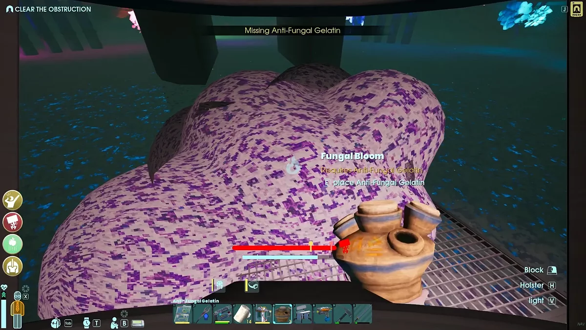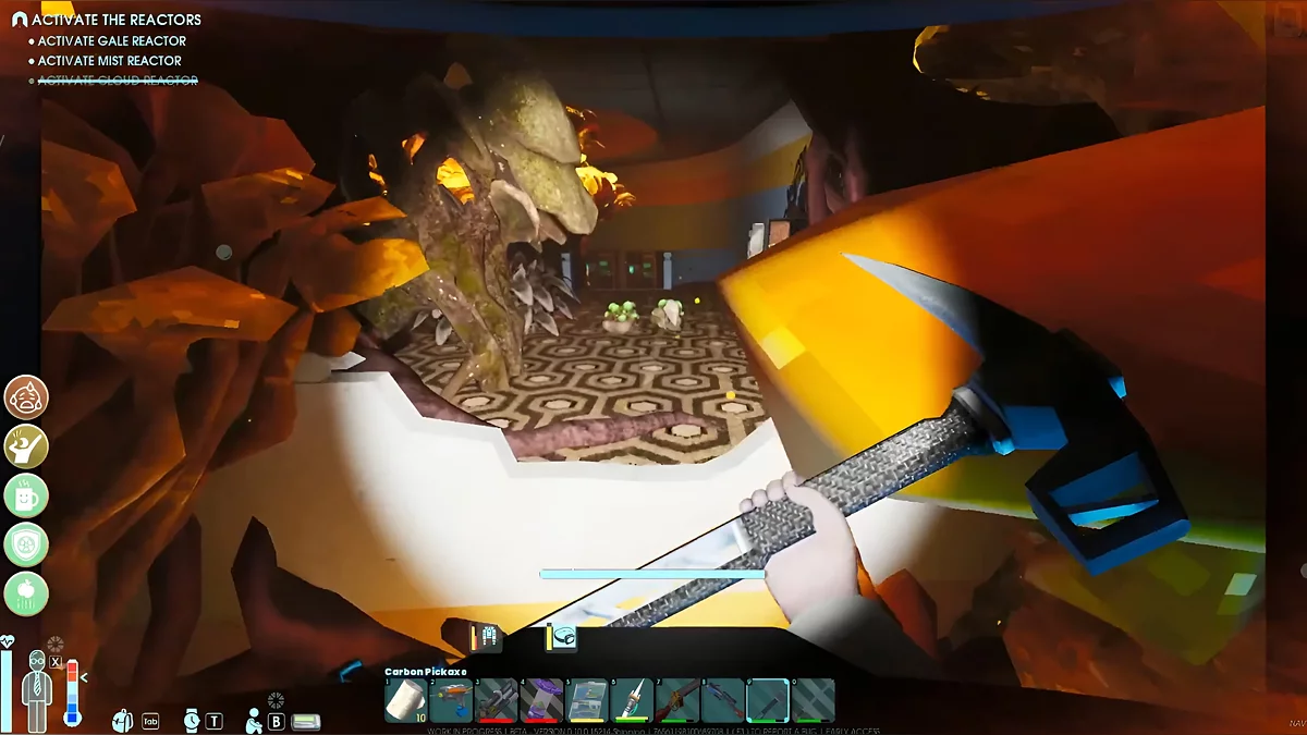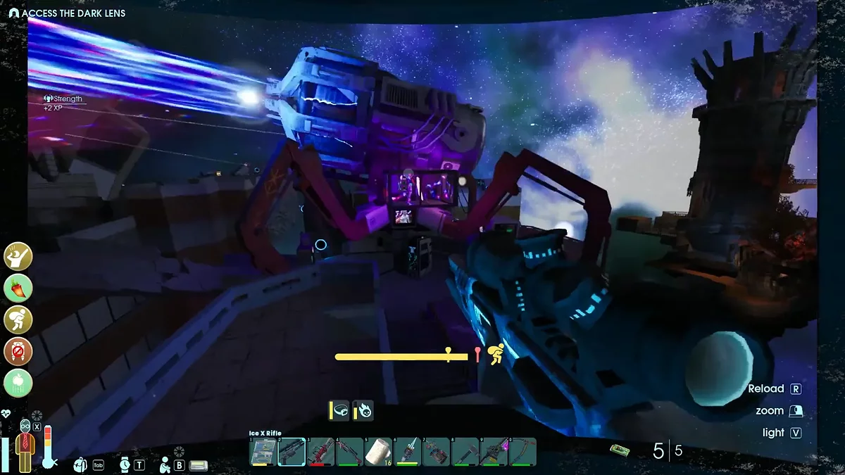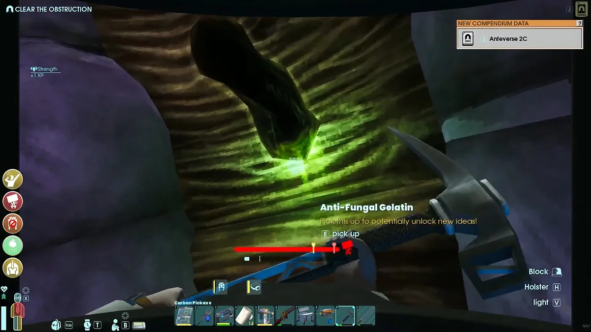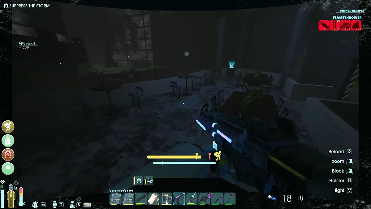 Еще одна важная механика игры — это изучение чертежей. В этом нет ничего сложного, вам просто надо подобрать подходящие детали и объединить их, используя небольшую подсказку в виде характеристик материала. Abiotic Factor не накажет вас за ошибку и укажет, какие ресурсы надо заменить. Когда все элементы будут верны, рецепт станет доступен для использования.