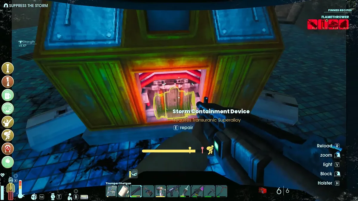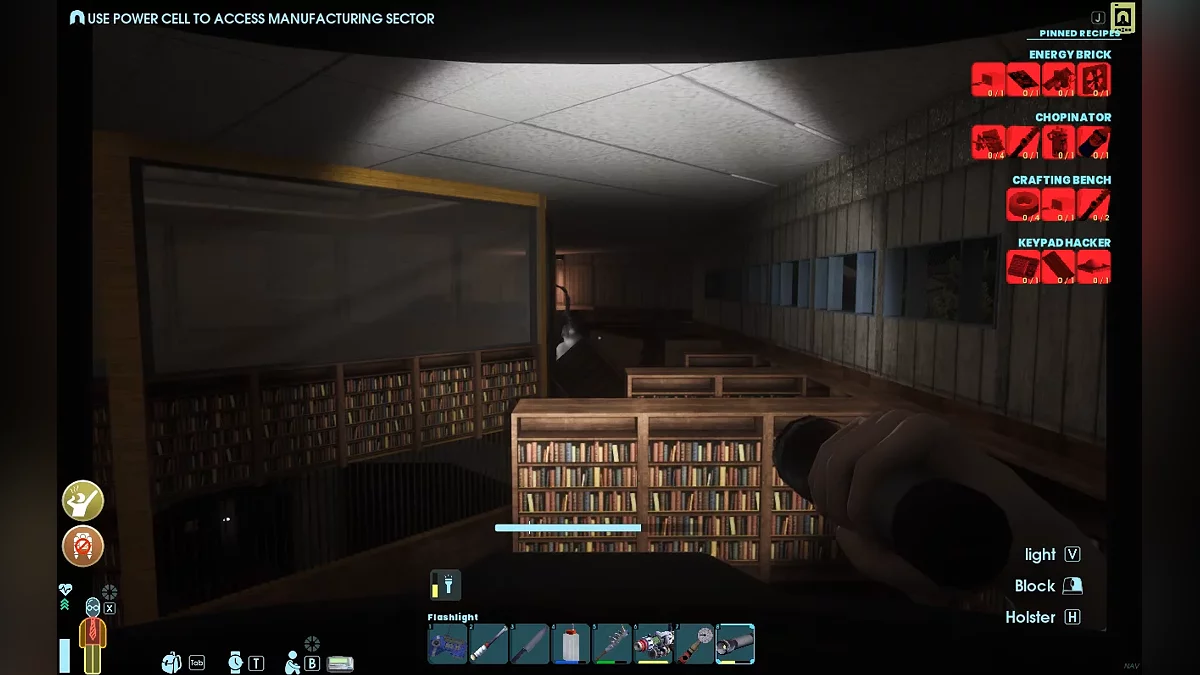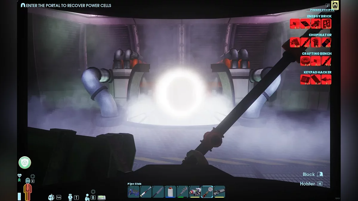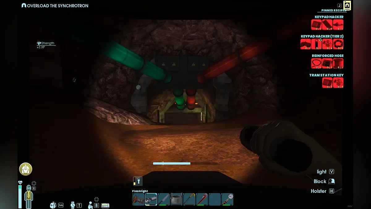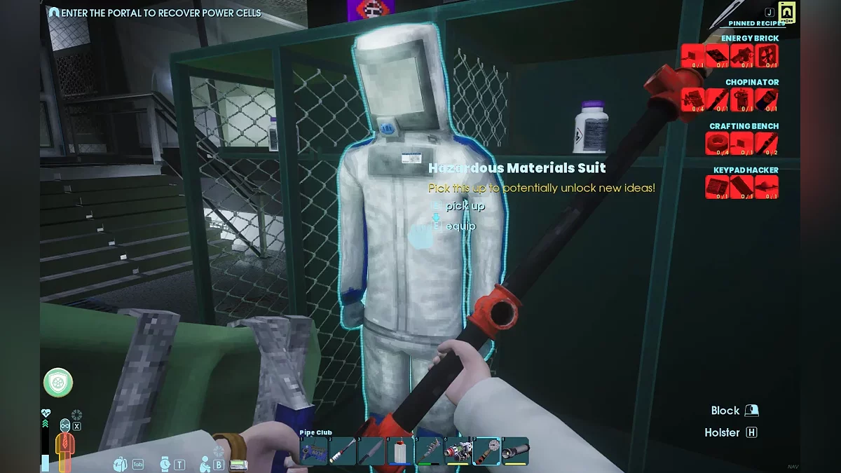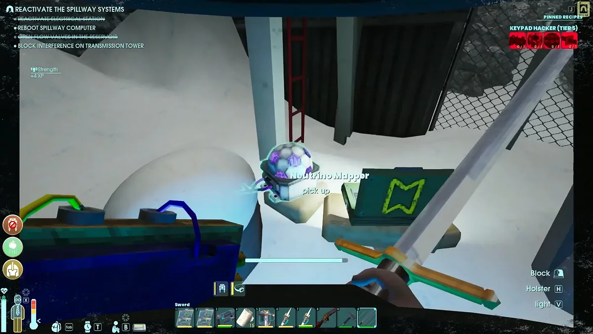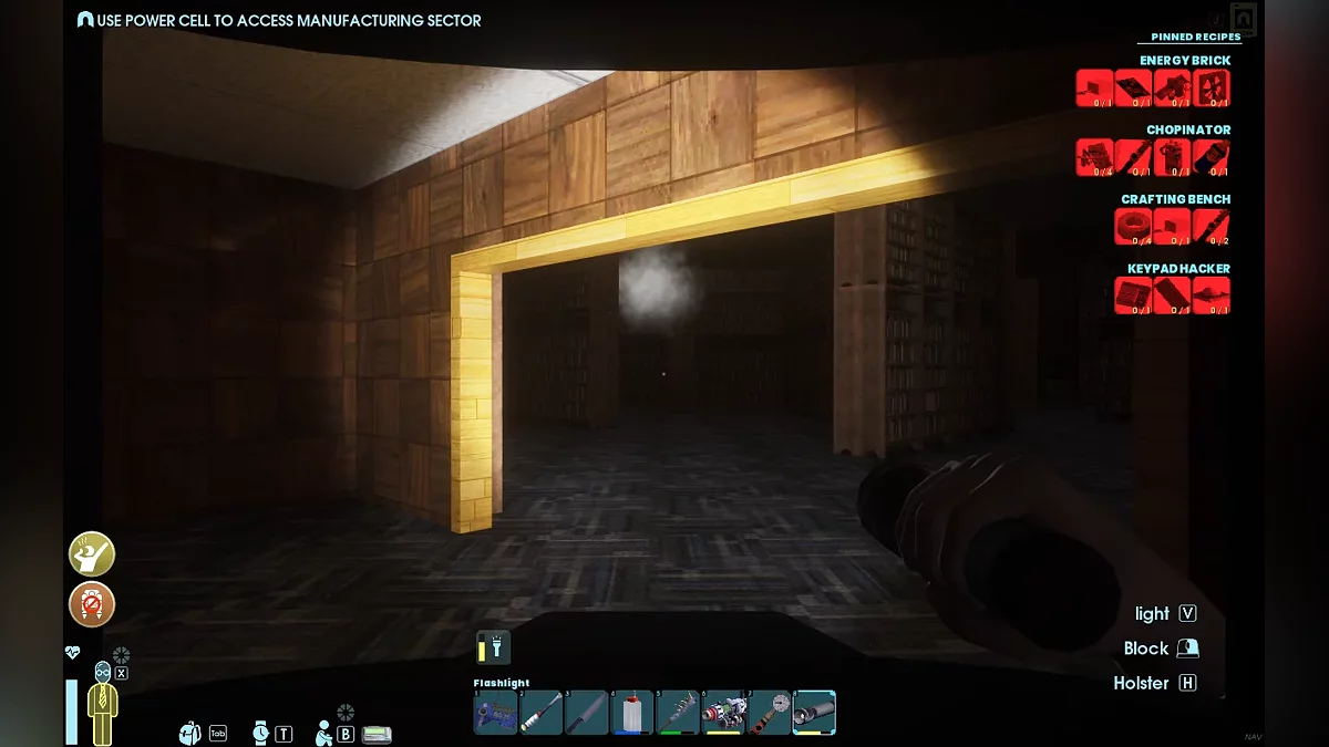 Поставьте верстак неподалеку от розетки. Впервые взаимодействуя с ним, вы откроете множество полезных предметов, в том числе рюкзак, увеличивающий объем инвентаря. Когда будете готовы, изготовьте энергоблок.