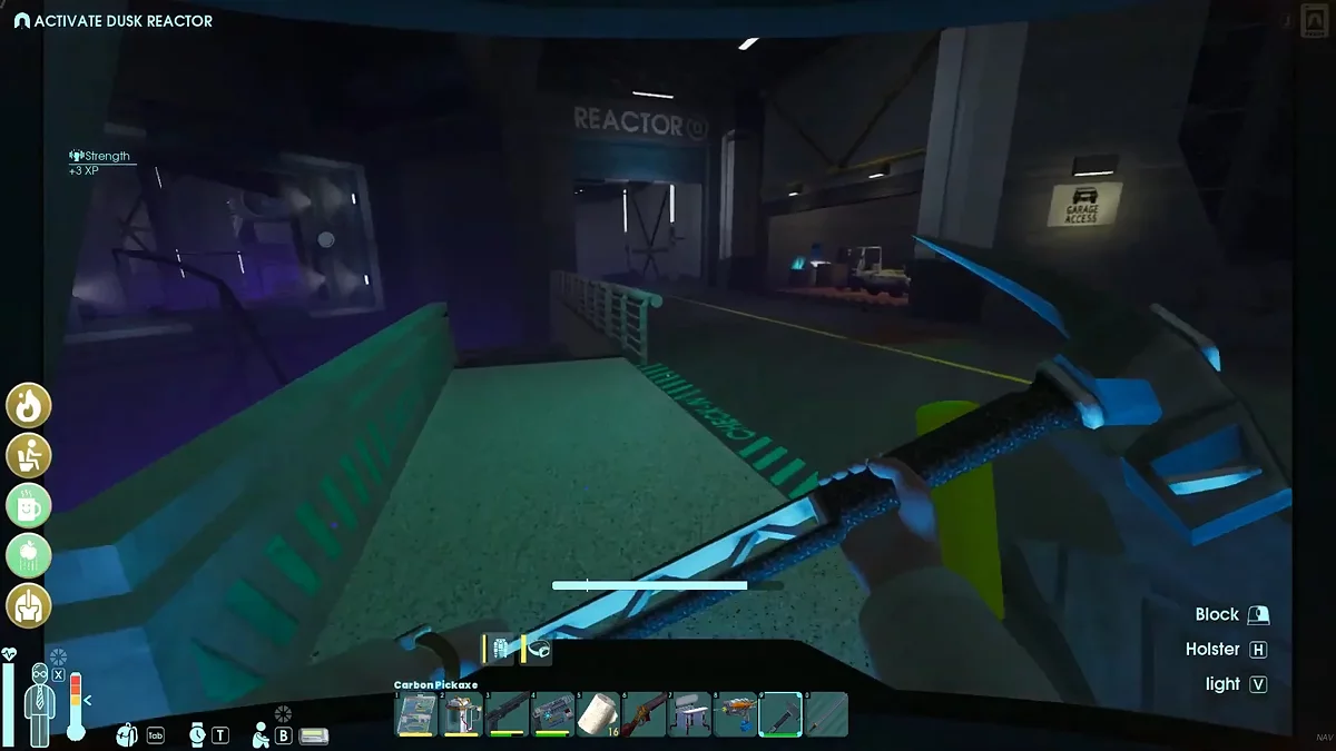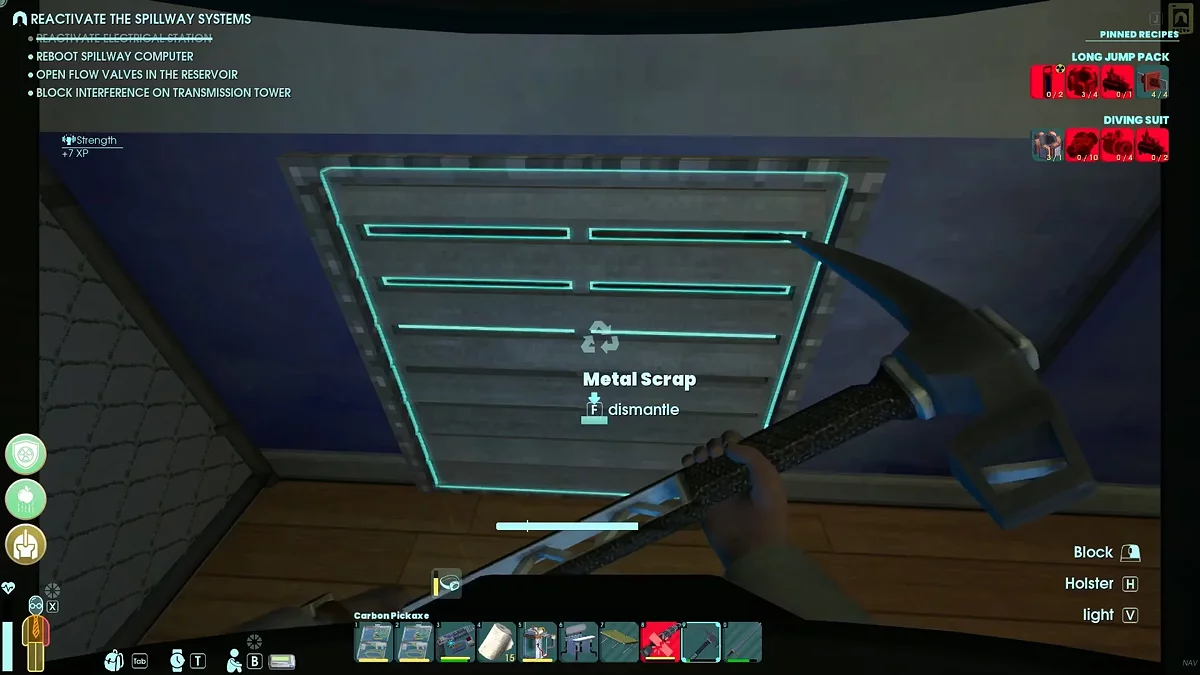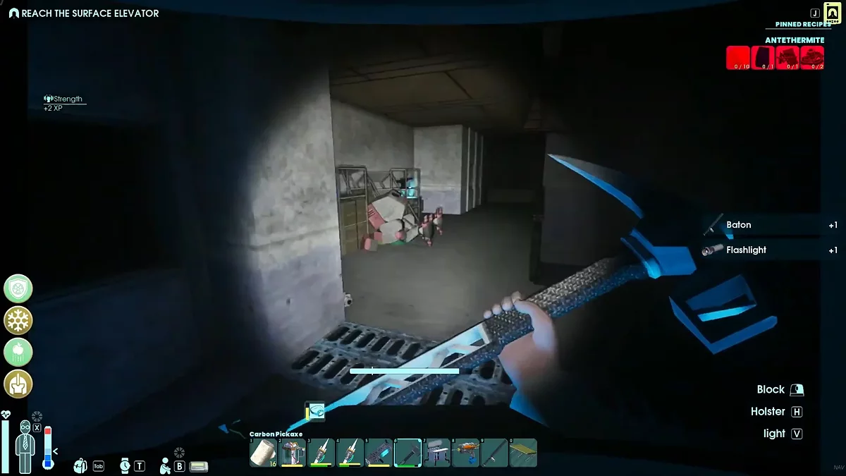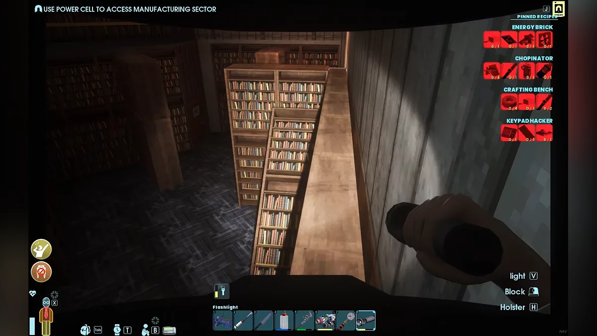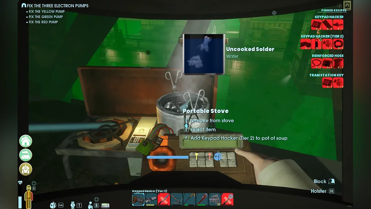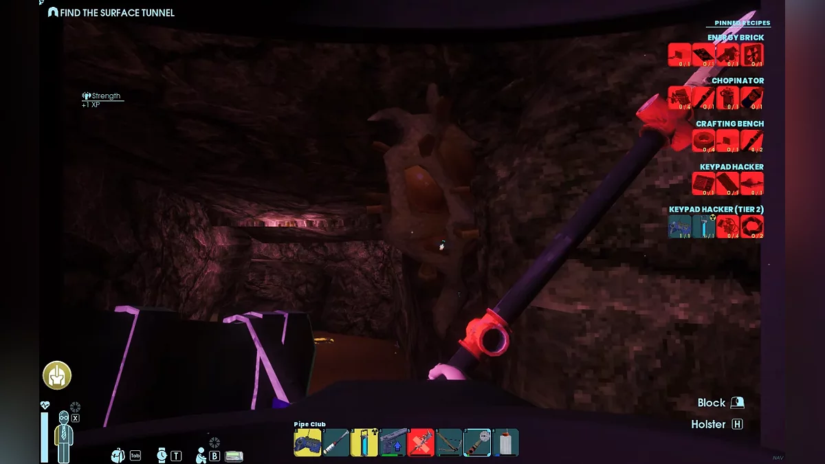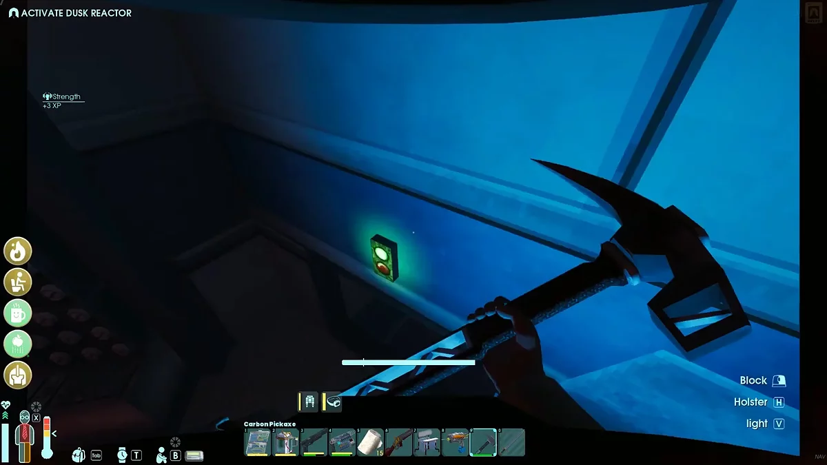 Поставьте верстак неподалеку от розетки. Впервые взаимодействуя с ним, вы откроете множество полезных предметов, в том числе рюкзак, увеличивающий объем инвентаря. Когда будете готовы, изготовьте энергоблок.