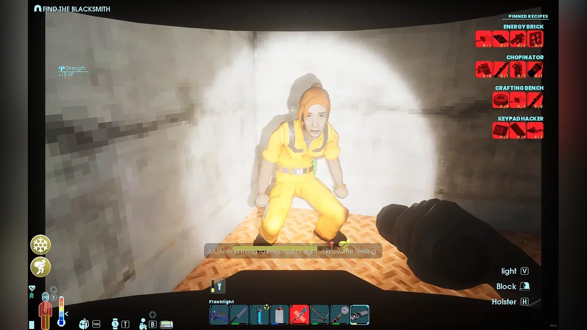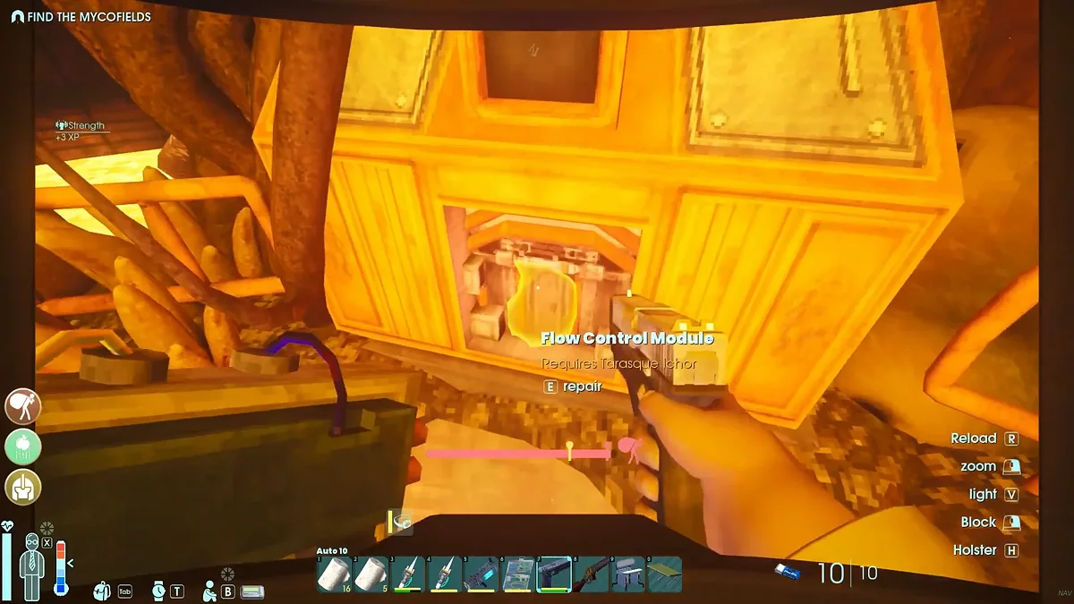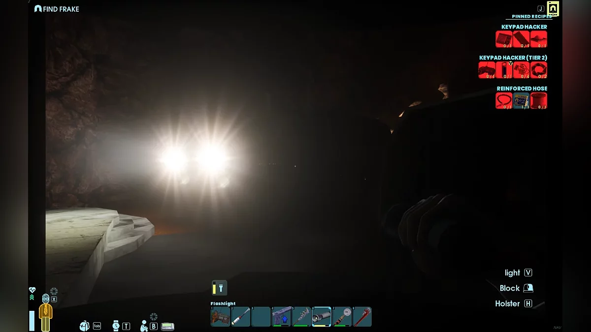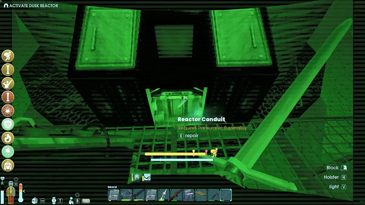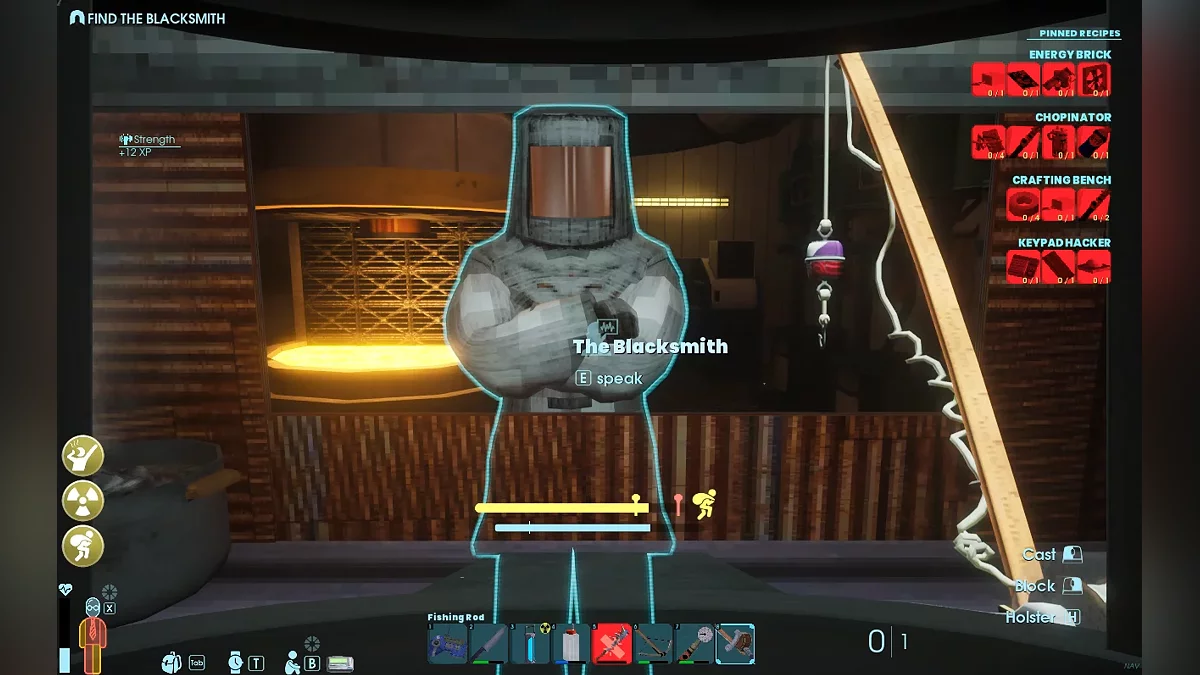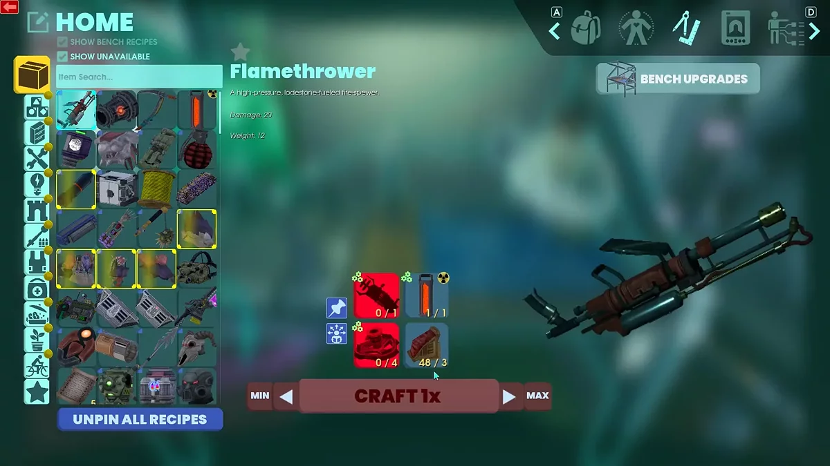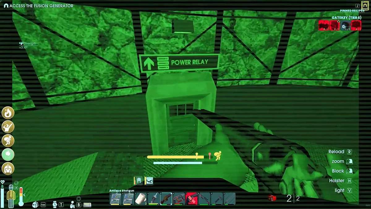 Поставьте верстак неподалеку от розетки. Впервые взаимодействуя с ним, вы откроете множество полезных предметов, в том числе рюкзак, увеличивающий объем инвентаря. Когда будете готовы, изготовьте энергоблок.