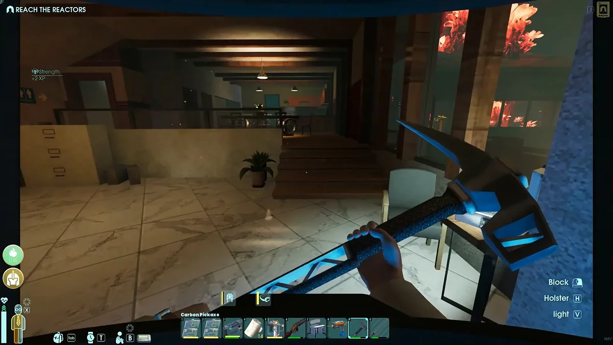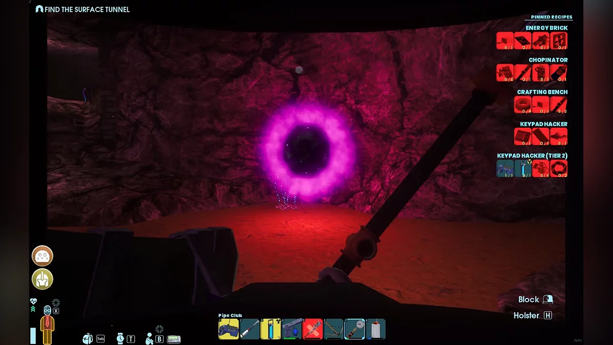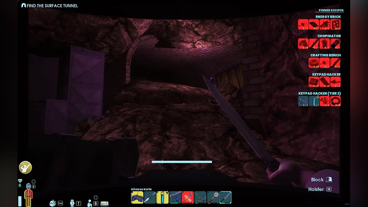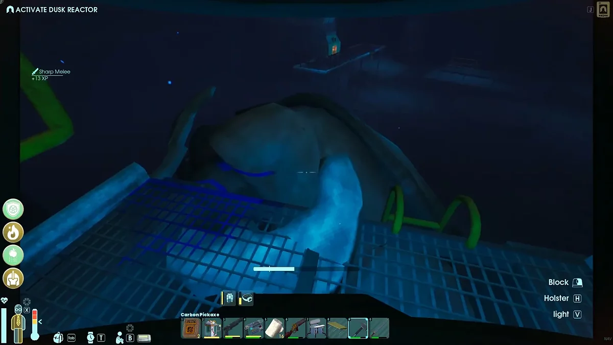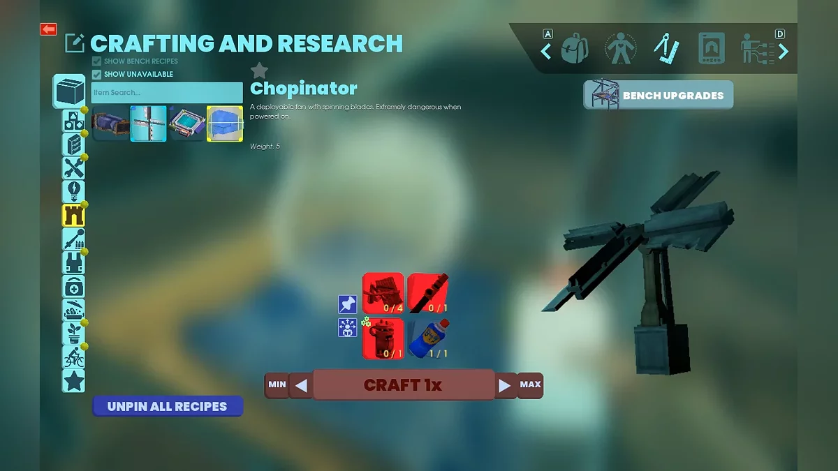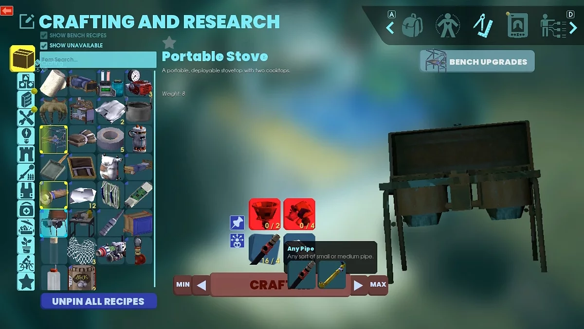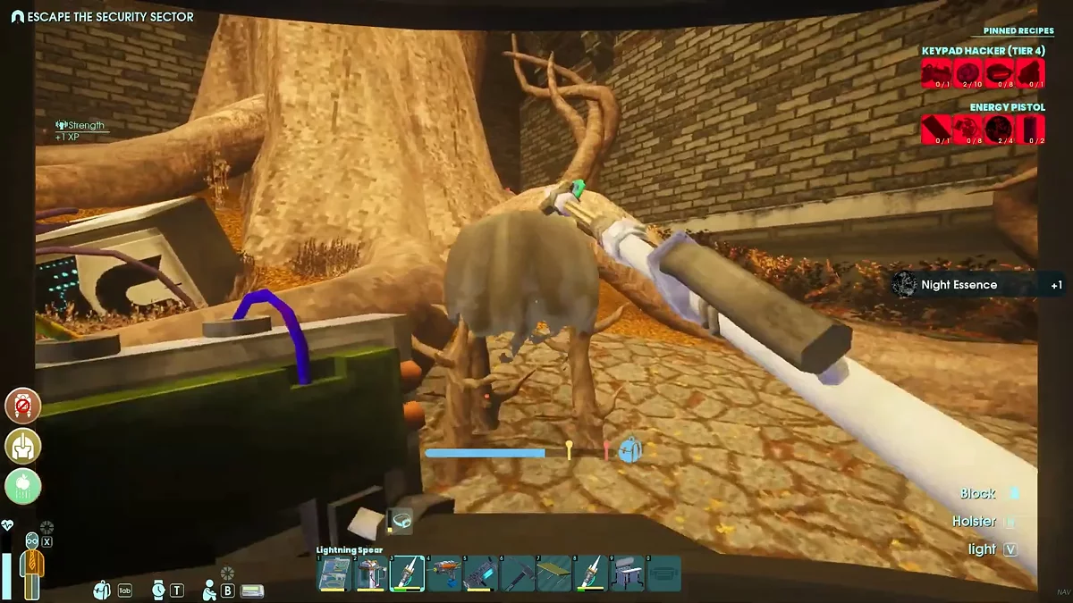 Поставьте верстак неподалеку от розетки. Впервые взаимодействуя с ним, вы откроете множество полезных предметов, в том числе рюкзак, увеличивающий объем инвентаря. Когда будете готовы, изготовьте энергоблок.