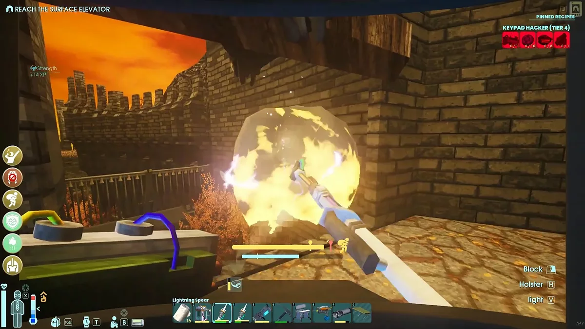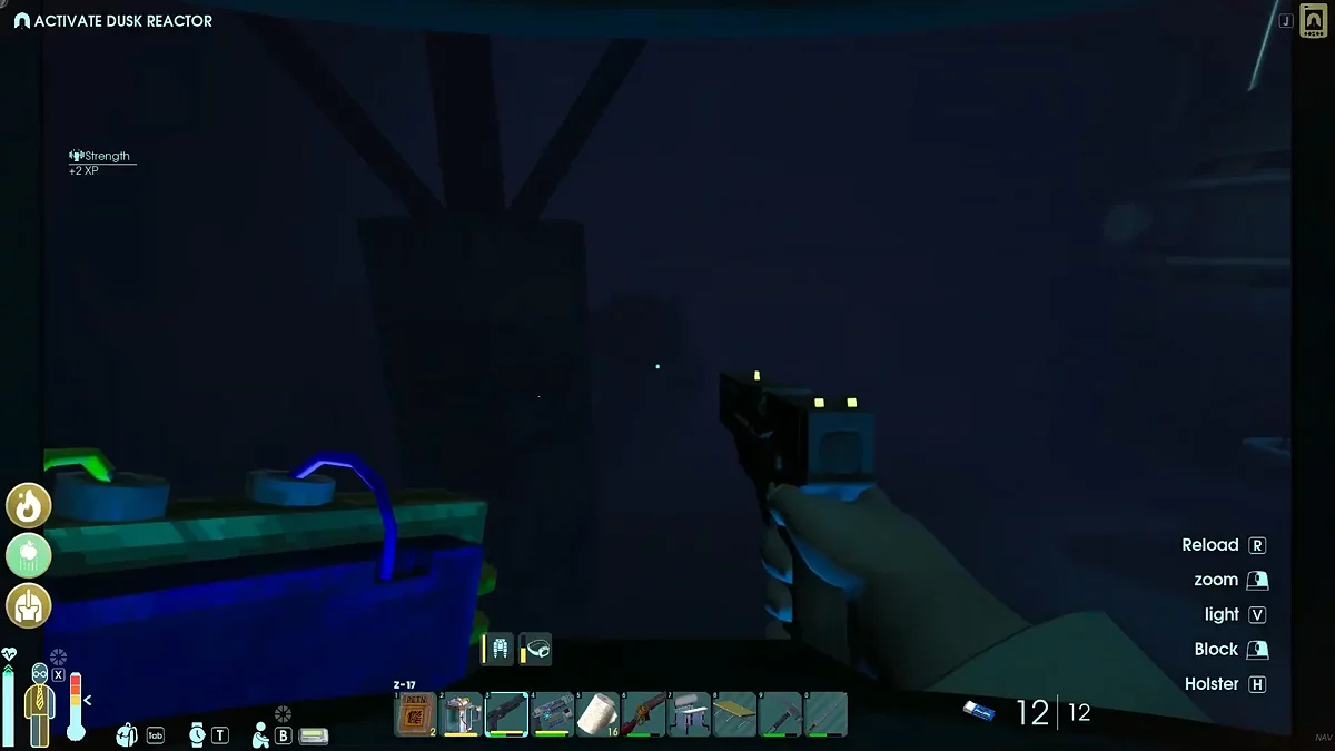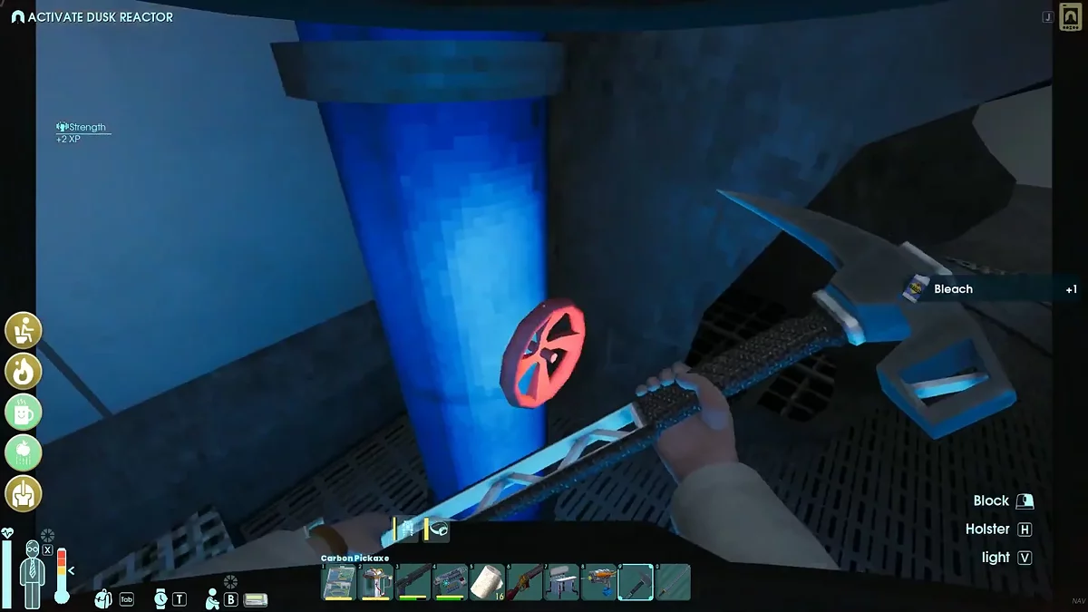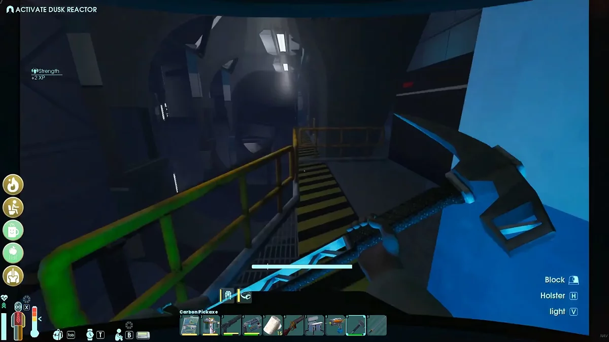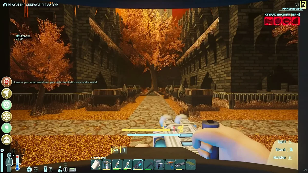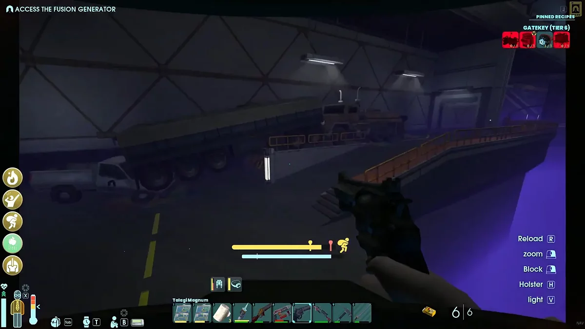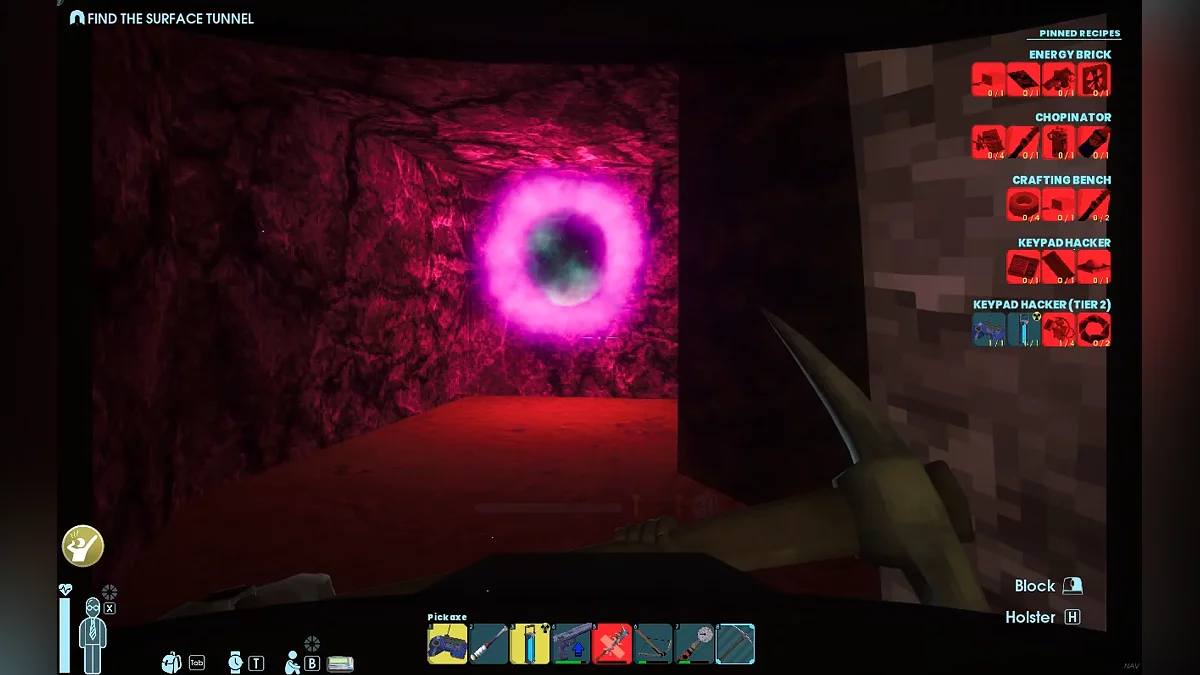 Поставьте верстак неподалеку от розетки. Впервые взаимодействуя с ним, вы откроете множество полезных предметов, в том числе рюкзак, увеличивающий объем инвентаря. Когда будете готовы, изготовьте энергоблок.
