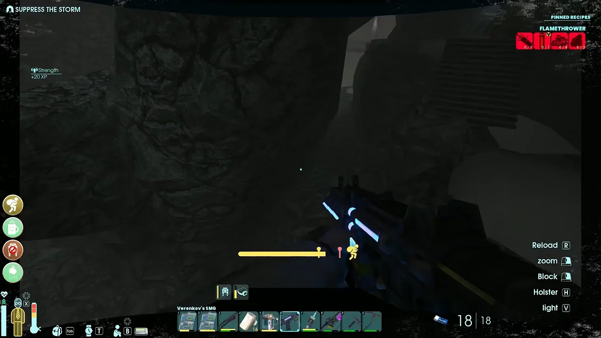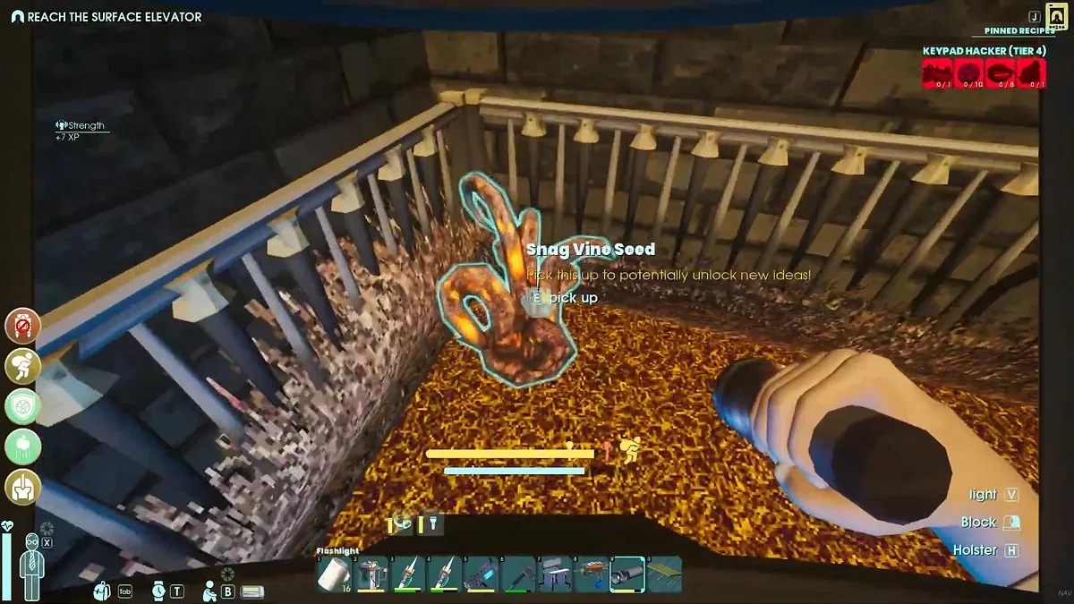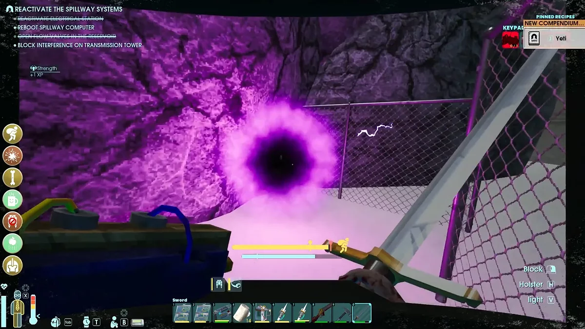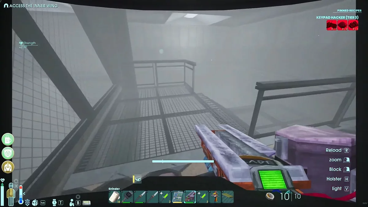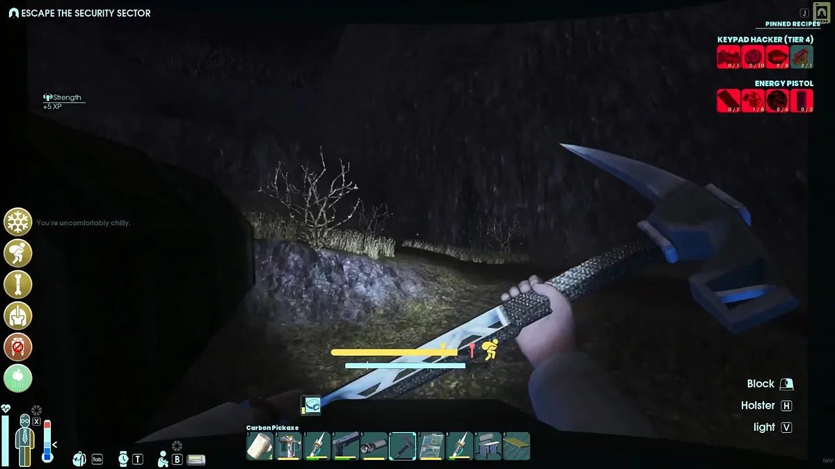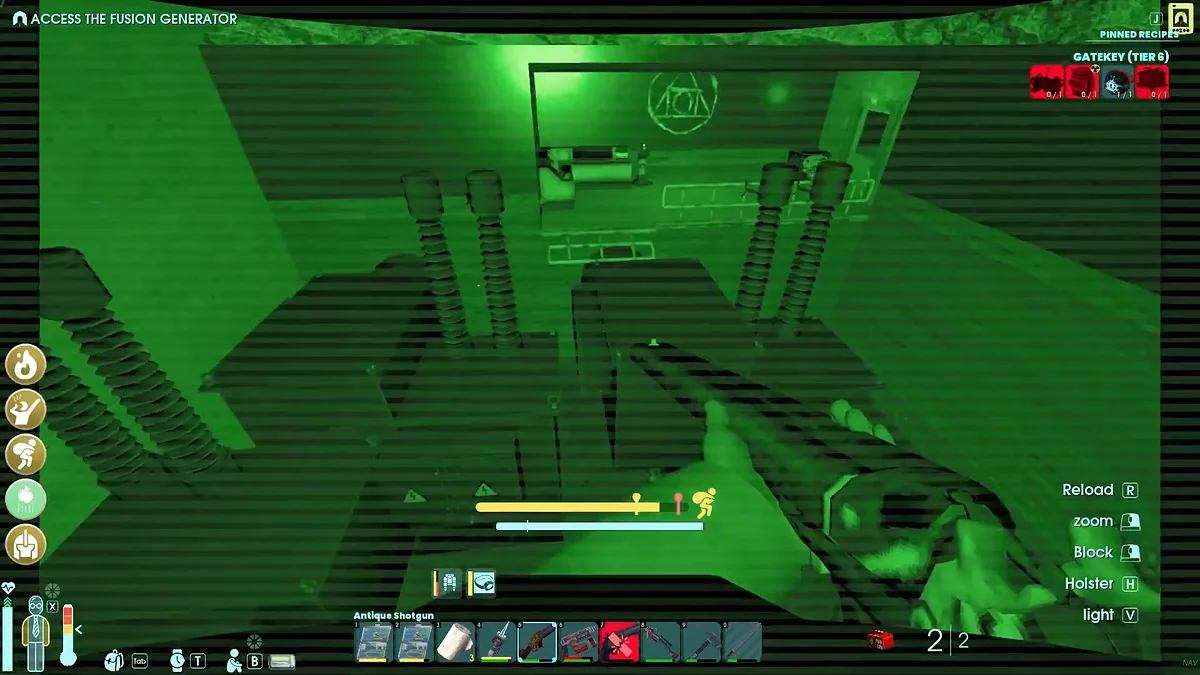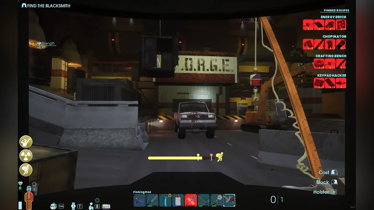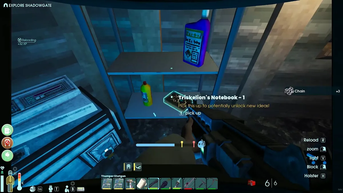 Поставьте верстак неподалеку от розетки. Впервые взаимодействуя с ним, вы откроете множество полезных предметов, в том числе рюкзак, увеличивающий объем инвентаря. Когда будете готовы, изготовьте энергоблок.