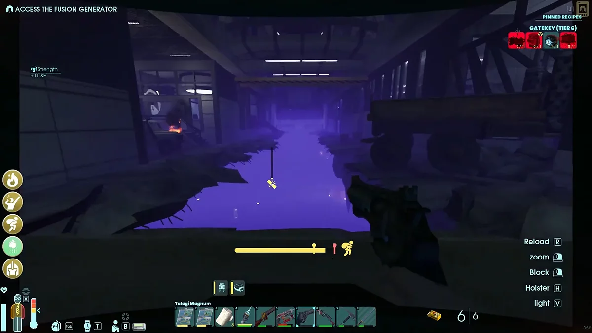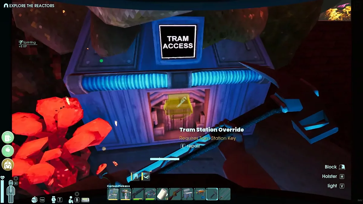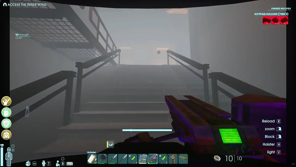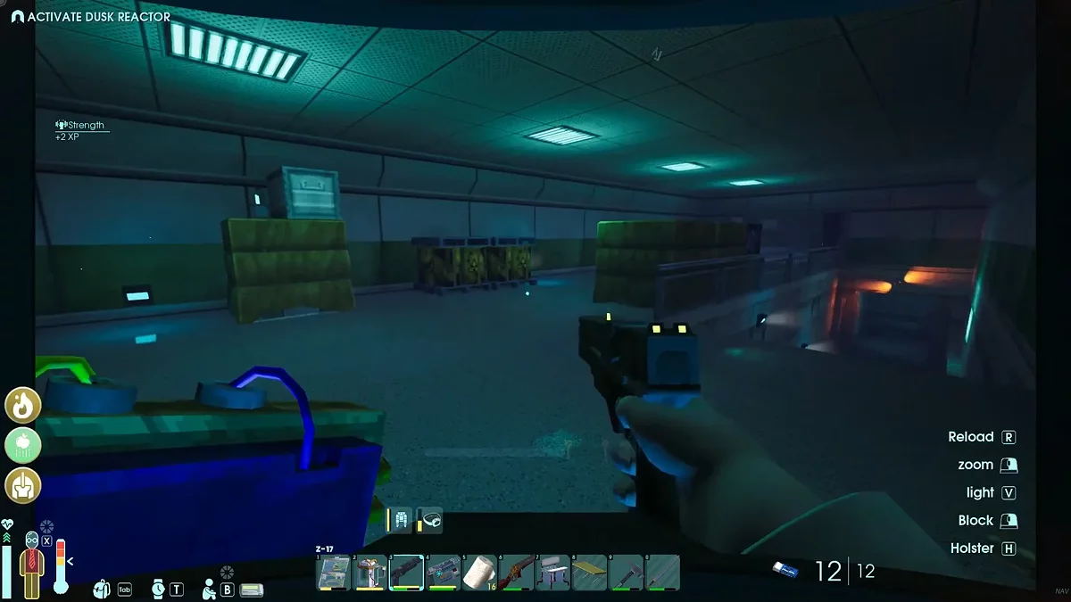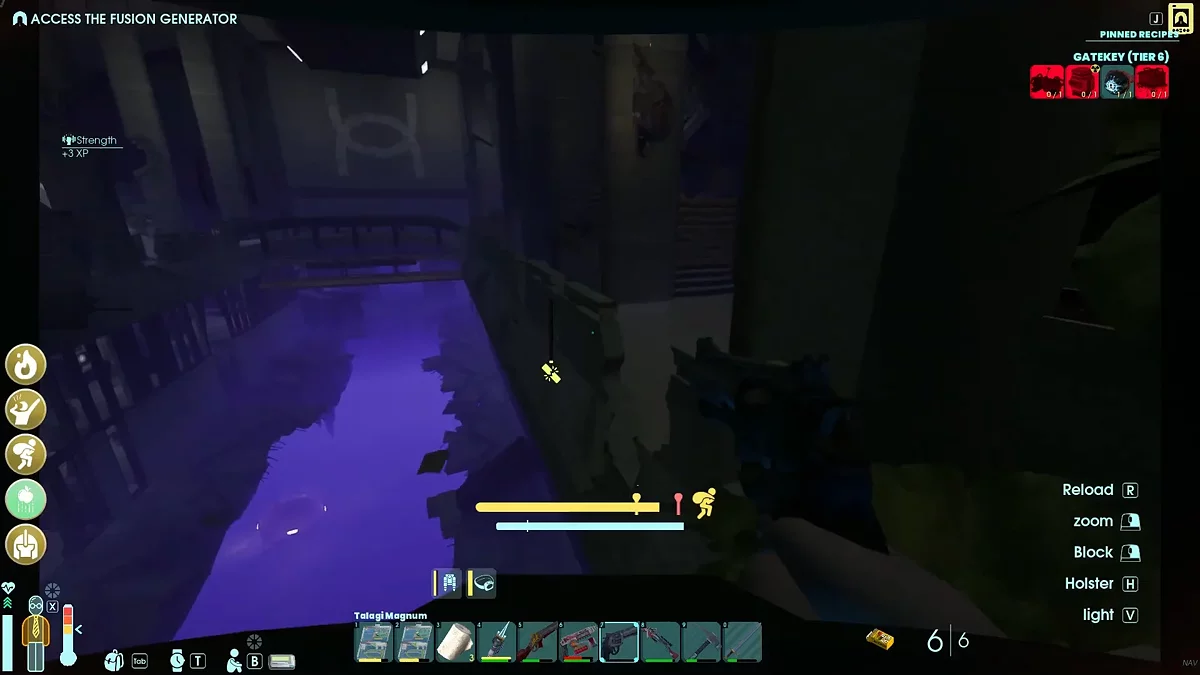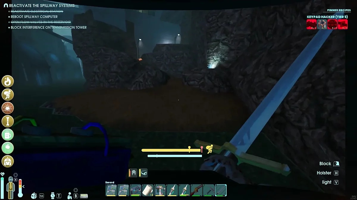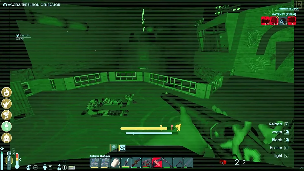 Поставьте верстак неподалеку от розетки. Впервые взаимодействуя с ним, вы откроете множество полезных предметов, в том числе рюкзак, увеличивающий объем инвентаря. Когда будете готовы, изготовьте энергоблок.