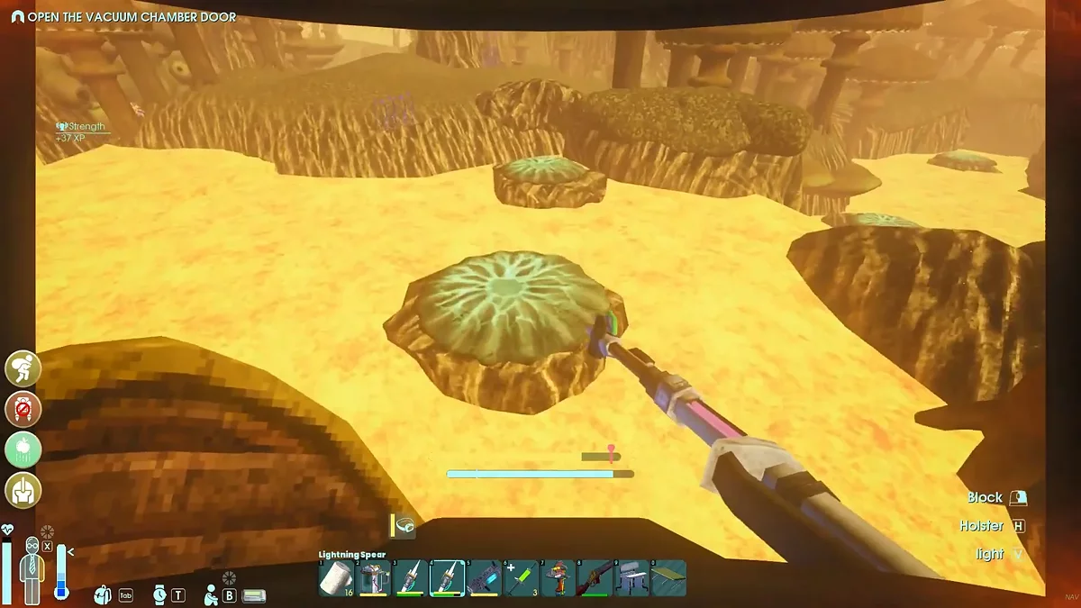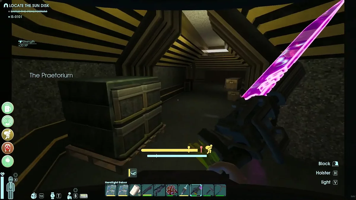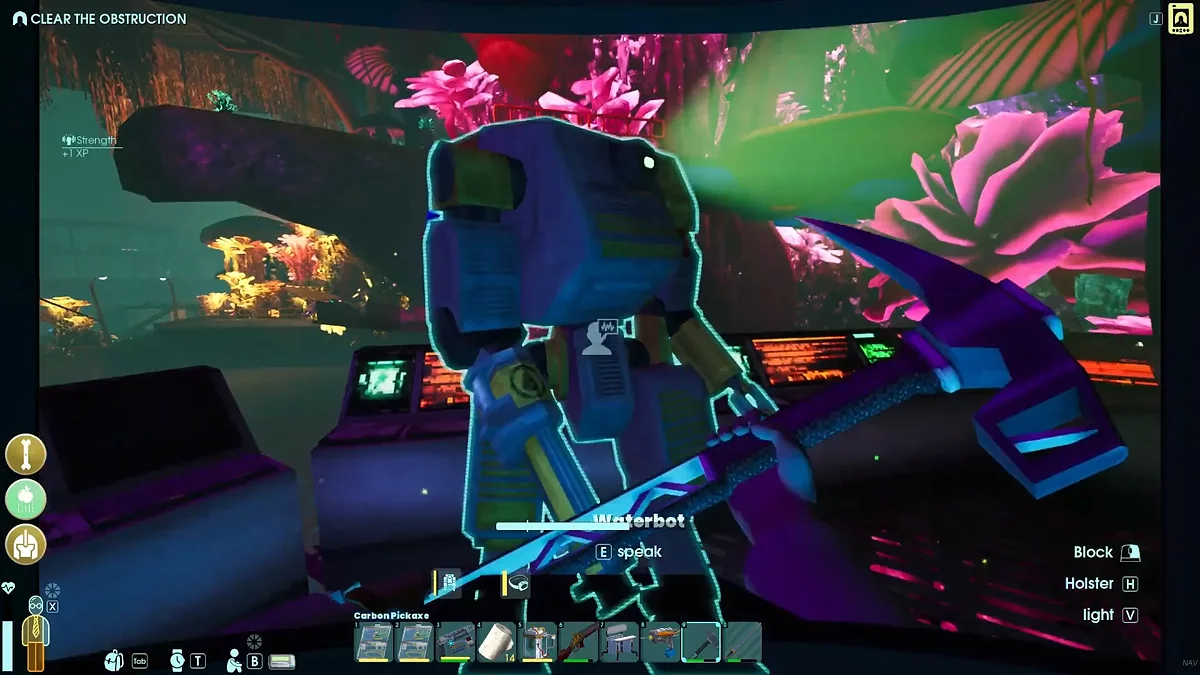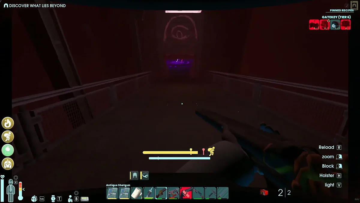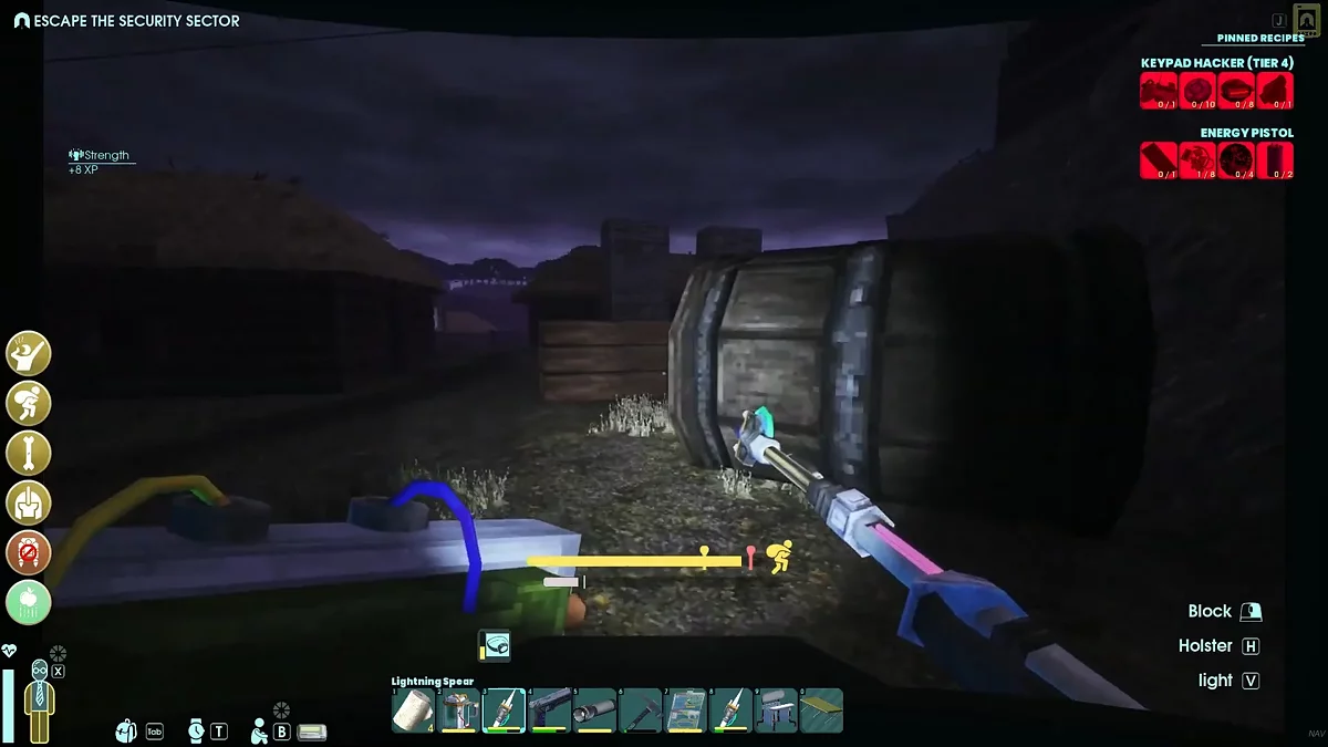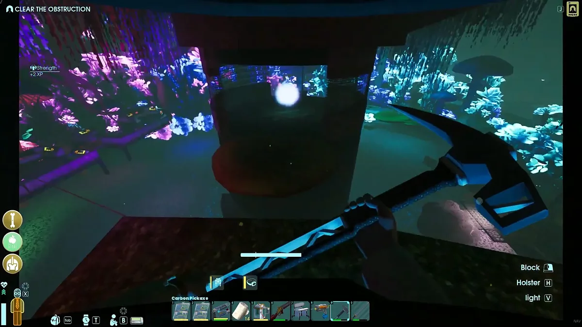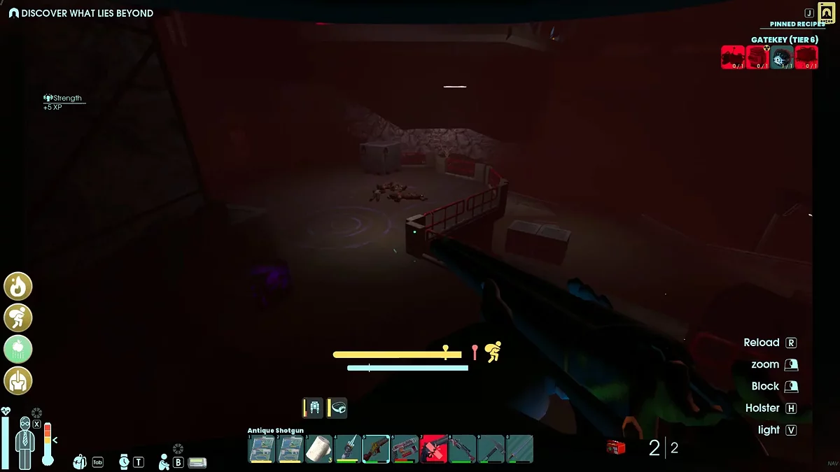 Поставьте верстак неподалеку от розетки. Впервые взаимодействуя с ним, вы откроете множество полезных предметов, в том числе рюкзак, увеличивающий объем инвентаря. Когда будете готовы, изготовьте энергоблок.