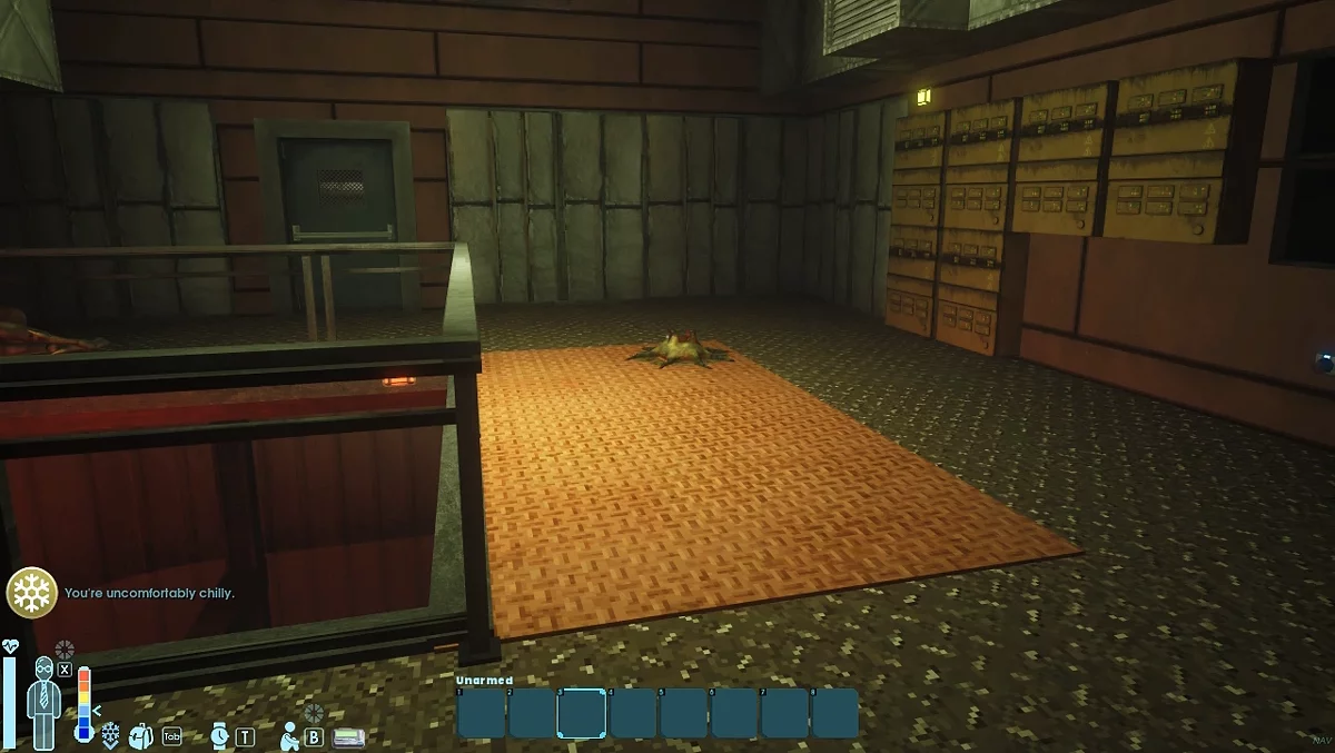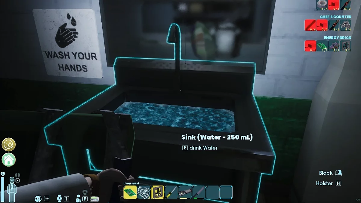 Если ваш персонаж проголодался, вы можете воспользоваться торговыми автоматами или полакомиться стейком с кухни. Воду можно испить из раковины на кухне.