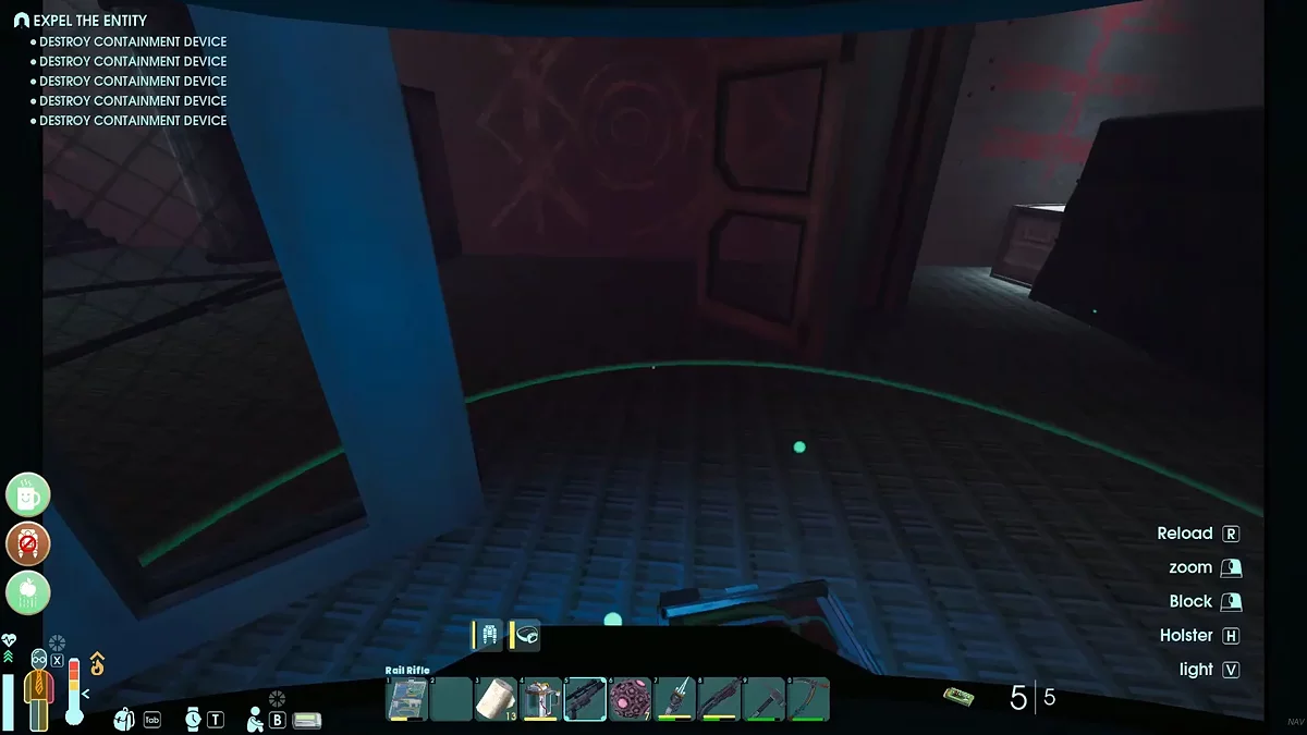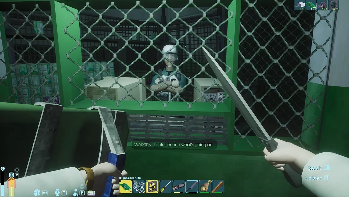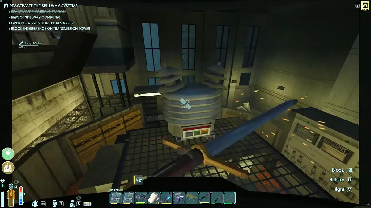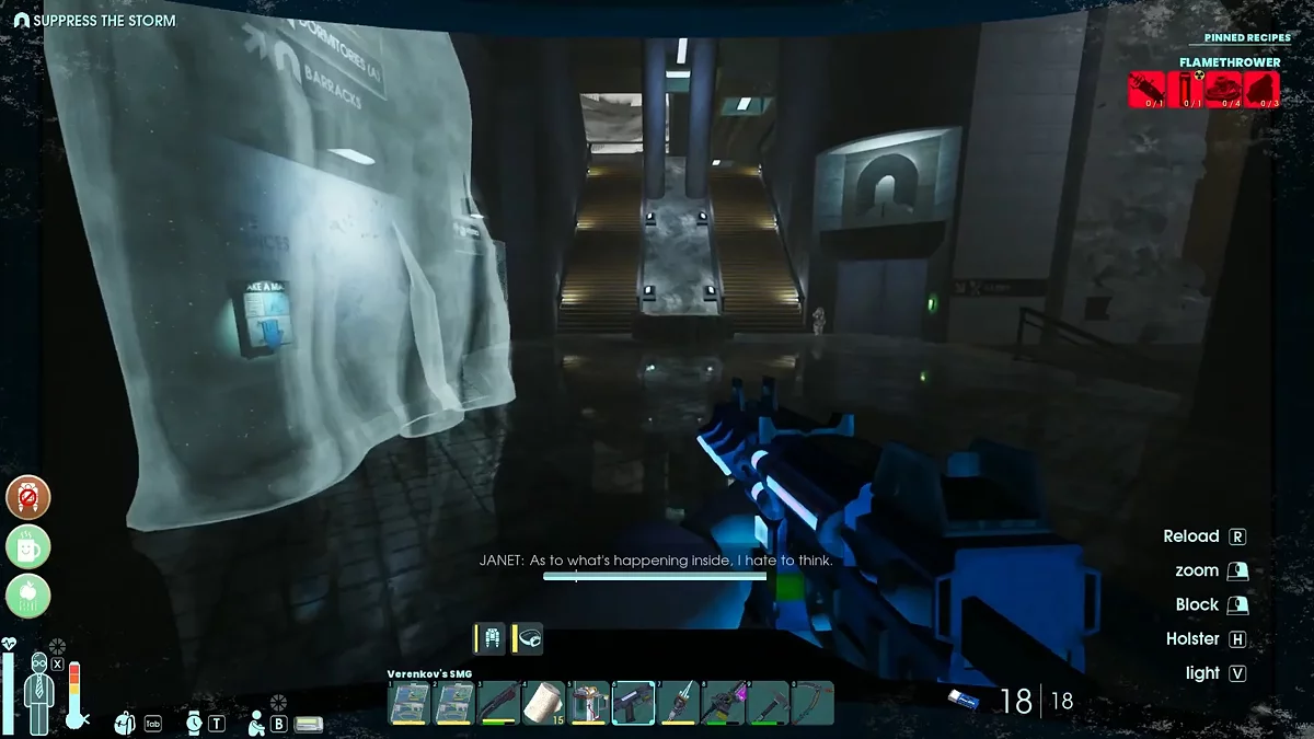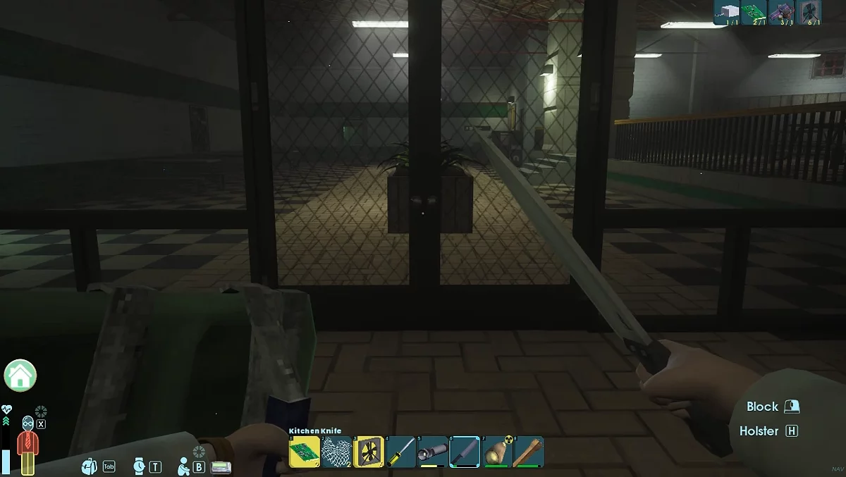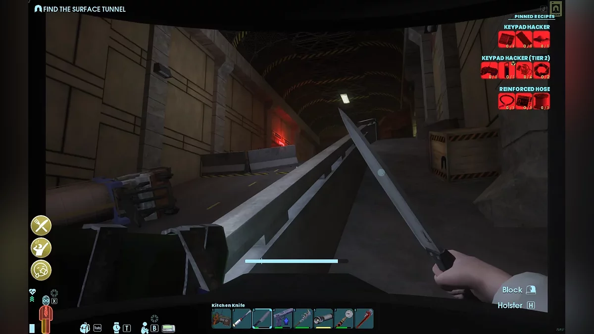 В следующем отсеке можно встретить множество металлических труб. Демонтируйте их, чтобы запастись манометрами и самими трубами. Также в левом секторе не пройдите мимо фонарика. Перед входом на кухню включите терминал и откройте прикрепленную к письму фотографию, чтобы разблокировать рецепт заточки, а затем взаимодействуйте с настольной лампой для добычи других чертежей.