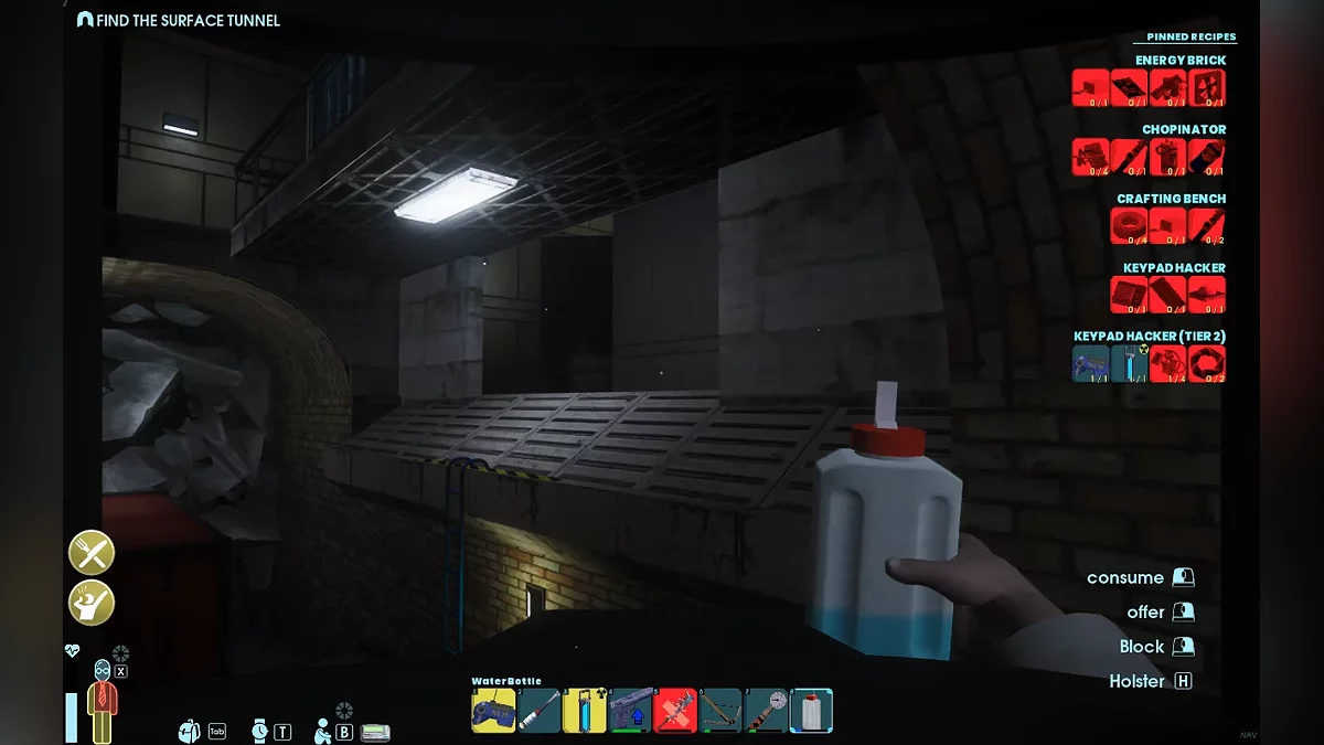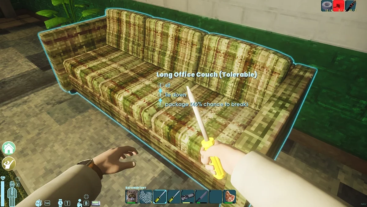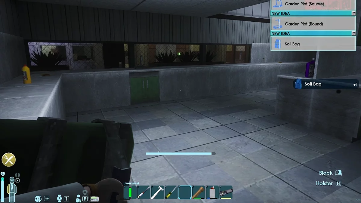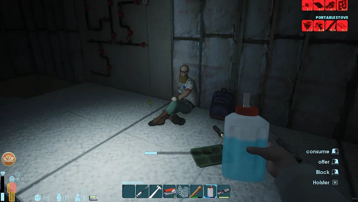 А если вам нужно запастись пластиком для изготовления того или иного предмета, то сначала вы можете добыть его, разрушая горшки с растениями. Из пластика делается бутылка воды, которую можно наполнить и использовать во время приступов жажды.