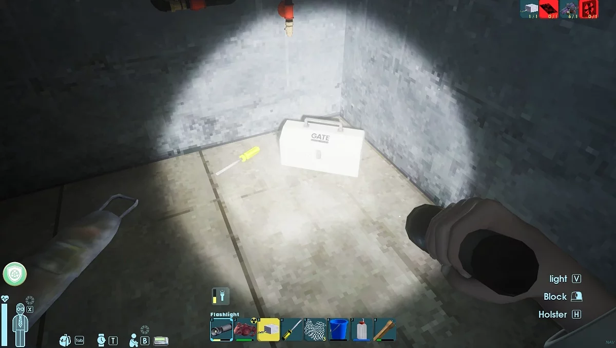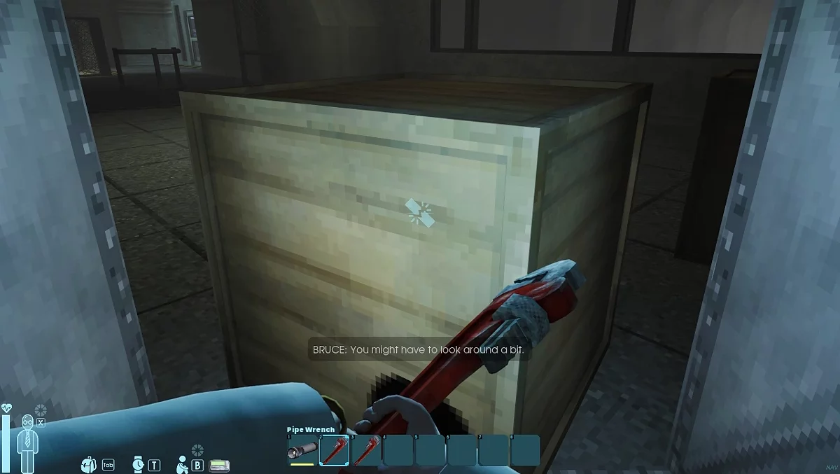 Практически сразу после входа в вентиляцию будет лежать ящик инструментов с двумя трубными ключами. Этот предмет подходит для того, чтобы ломать вещи вокруг, в том числе деревянные ящики.