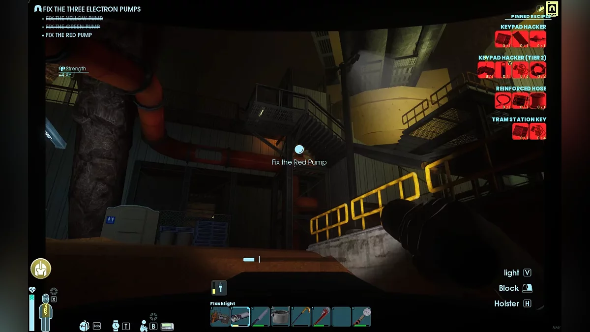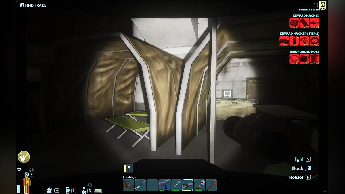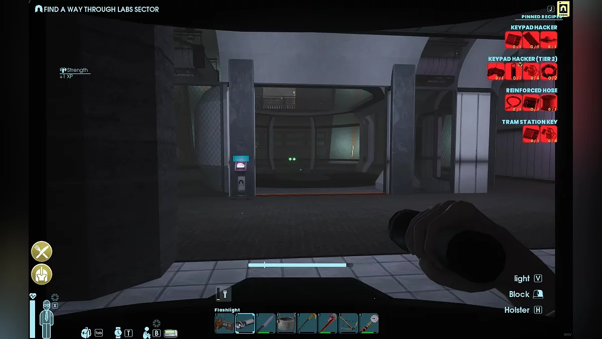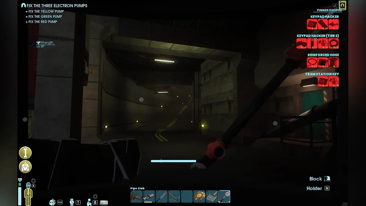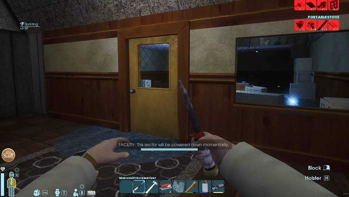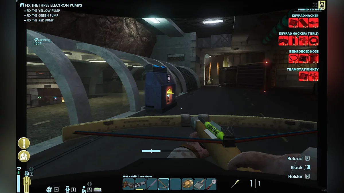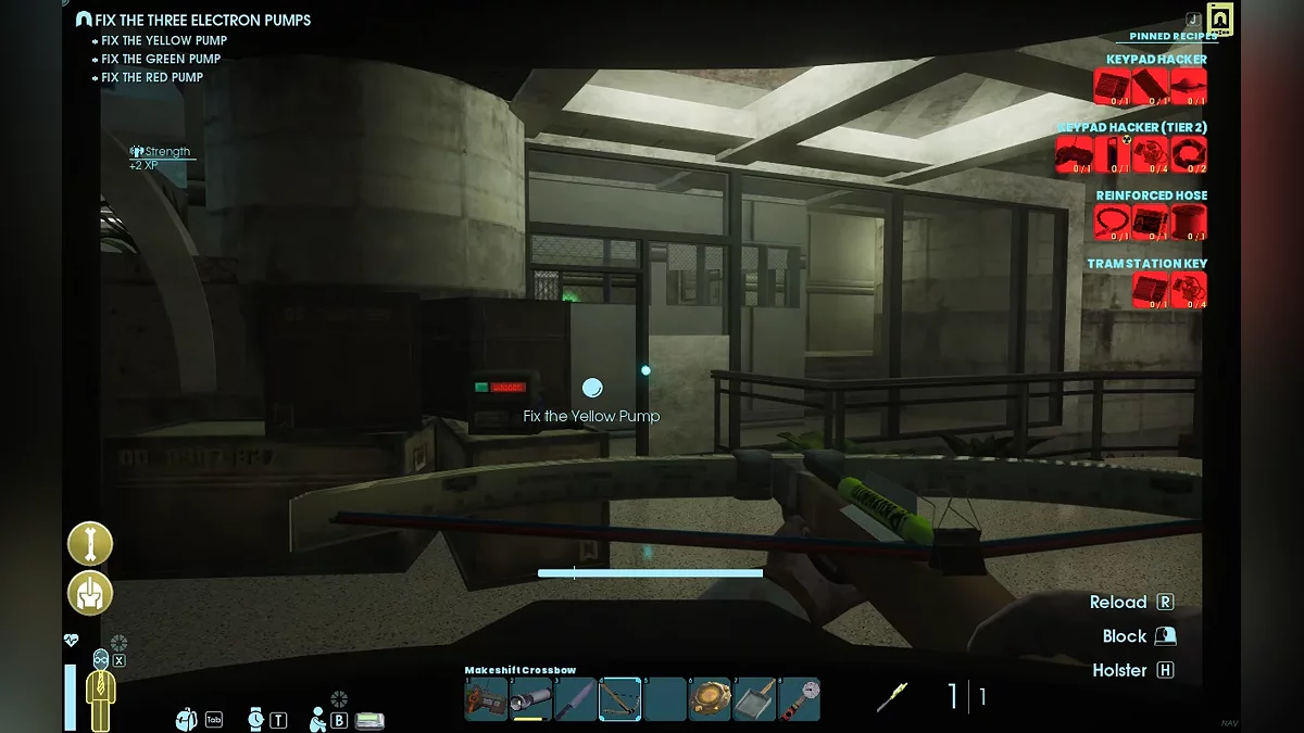 Для создания верстака вам потребуется изолента, металлические трубы и блок питания. Если первые два ресурса вы уже набрали по обходному пути, то для последнего требуется пройти в техническое помещение слева от доктора Джагера.